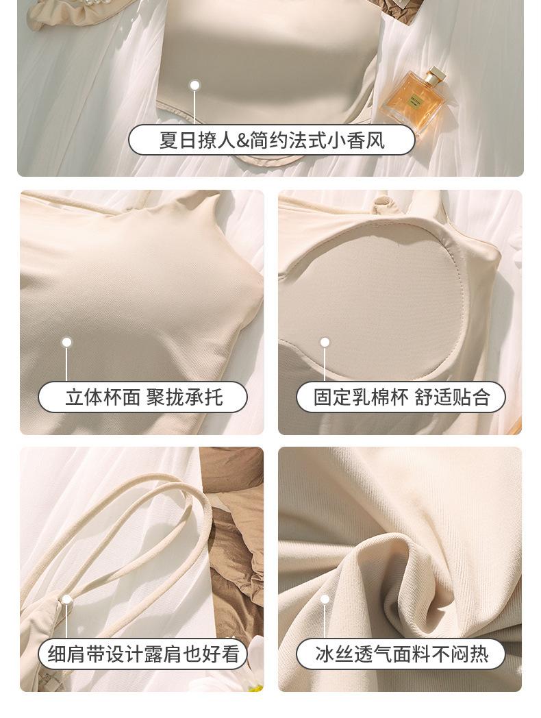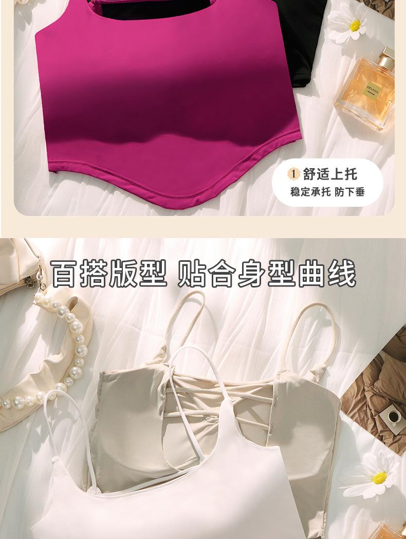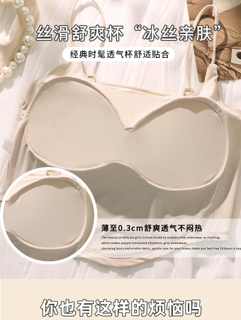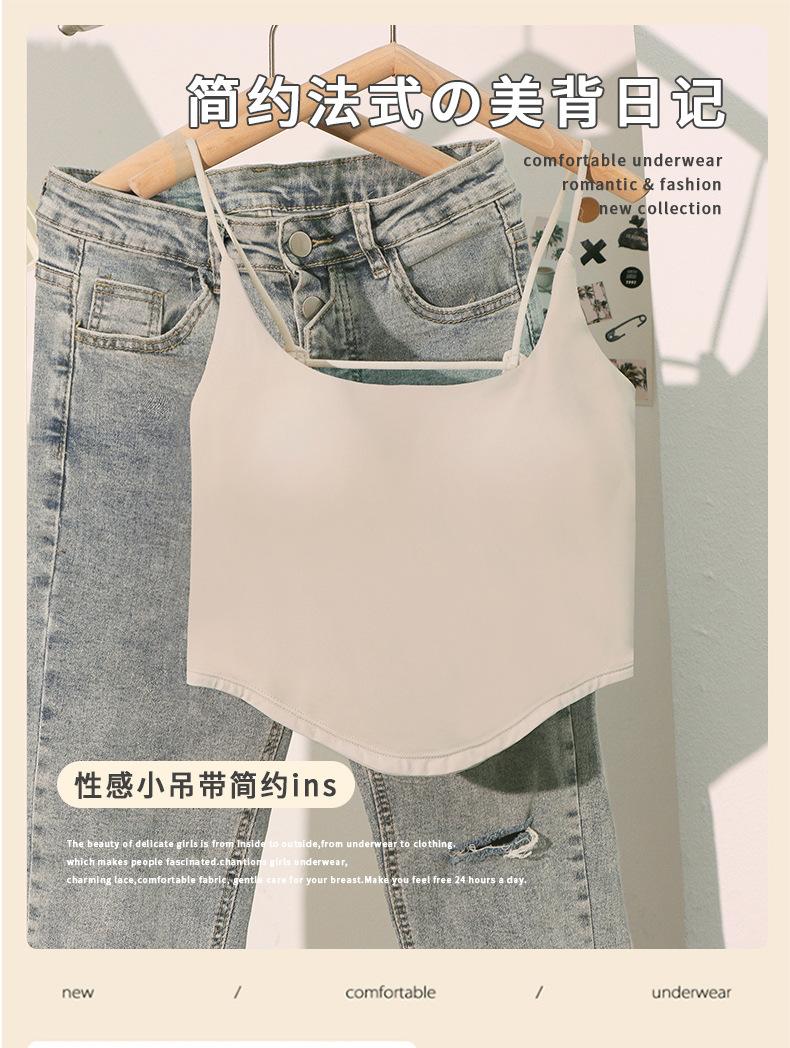 Camisola asimétrica de seda de hielo de verano con hermosa espalda para mujer, ropa interior con almohadilla de pecho integrada, ropa interior básica, ropa exterior, top corto