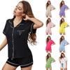 Amazon Europeo y Americano Transfronterizo Verano Básico de Mujer Pantalones Cortos de Manga Corta Conjunto de Ropa de Casa para Mujer Ropa de Dormir
