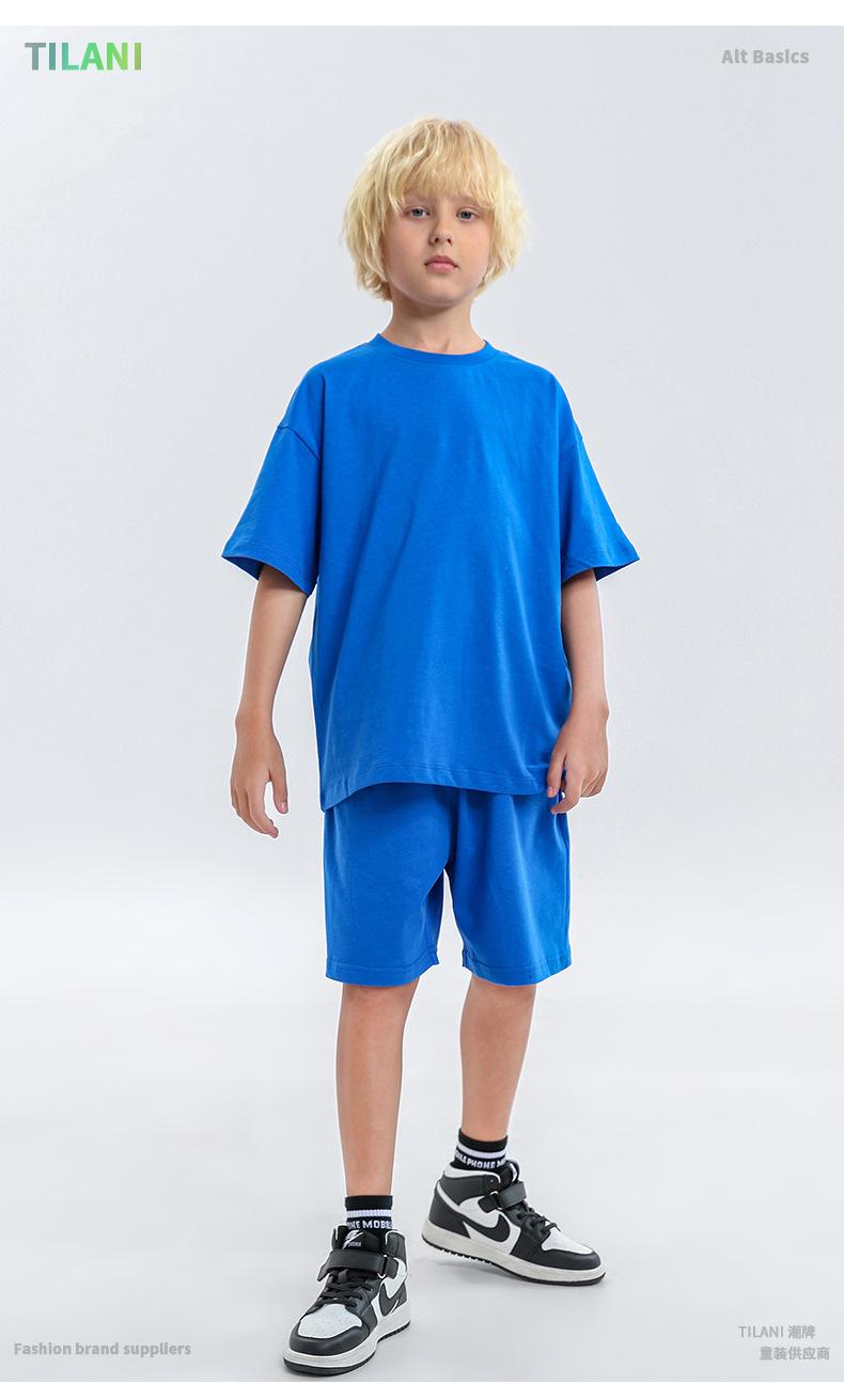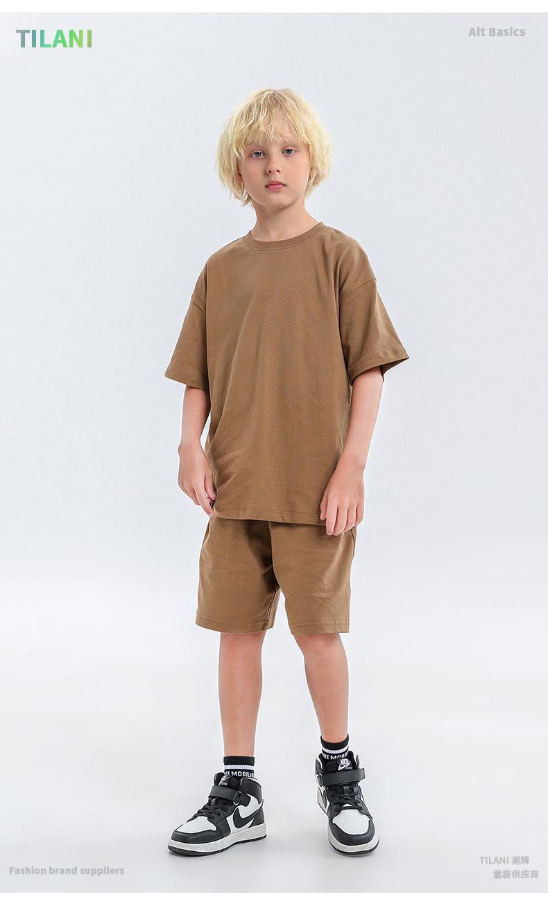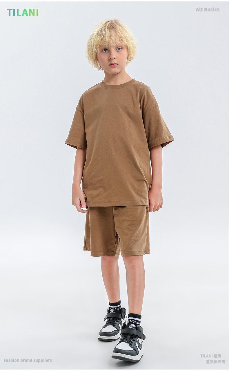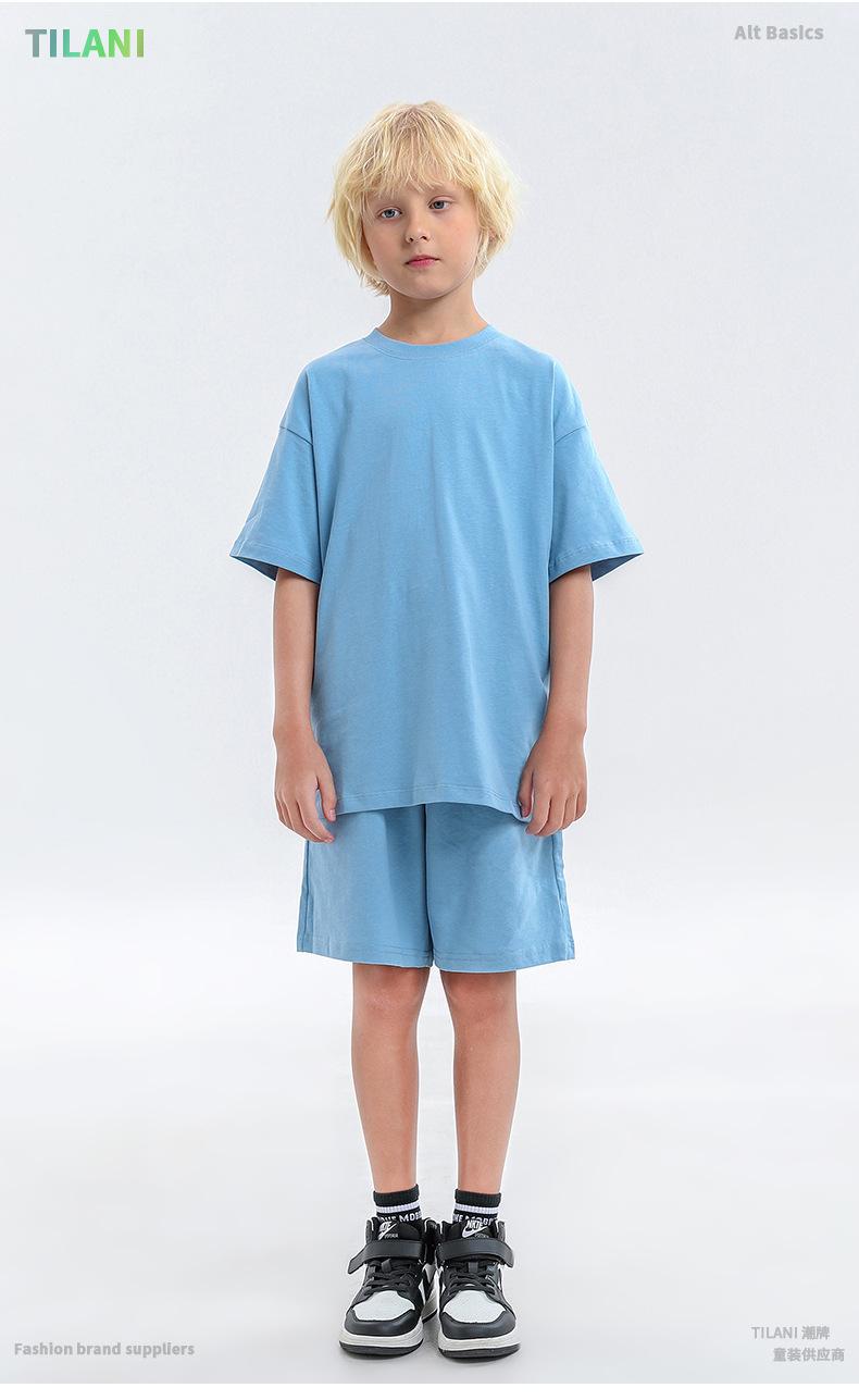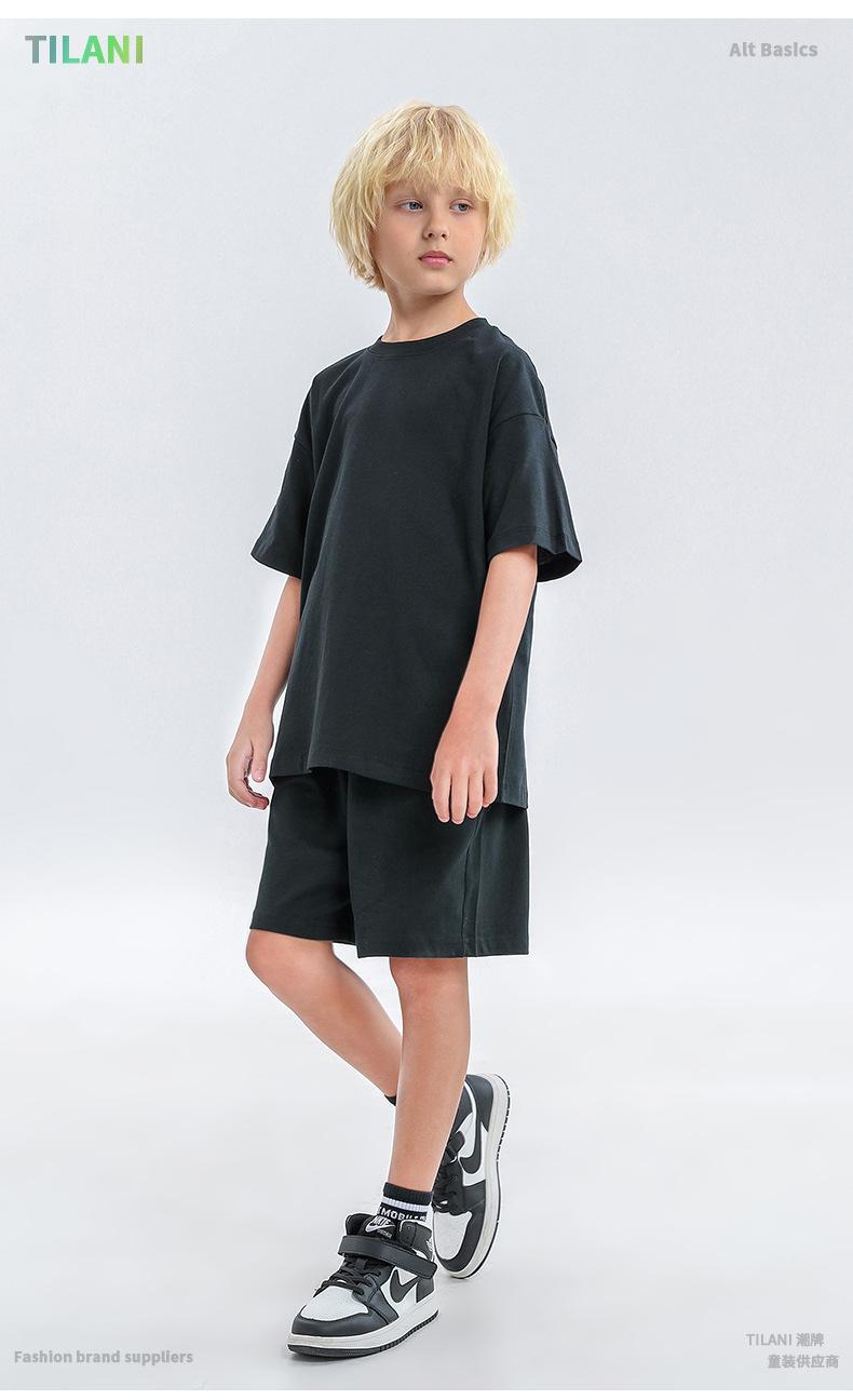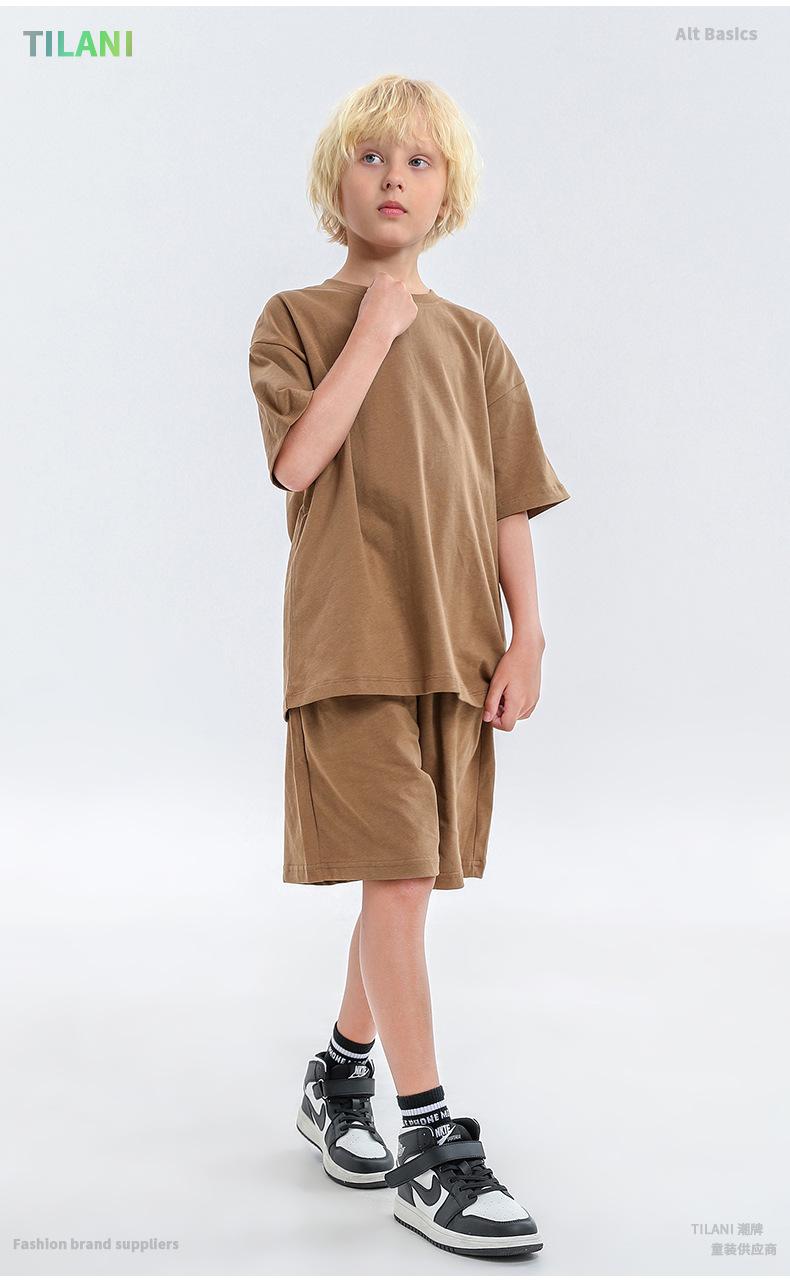 Ropa infantil TILNAI marca europea y americana 220g alta calidad traje de color sólido de dos piezas ropa de hombre transfronteriza