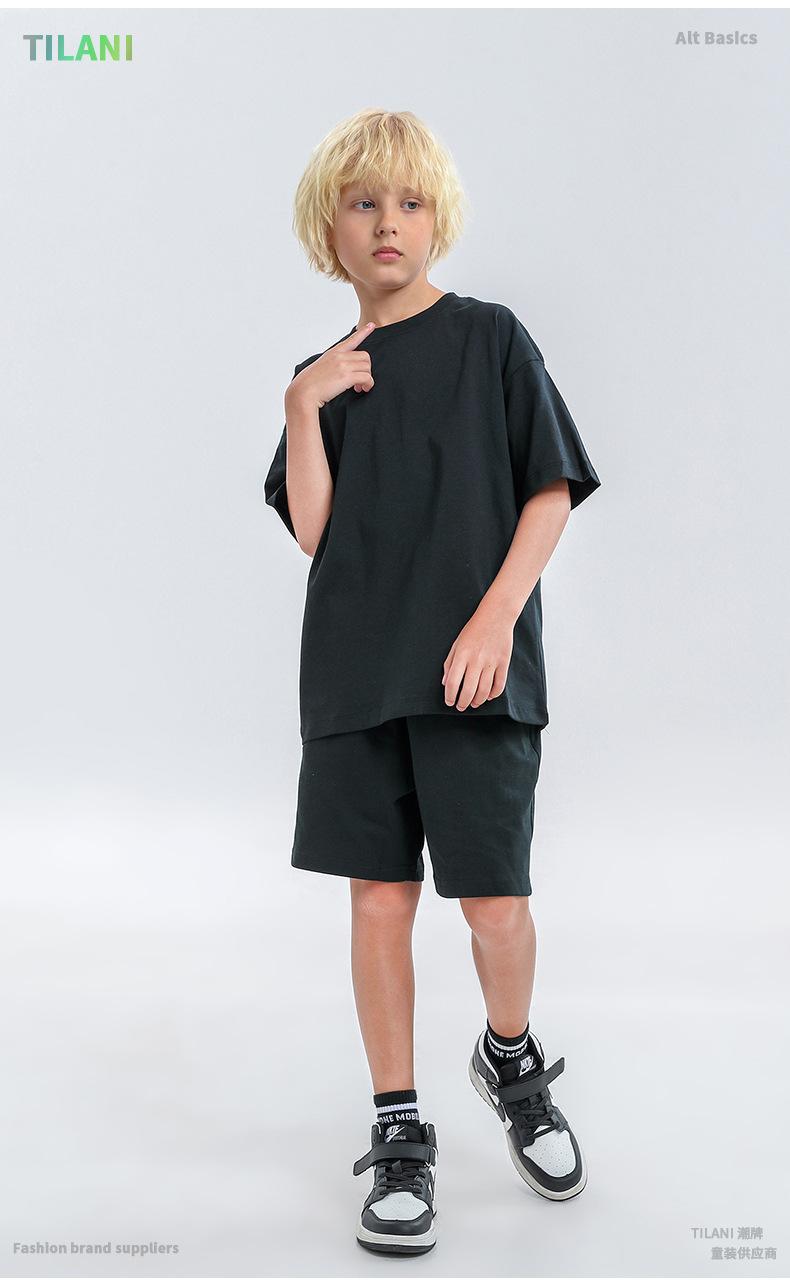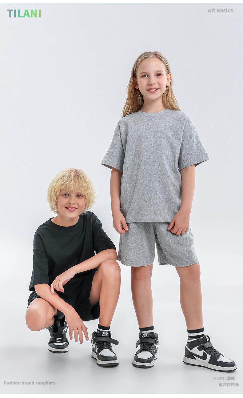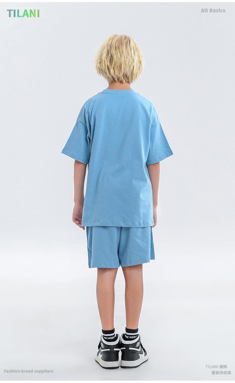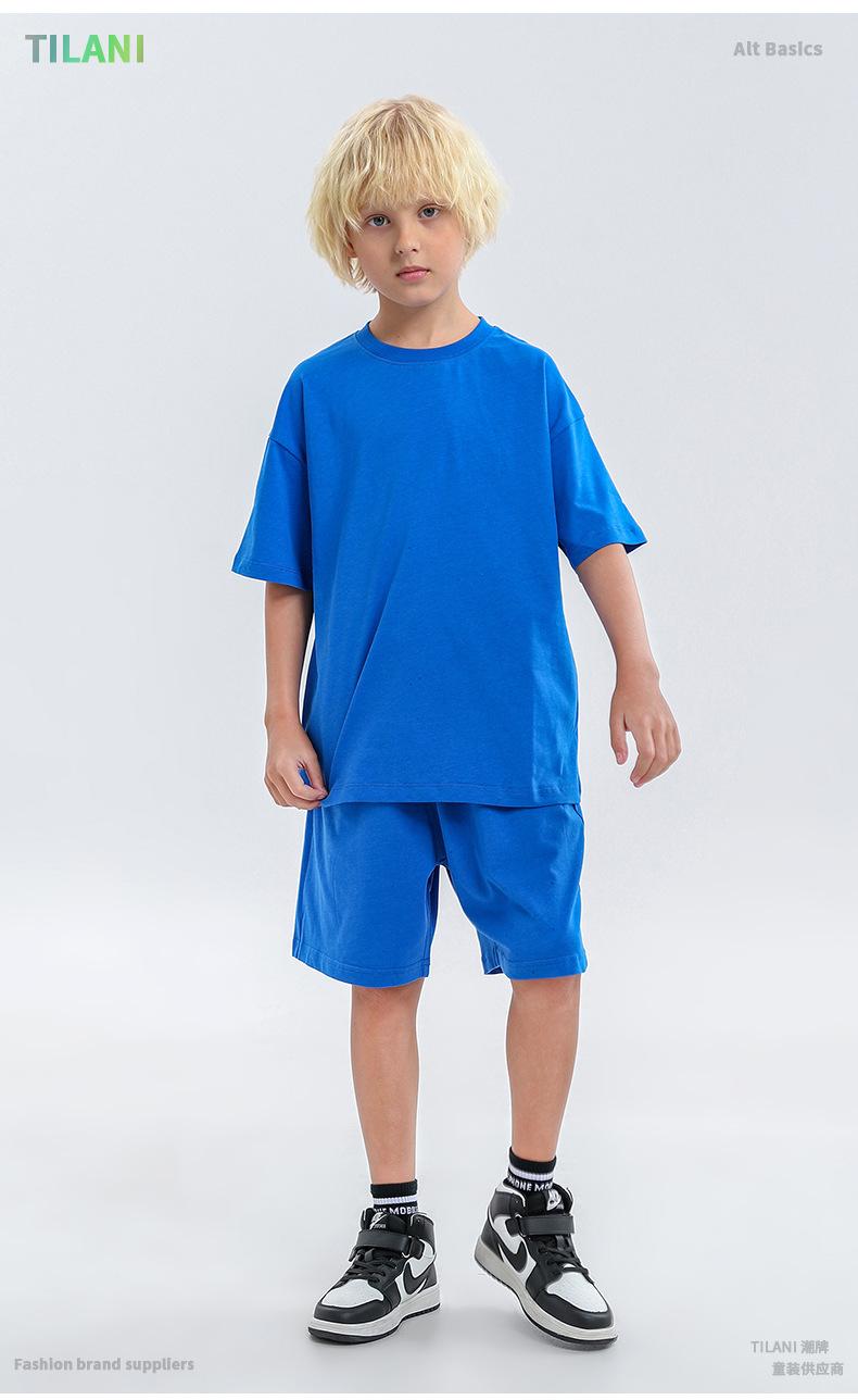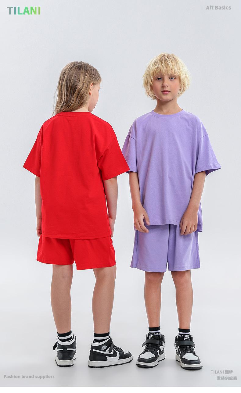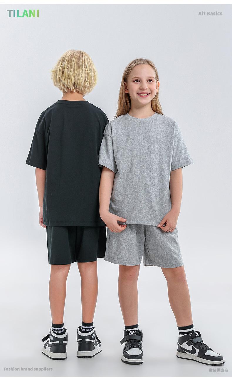 Ropa infantil TILNAI marca europea y americana 220g alta calidad traje de color sólido de dos piezas ropa de hombre transfronteriza