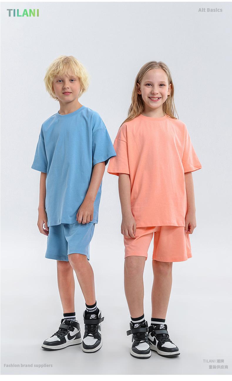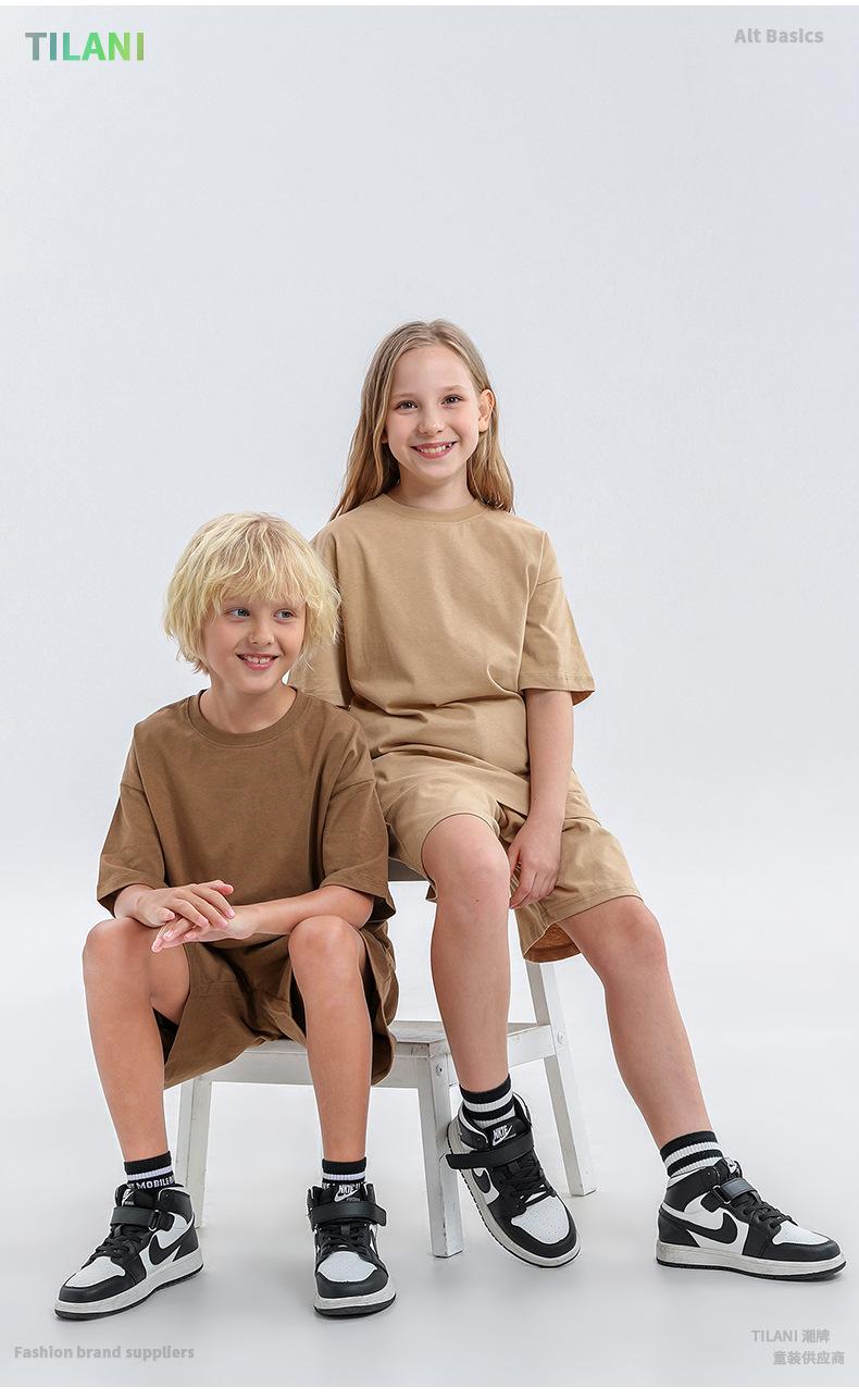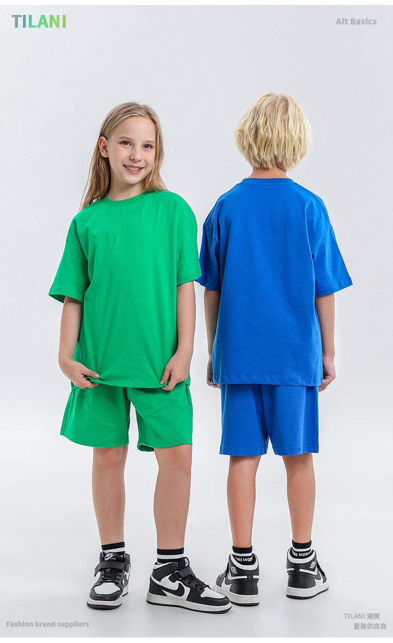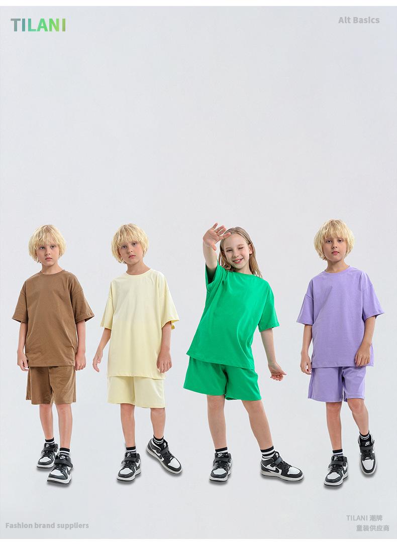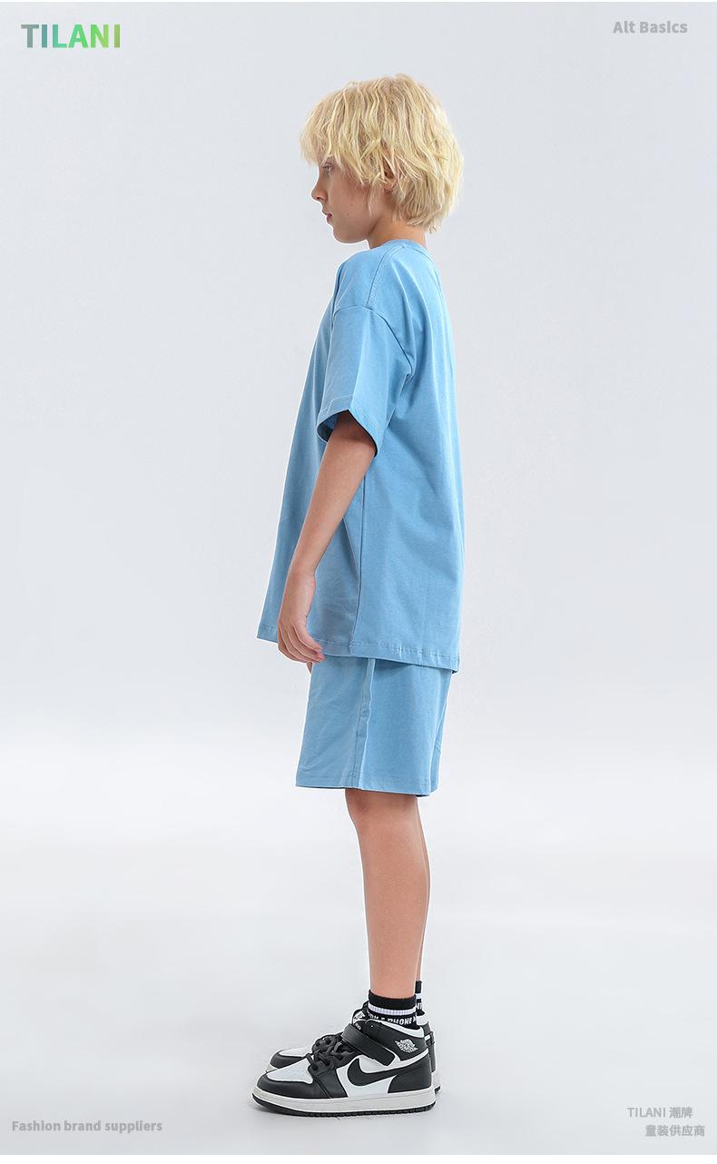 Ropa infantil TILNAI marca europea y americana 220g alta calidad traje de color sólido de dos piezas ropa de hombre transfronteriza
