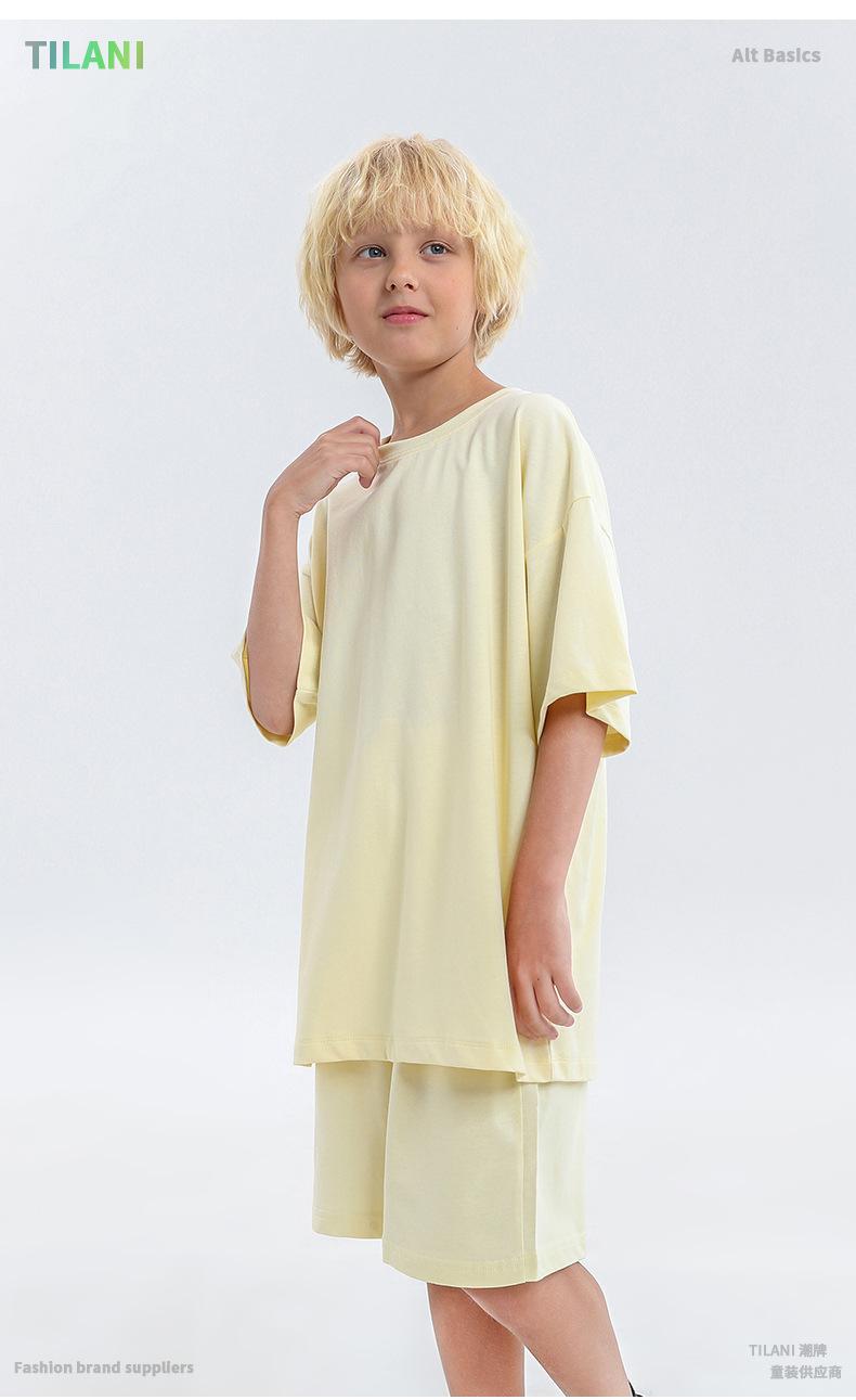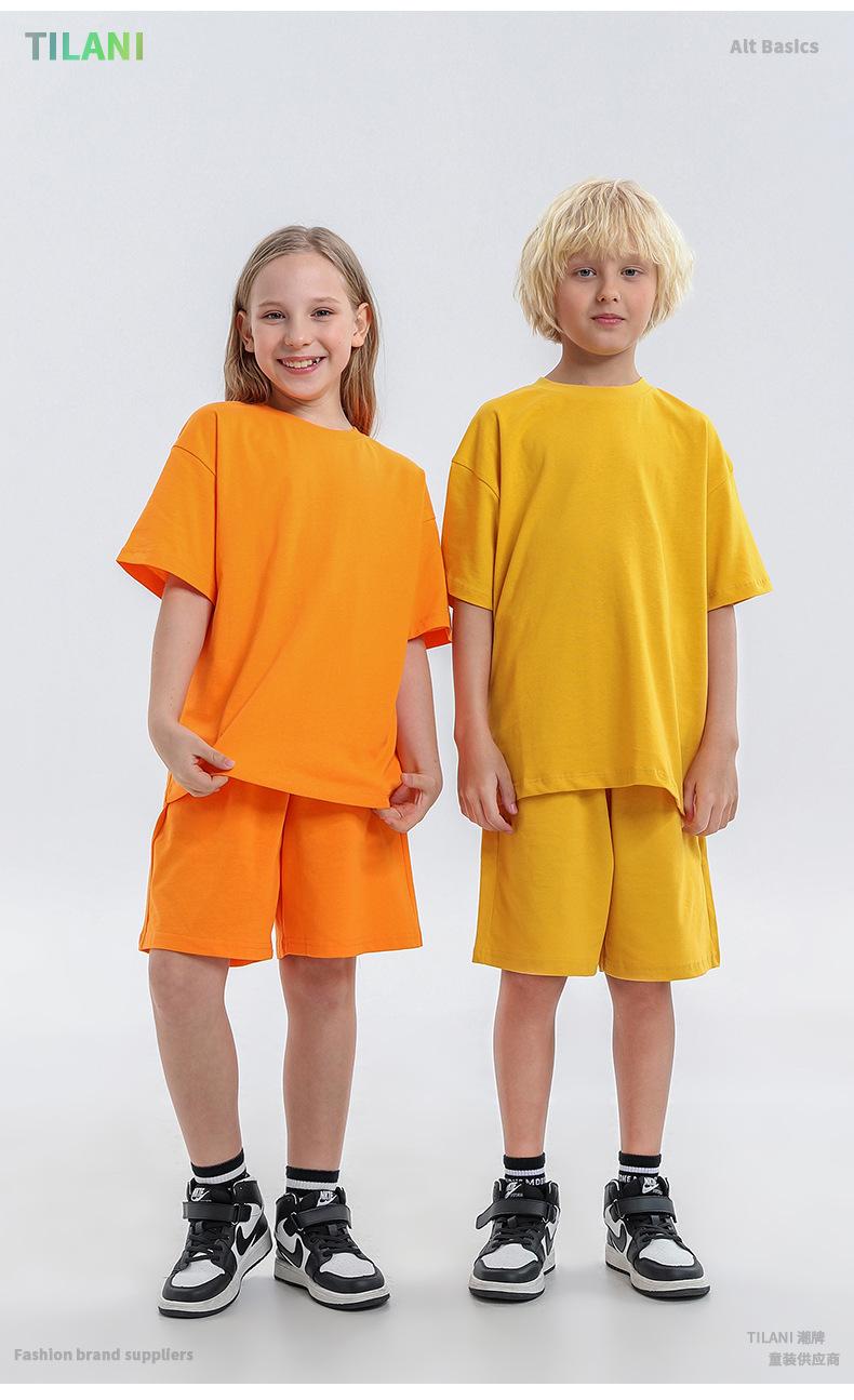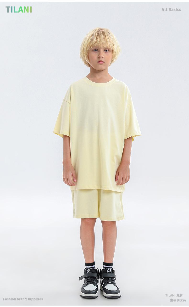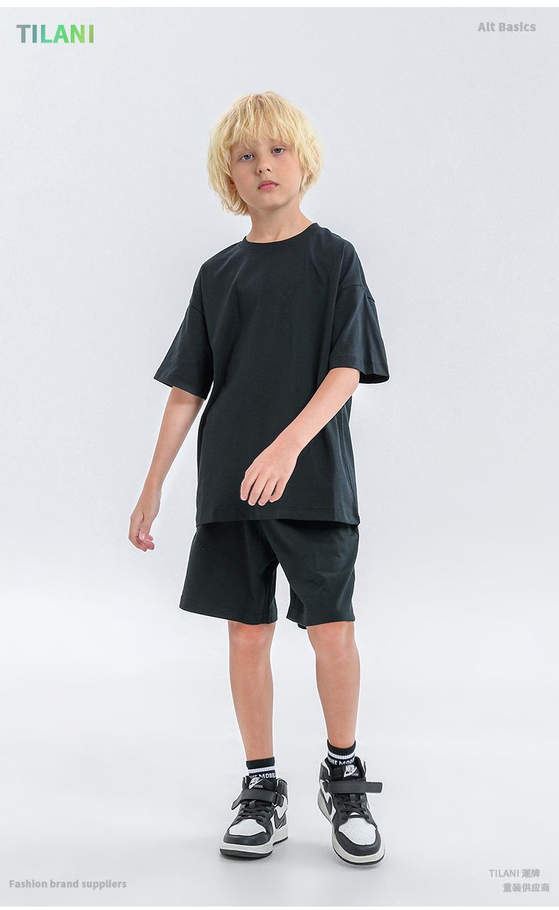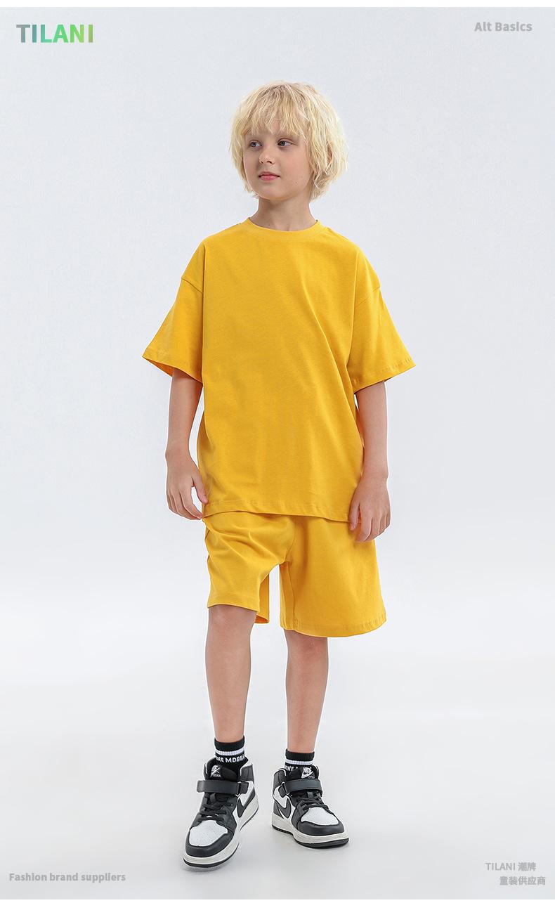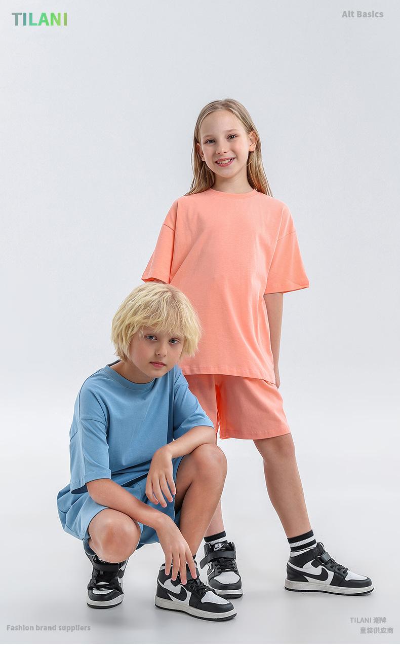 Ropa infantil TILNAI marca europea y americana 220g alta calidad traje de color sólido de dos piezas ropa de hombre transfronteriza