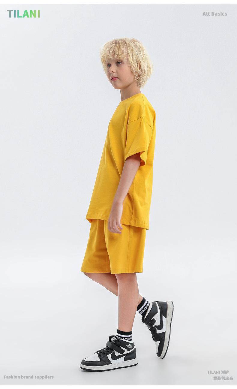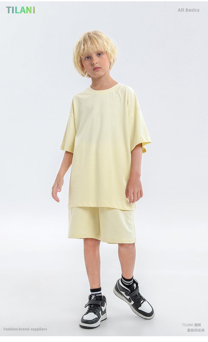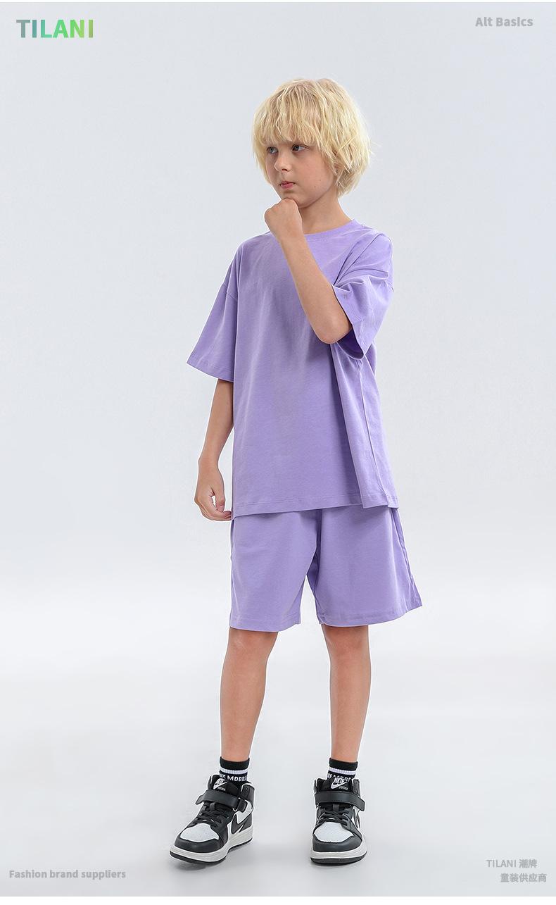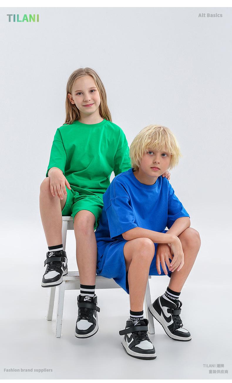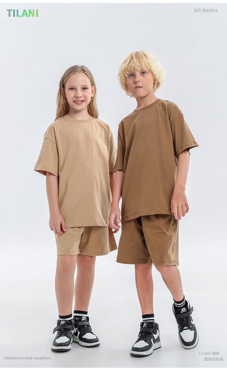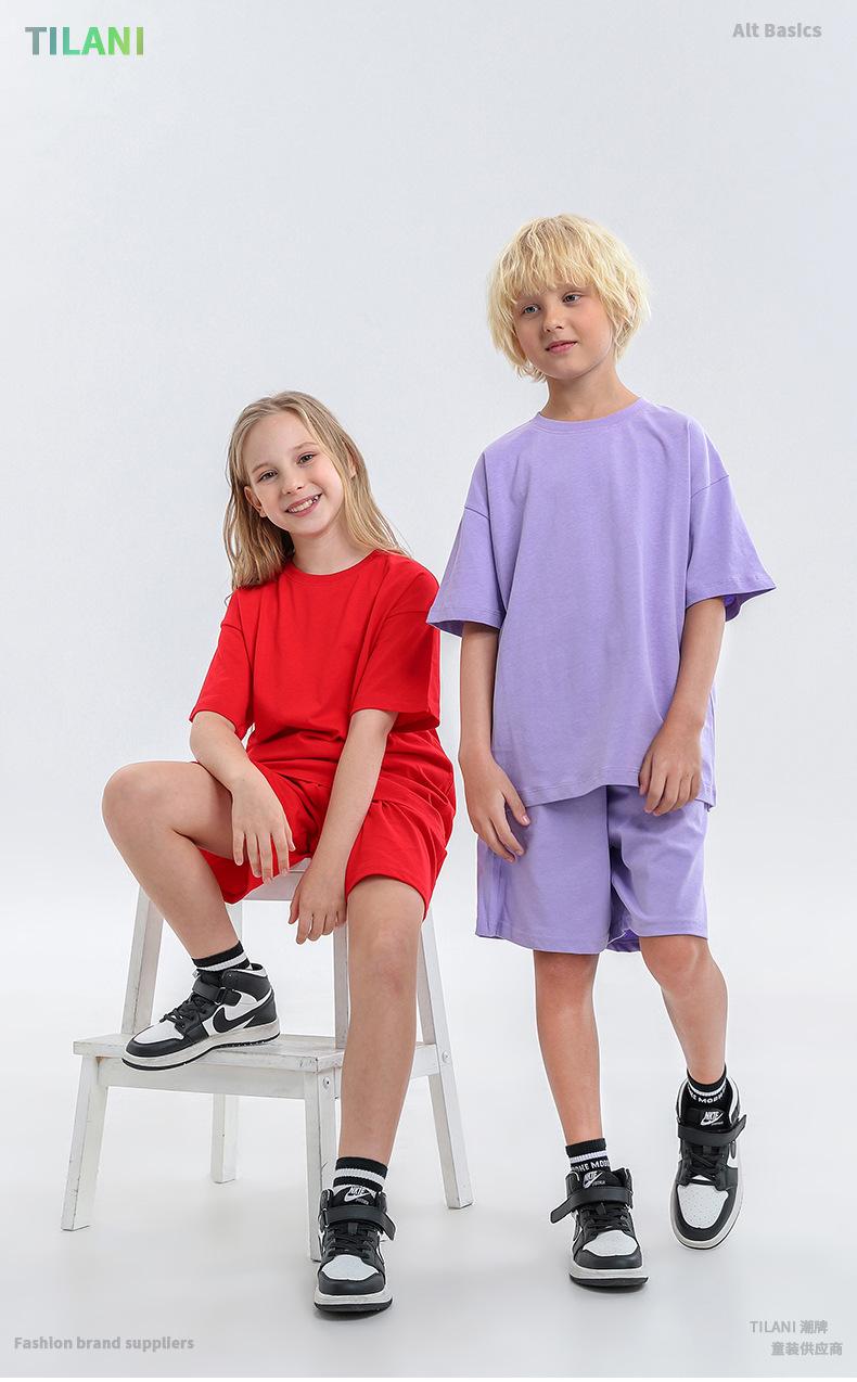 Ropa infantil TILNAI marca europea y americana 220g alta calidad traje de color sólido de dos piezas ropa de hombre transfronteriza