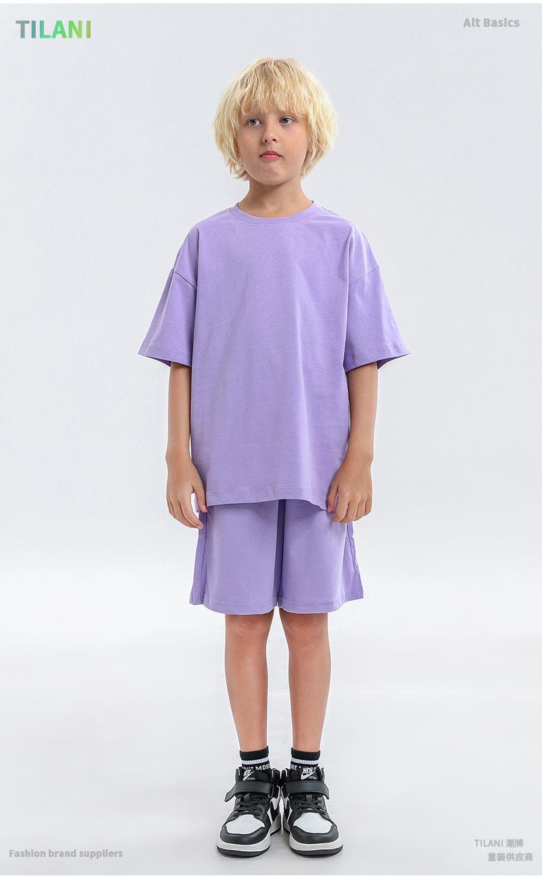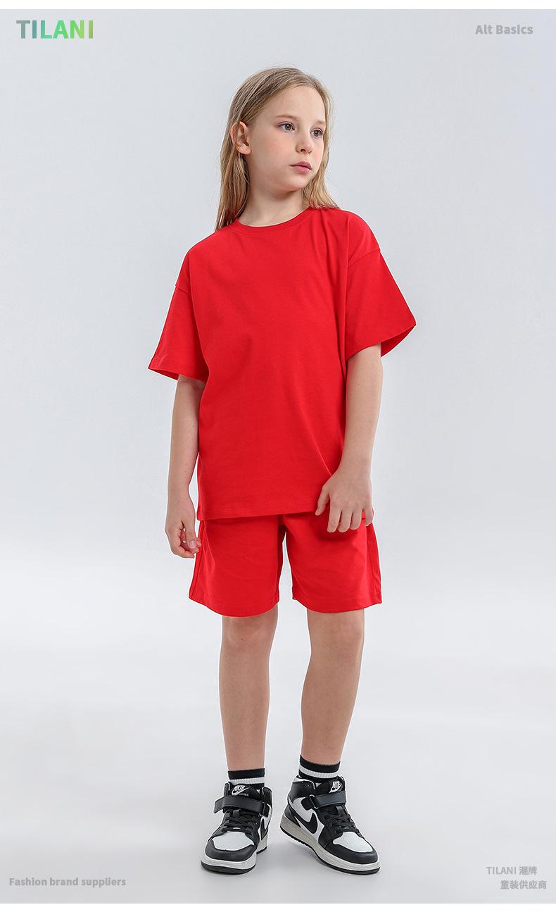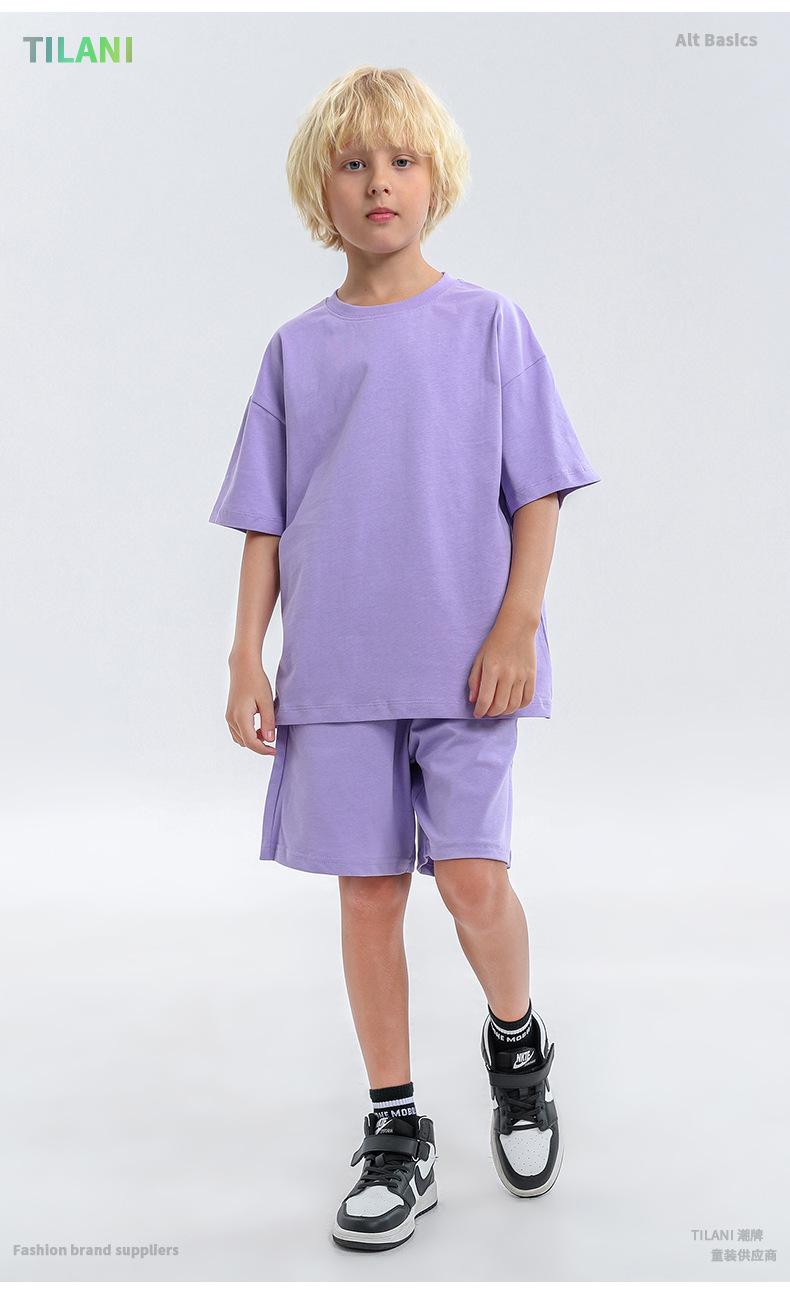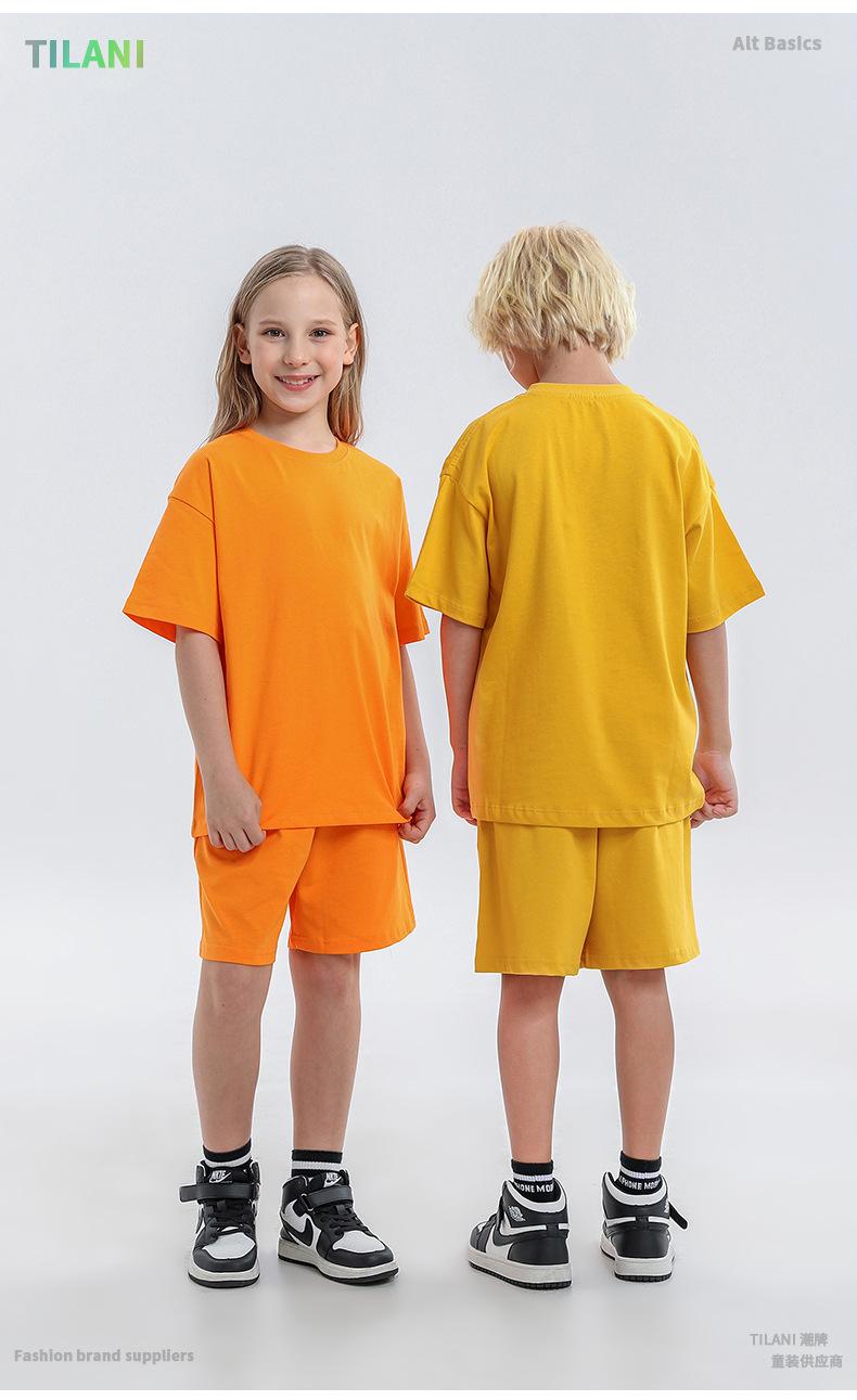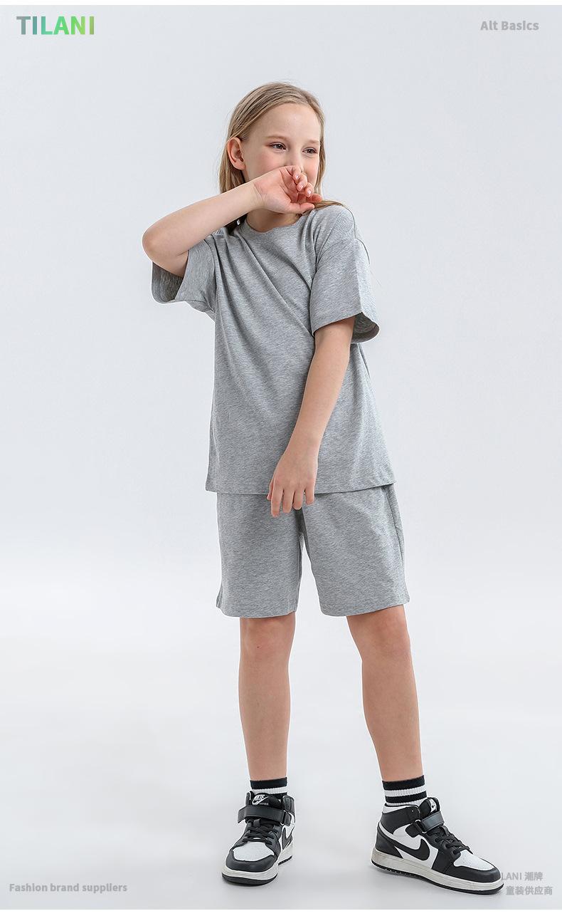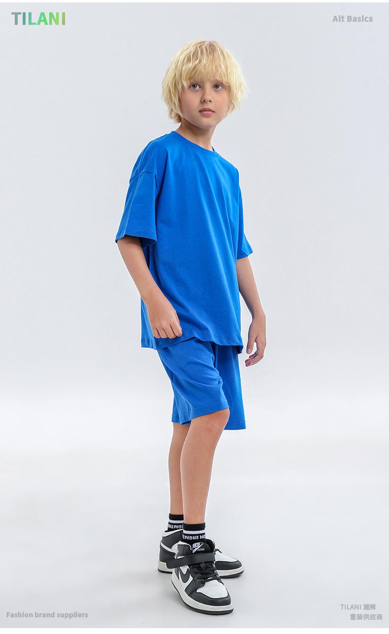 Ropa infantil TILNAI marca europea y americana 220g alta calidad traje de color sólido de dos piezas ropa de hombre transfronteriza