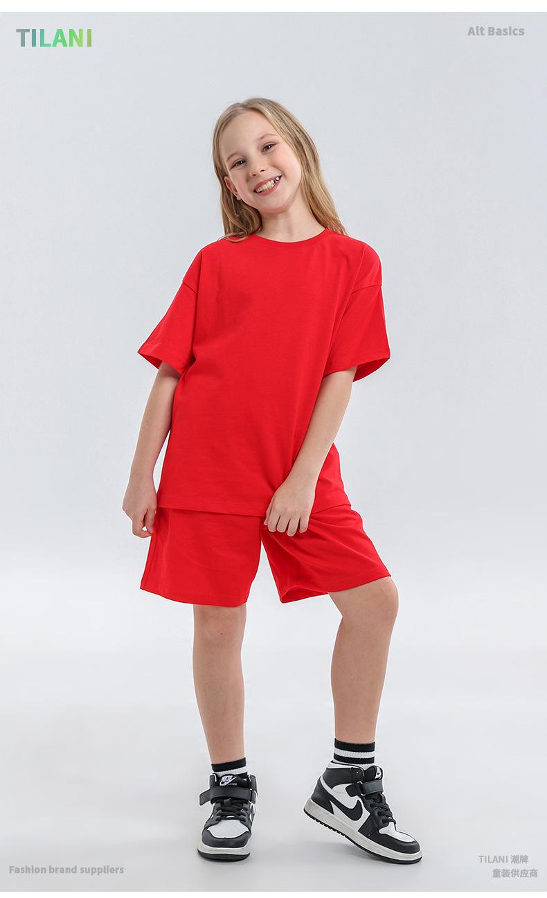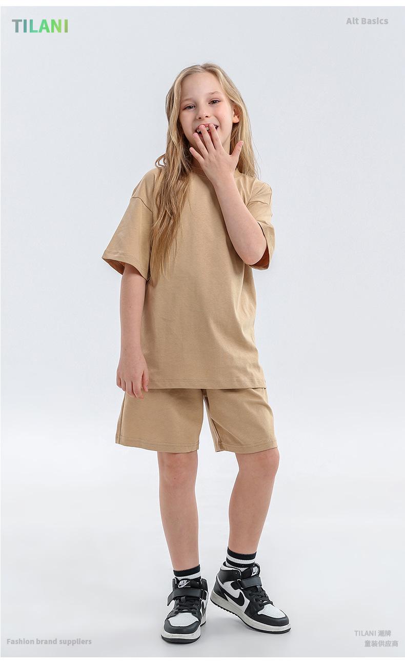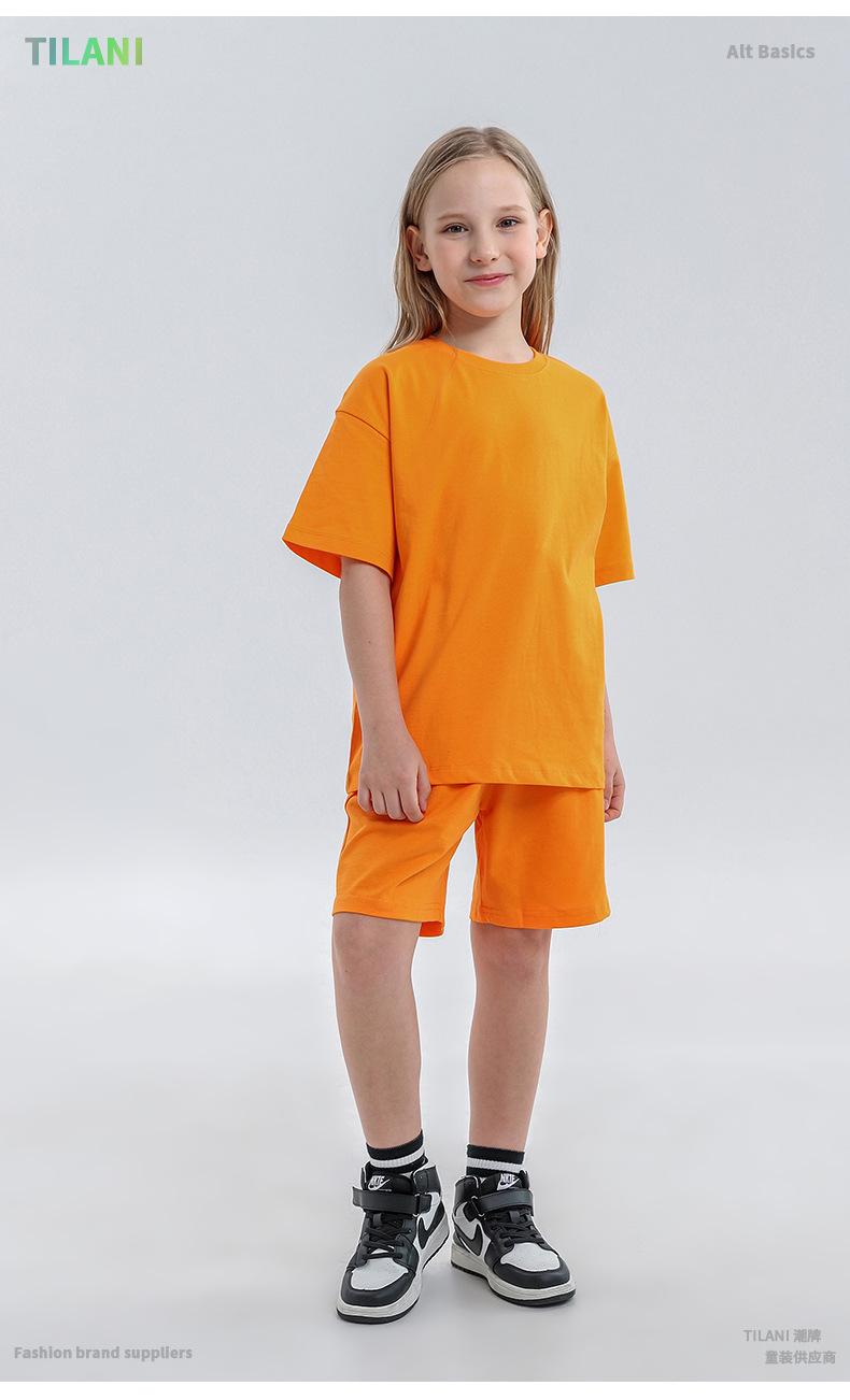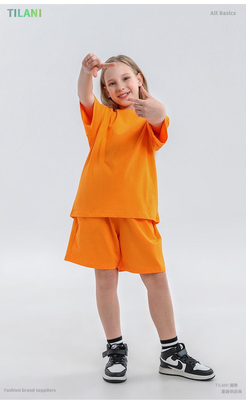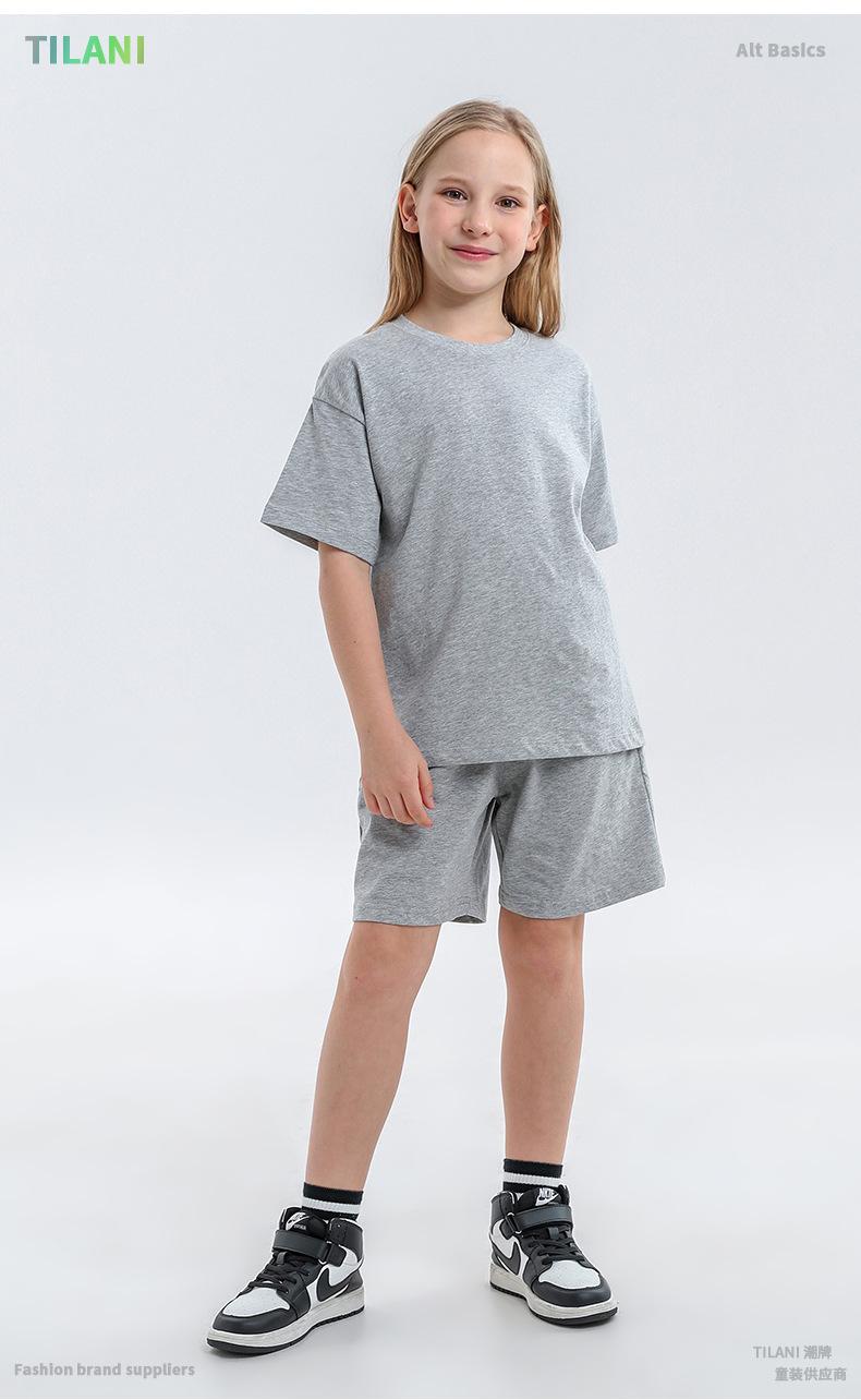 Ropa infantil TILNAI marca europea y americana 220g alta calidad traje de color sólido de dos piezas ropa de hombre transfronteriza