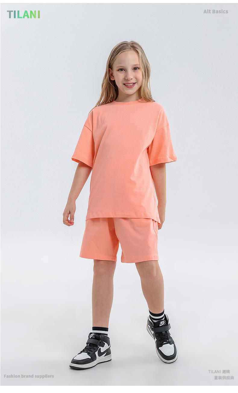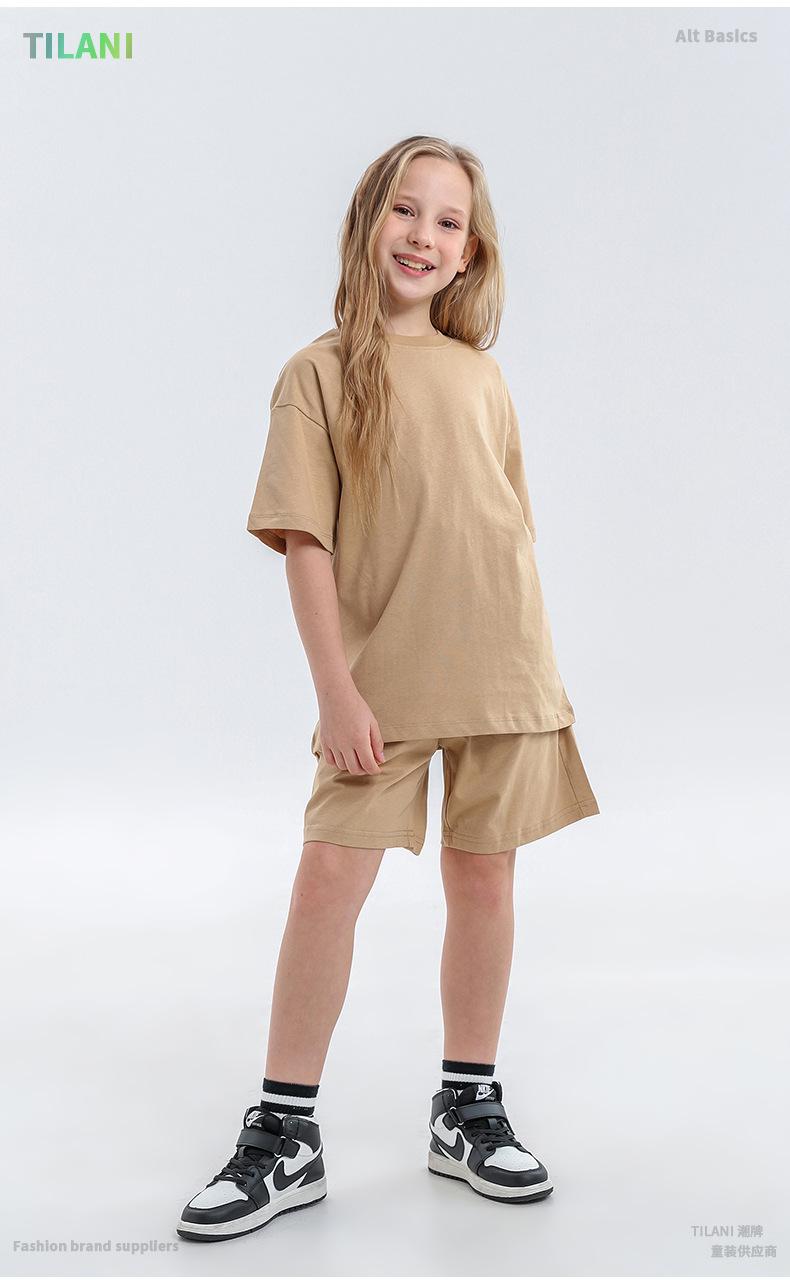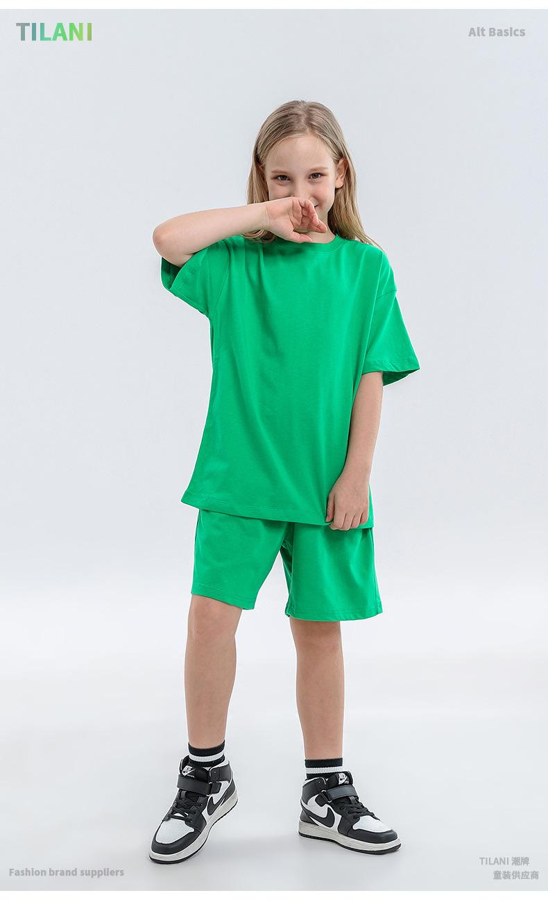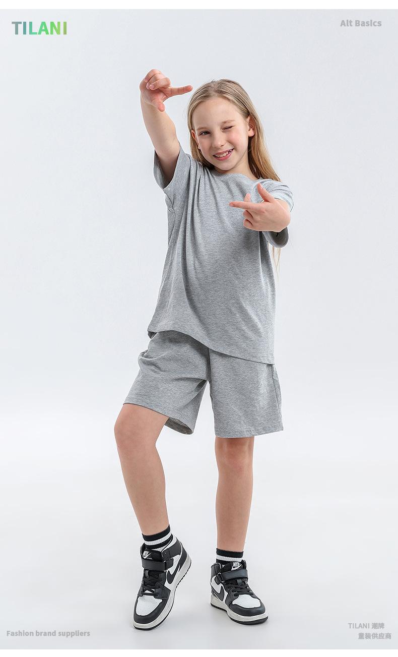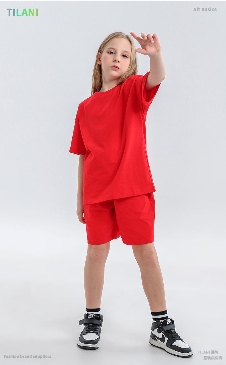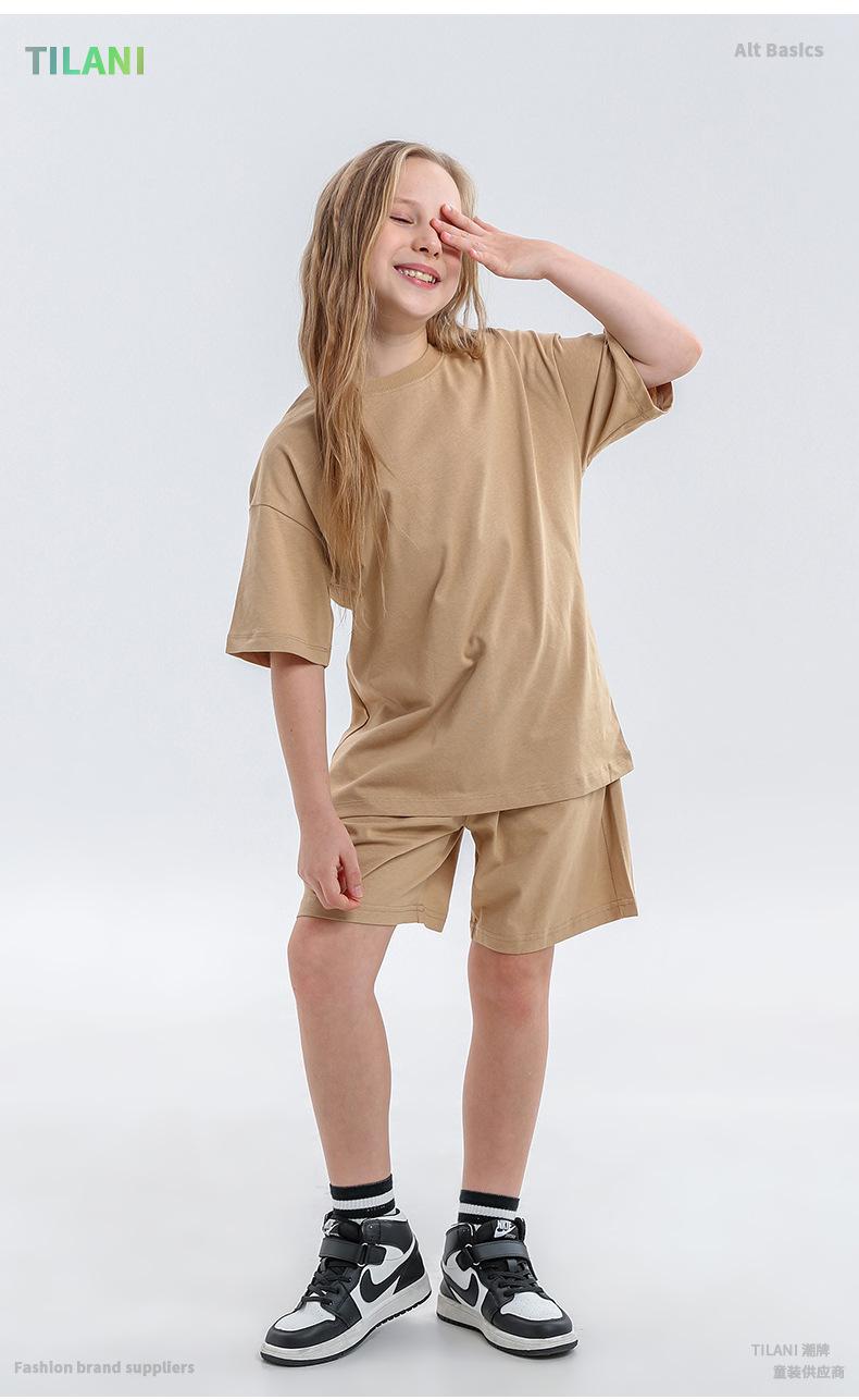 Ropa infantil TILNAI marca europea y americana 220g alta calidad traje de color sólido de dos piezas ropa de hombre transfronteriza