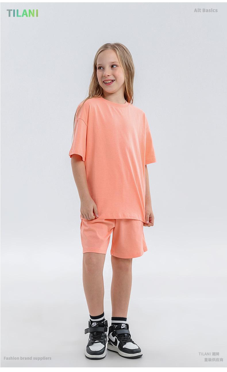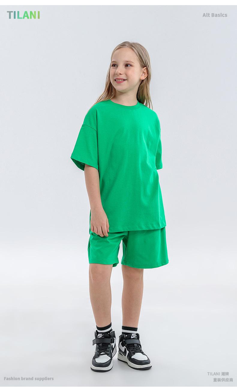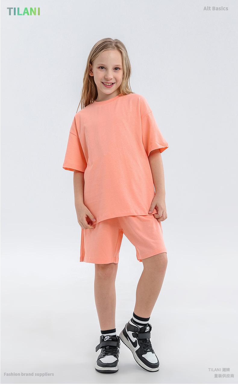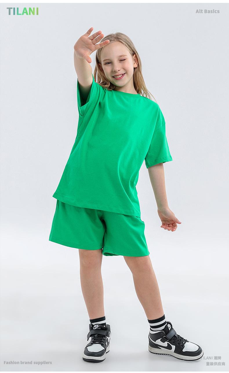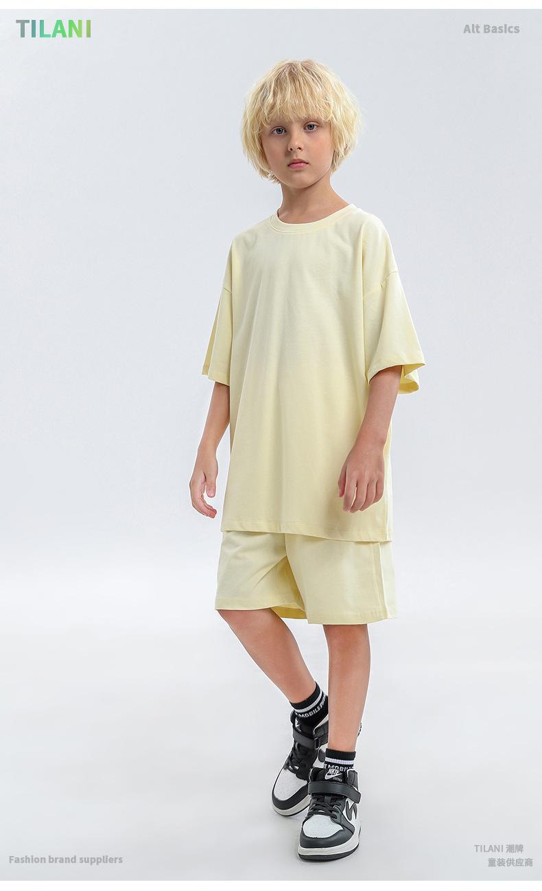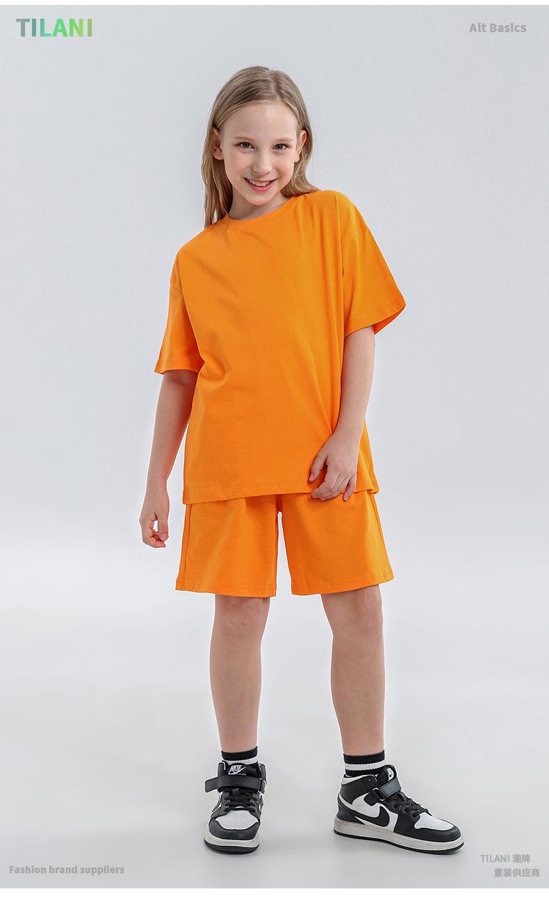 Ropa infantil TILNAI marca europea y americana 220g alta calidad traje de color sólido de dos piezas ropa de hombre transfronteriza