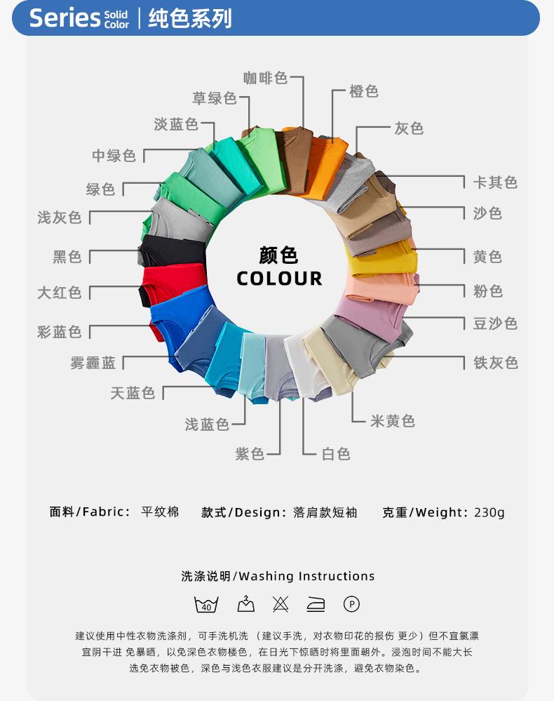 Yellow, Purple, Gray, Green, Black, Pink, Beige, Bright red, Brown, Khaki, Orange, Light Blue, Colored blue