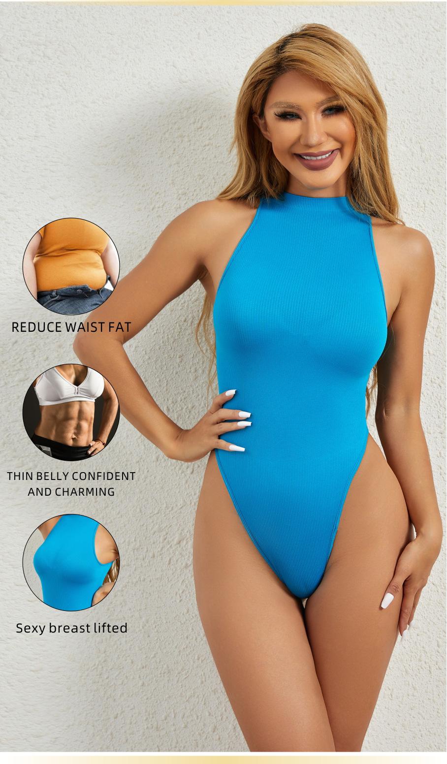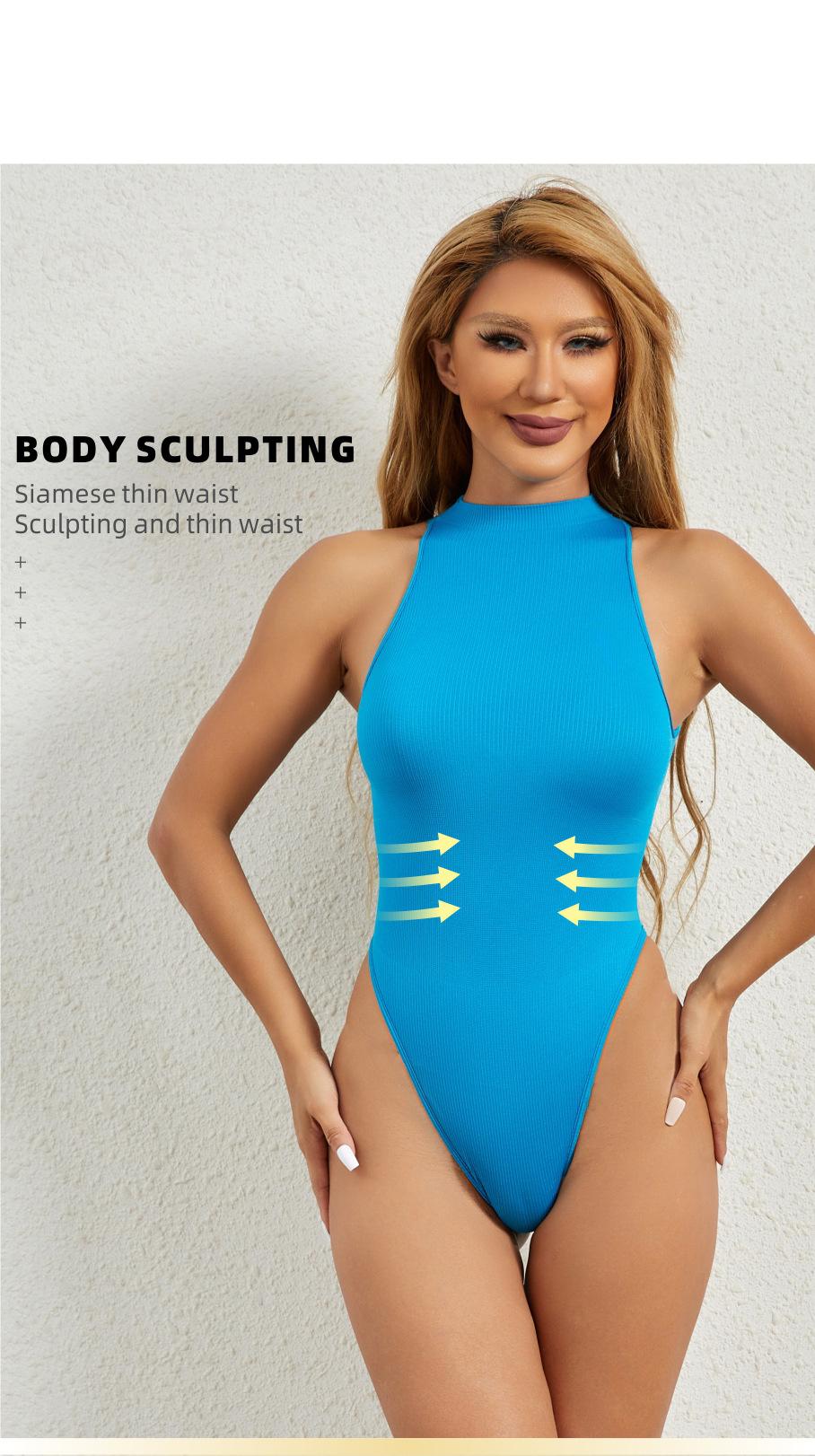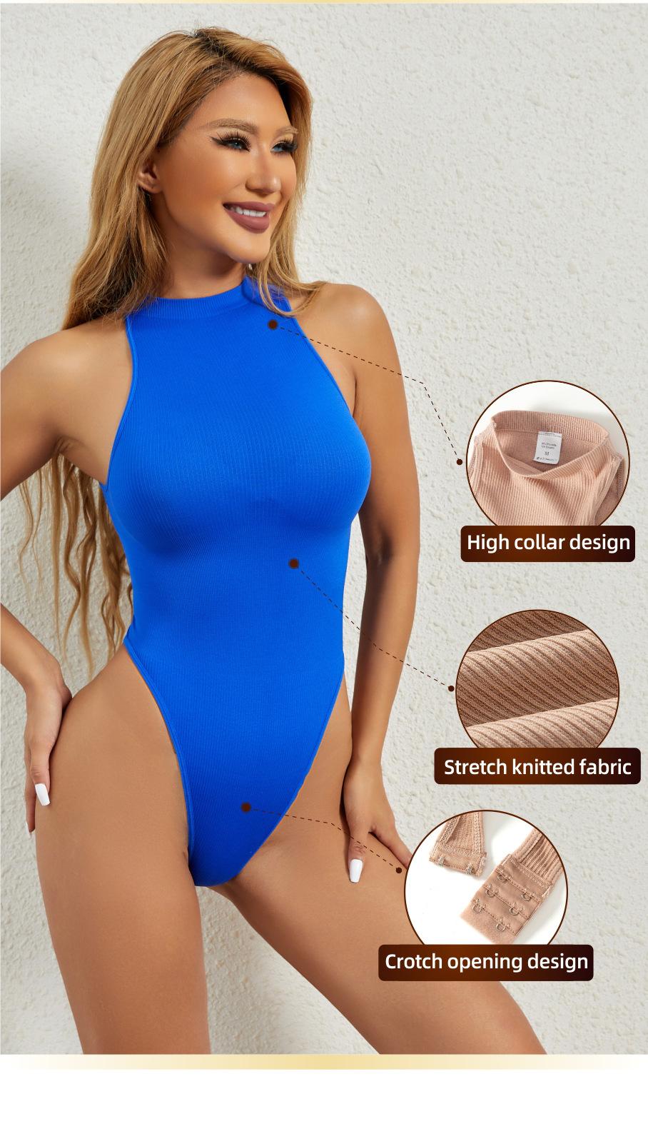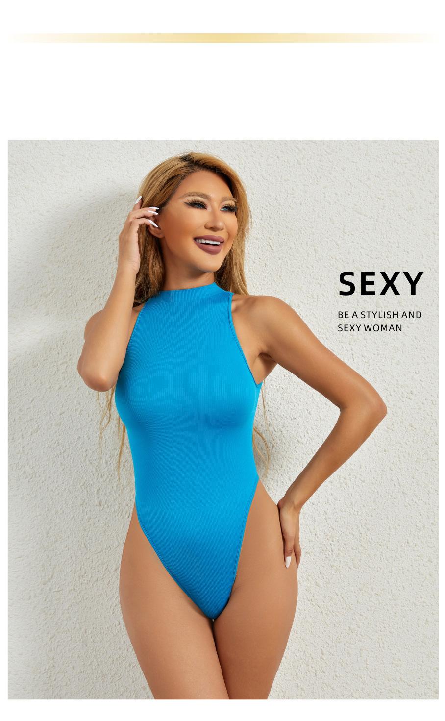 Mono de mujer transfronterizo con cuello redondo, sin mangas, con medias ajustadas y escote en T, corsé en forma de T