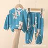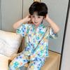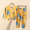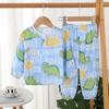 Pijama de algodón y seda para niños, conjunto de manga larga, para niños y niñas, de algodón y seda, antimosquitos, con aire acondicionado, ropa fina para el hogar.