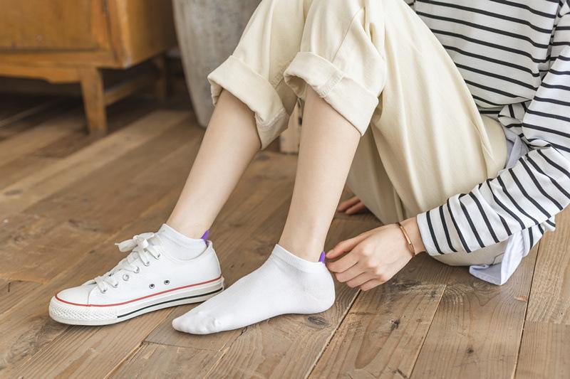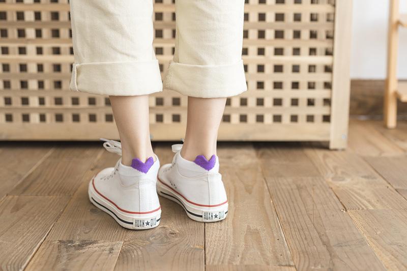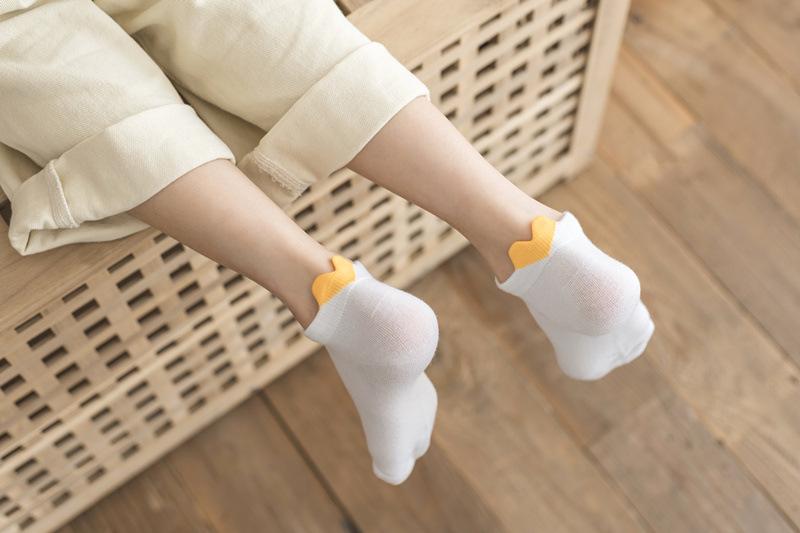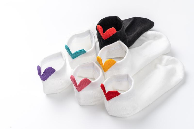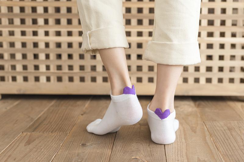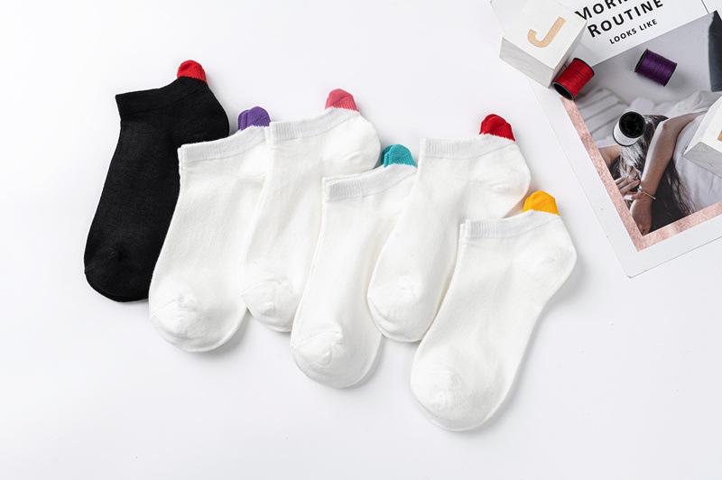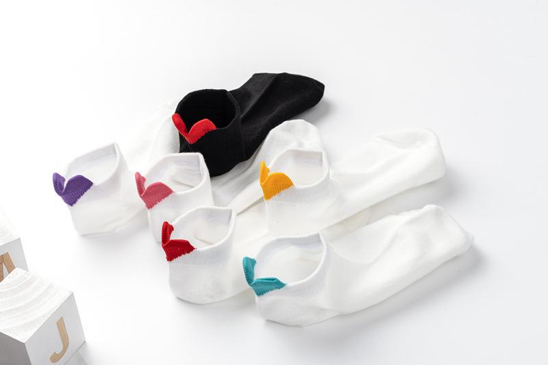 Calcetines para Mujer Primavera y Verano Nuevos Color Sólido Talón Tridimensional Amor Boca Baja Calcetines Cortos Estilo Academia Simple Calcetines de Barco con Orejas para Mujer