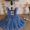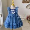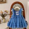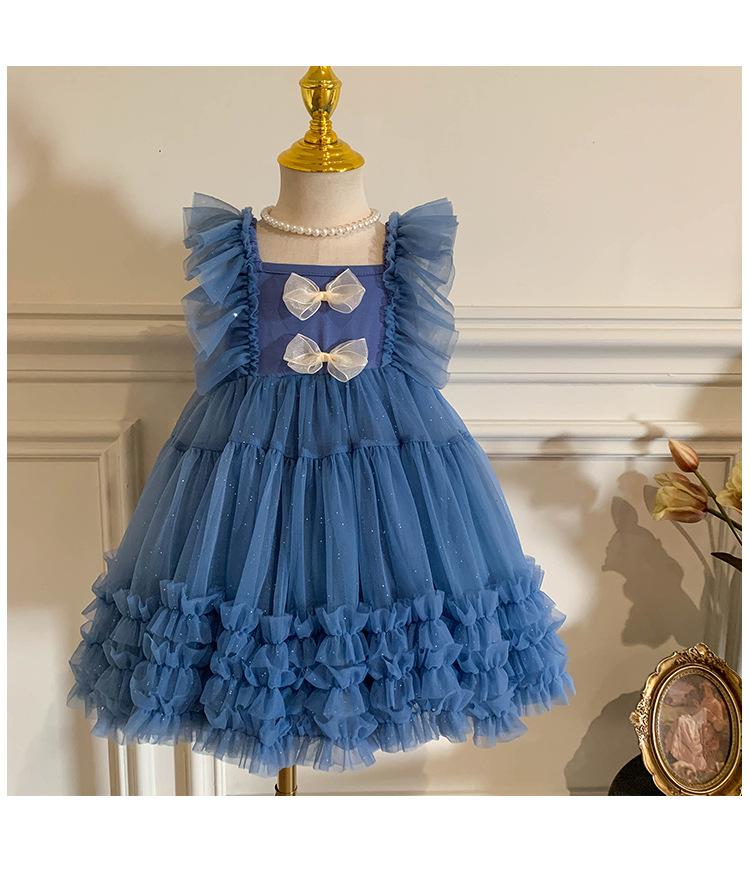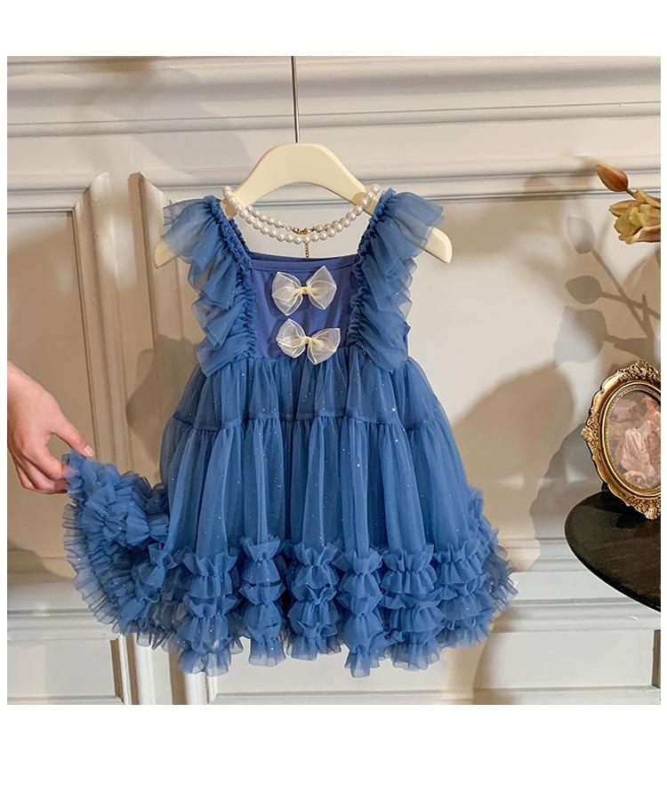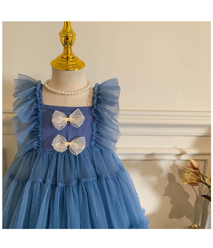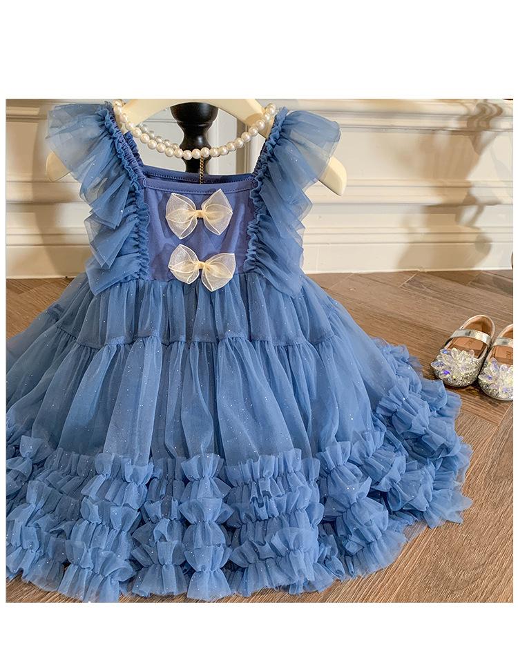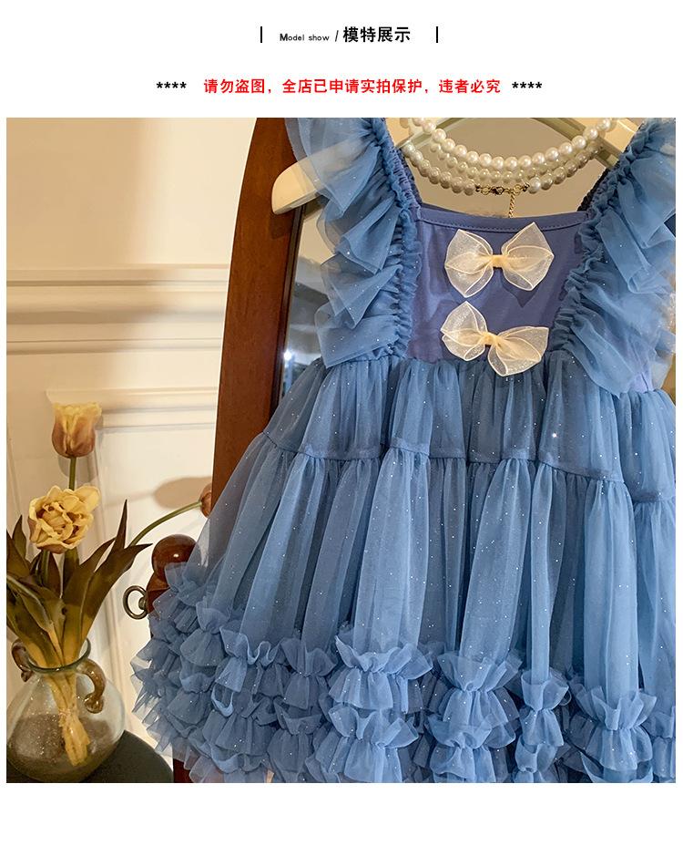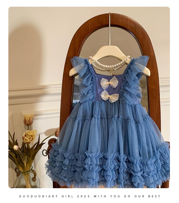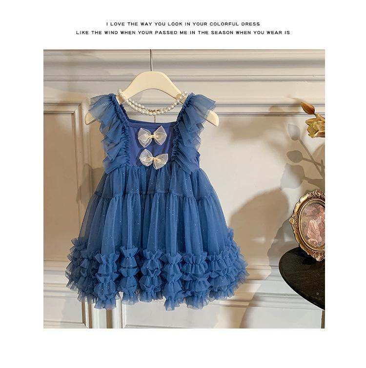 Ropa para Niños Estilo Coreano Vestido para Niñas Verano 2025 Nuevo Estilo Diseño Moderno Color Sólido Vestido de Gasa con Lazo para Bebé
