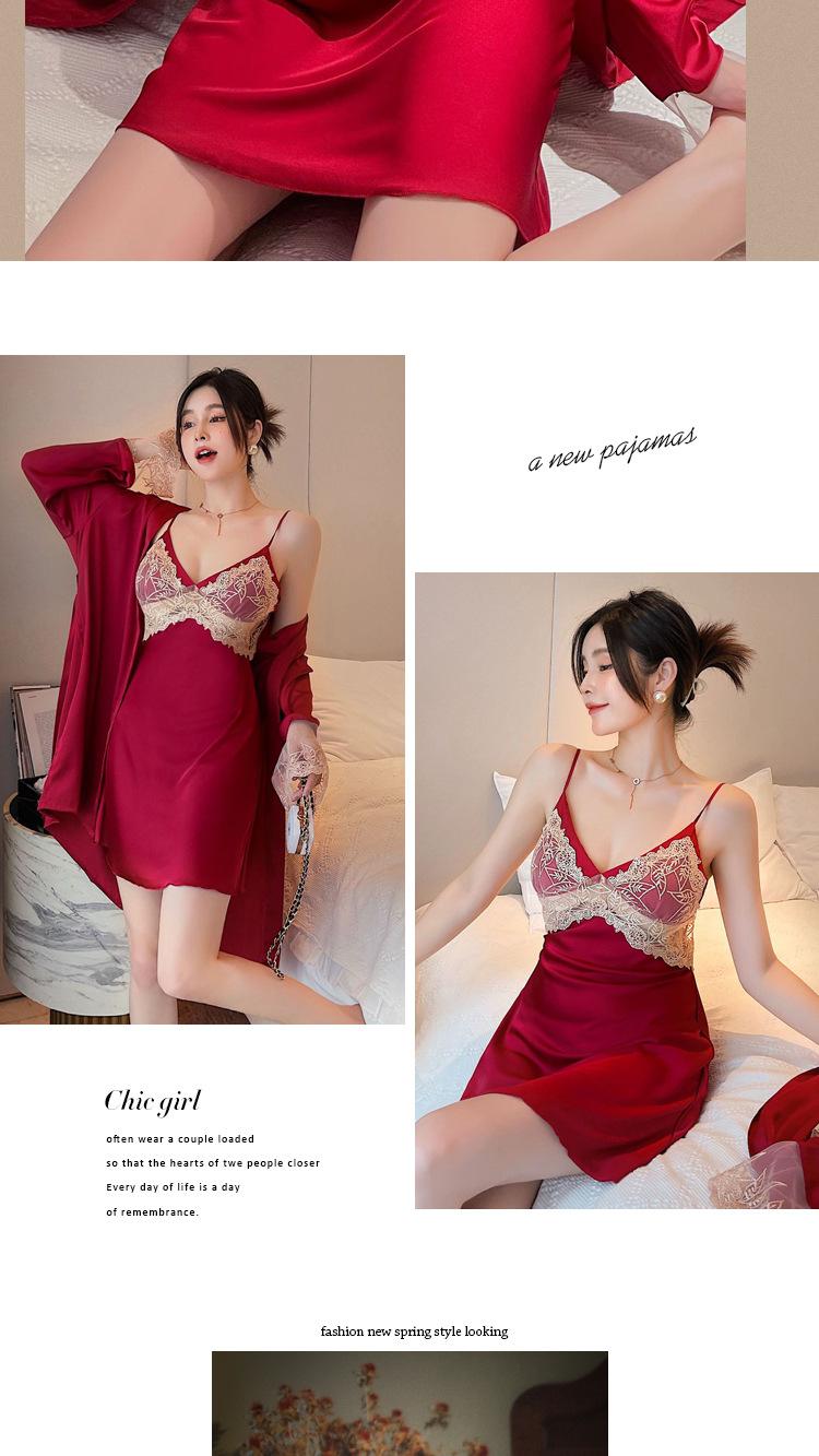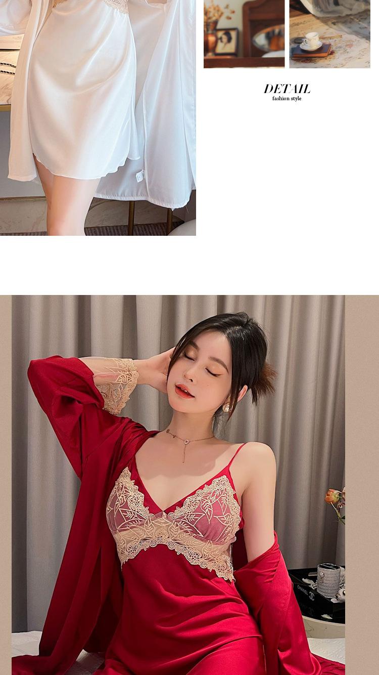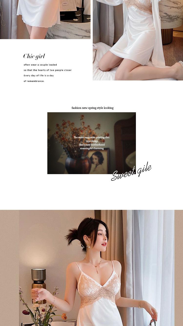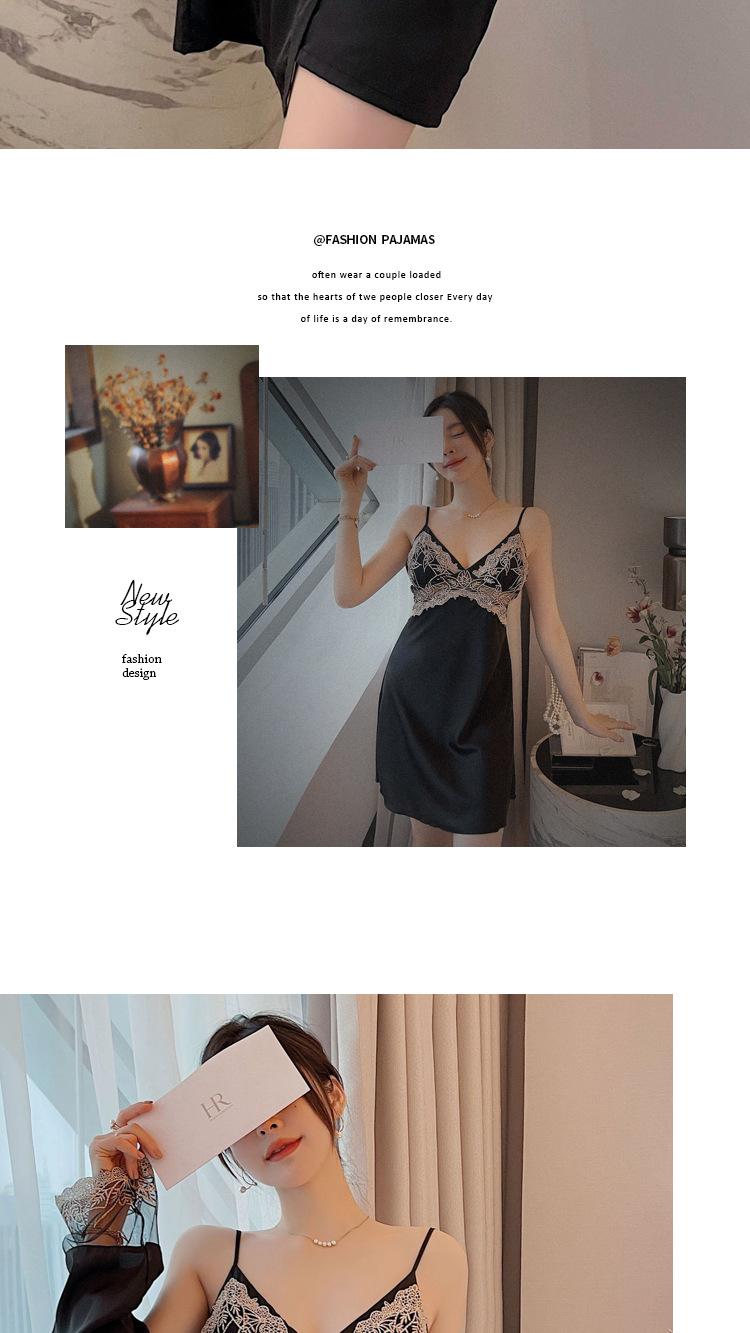 Camisón de Encaje con Tirantes Tentación Verano Tipo Seda Sexy Pijama Camisón de Mujer de Alta Gama con Copas Traje