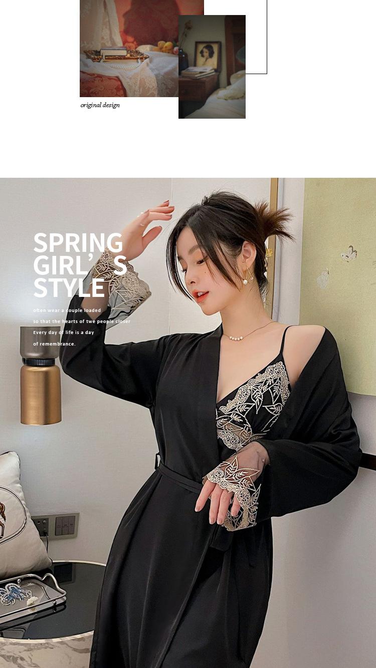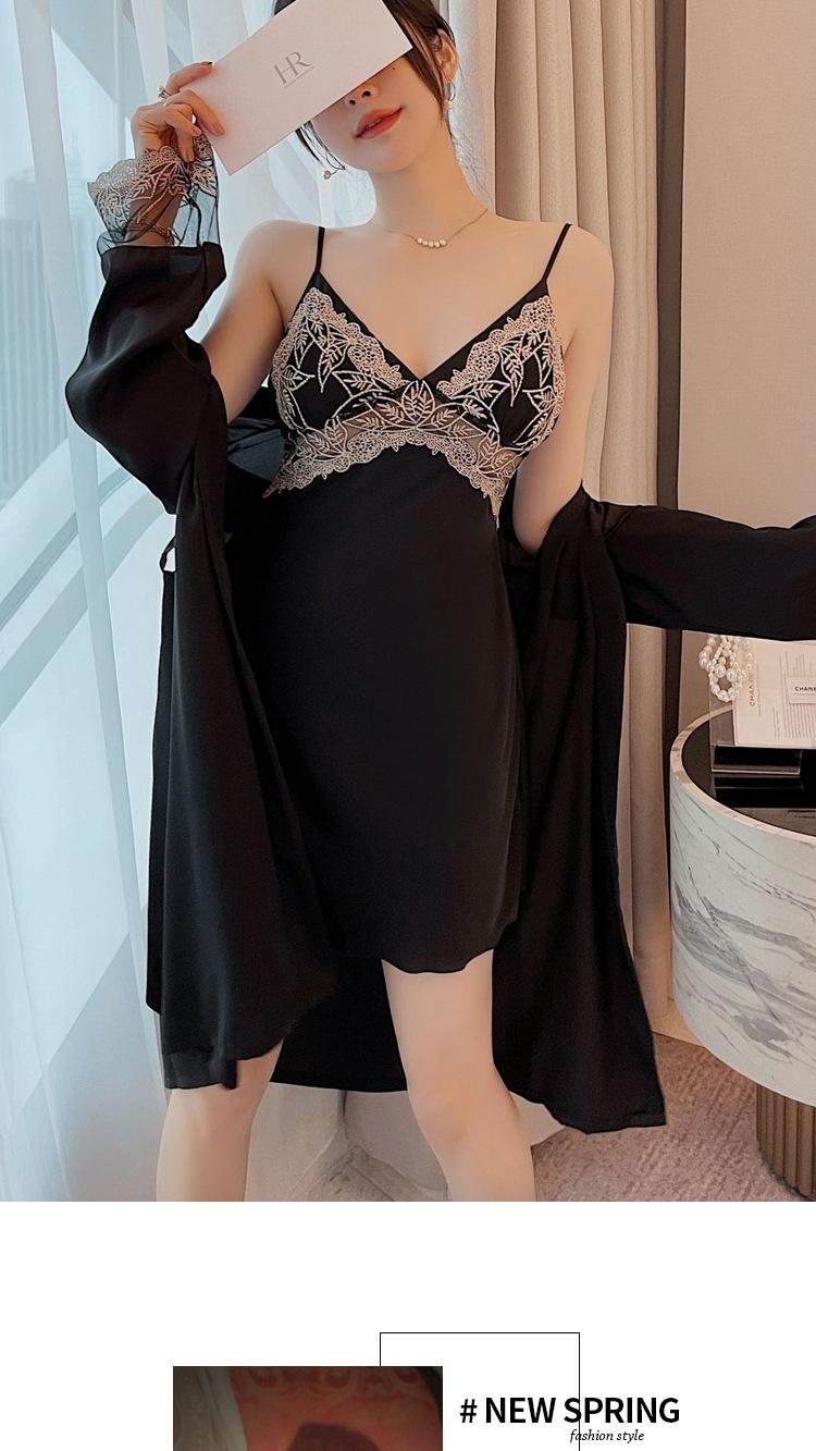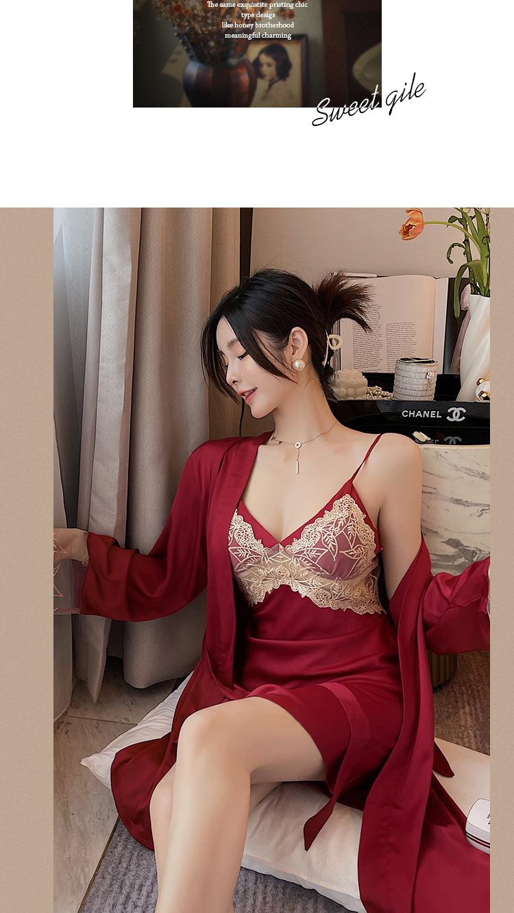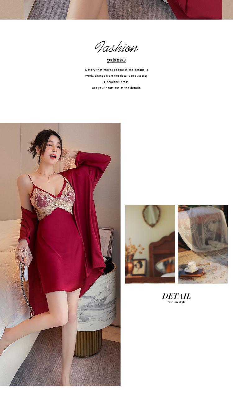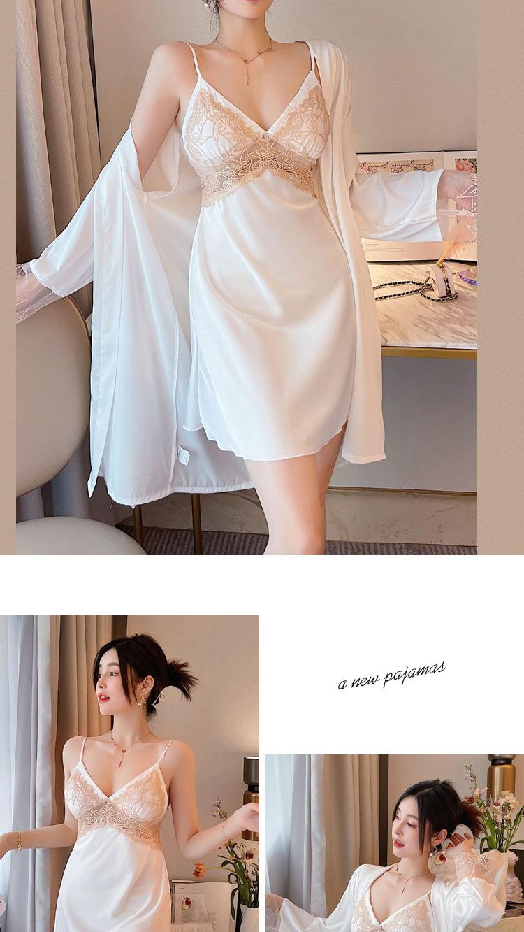 Camisón de Encaje con Tirantes Tentación Verano Tipo Seda Sexy Pijama Camisón de Mujer de Alta Gama con Copas Traje