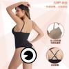 Body de una pieza con corsé en forma de T, con tirantes y espalda descubierta, popular en Europa y América para mujeres.