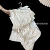 Pijamas 2025 Nuevo Verano Seda de Hielo de Alta Gama Estilo Tinta de Montaña Seda Manga Corta Shorts Ropa de Casa para Mujer Venta al por Mayor