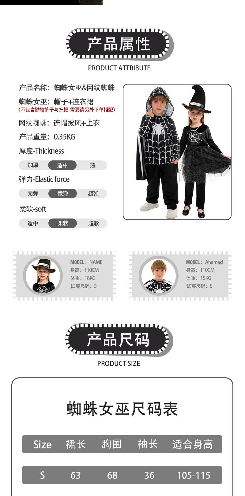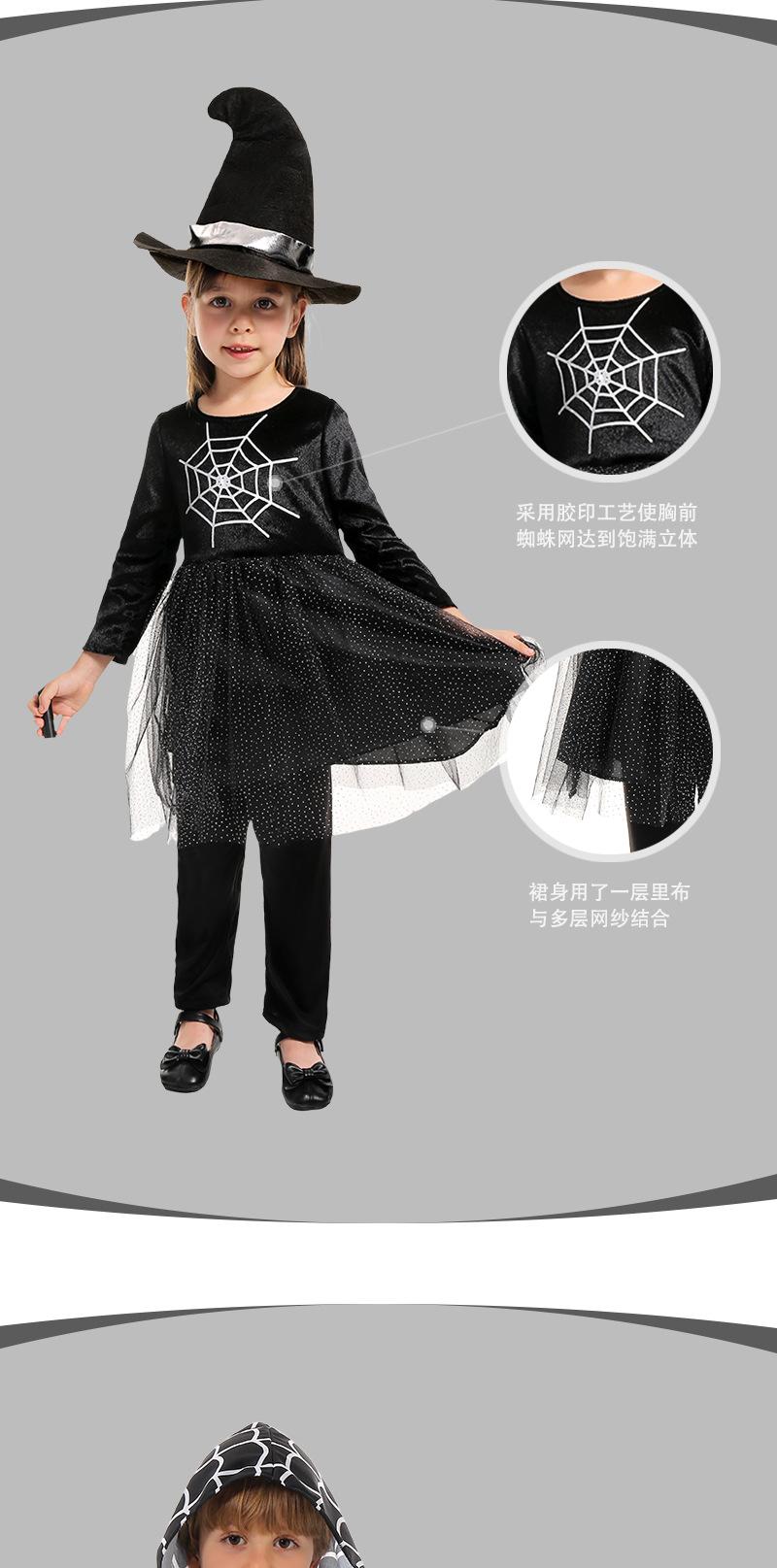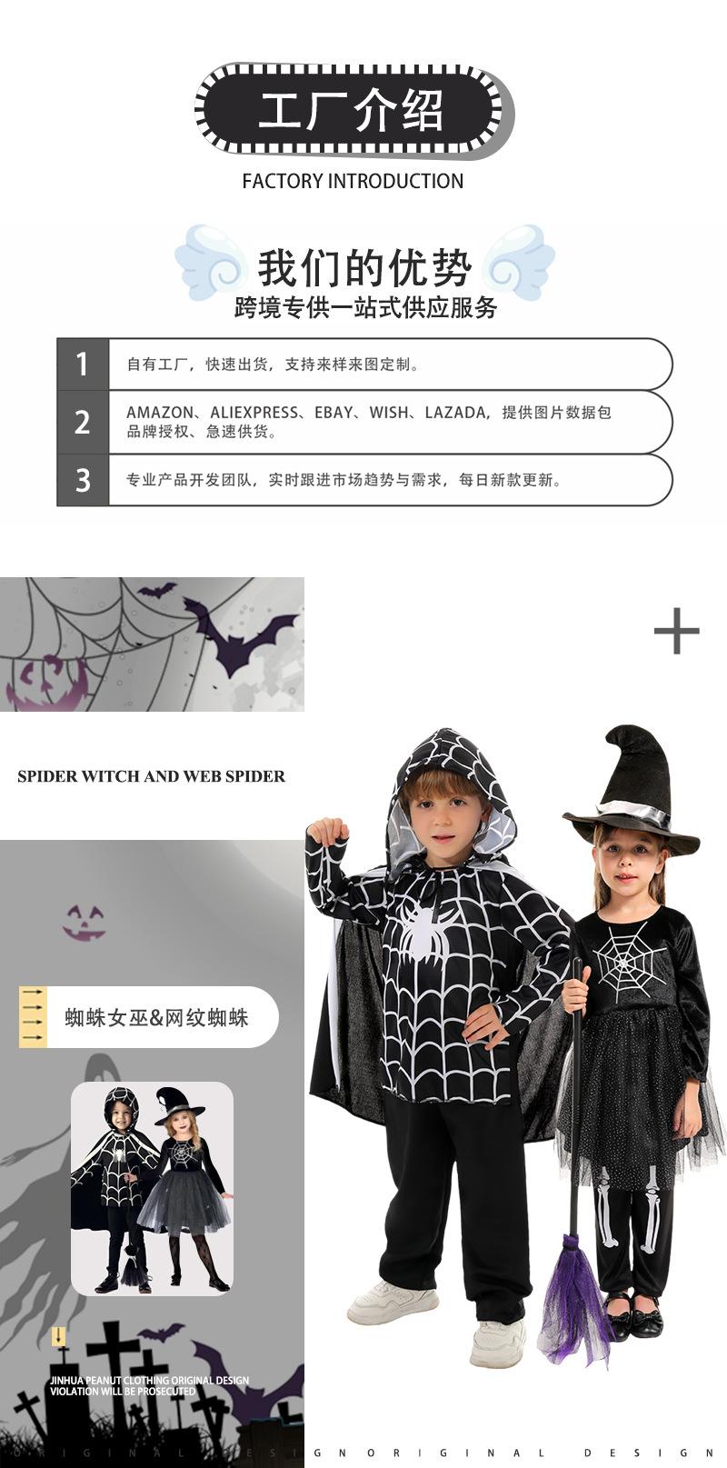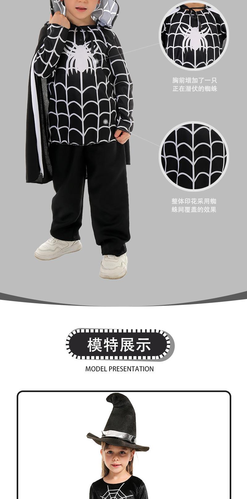 Disfraz de bruja para Halloween, disfraz de cosplay para niños, capa con estampado de araña, disfraz de actuación para jardín de infantes