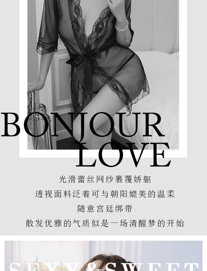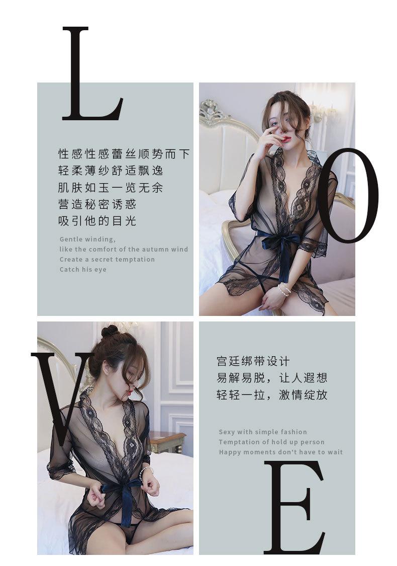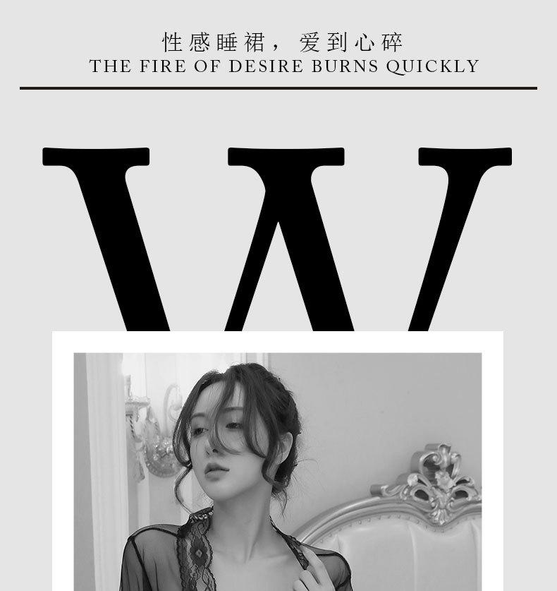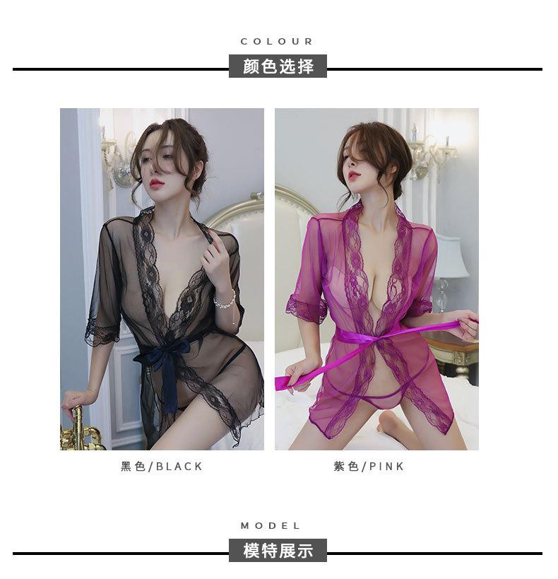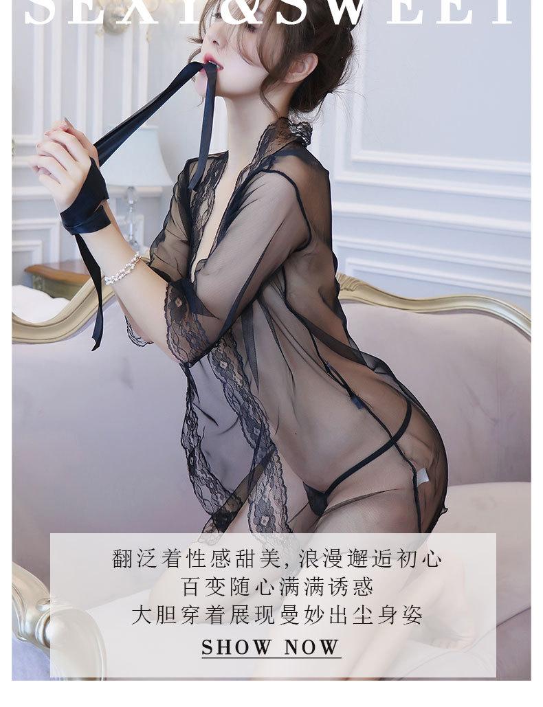Lencería Sexy para Noche Larga Bata Sexy para Mujer Encaje Malla Pijama Transparente Tentación Ropa 1060