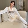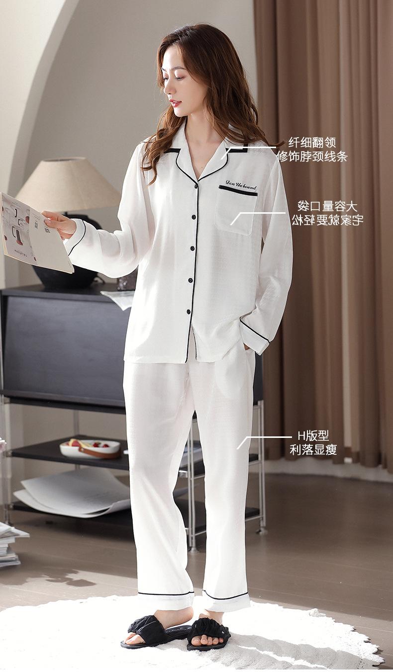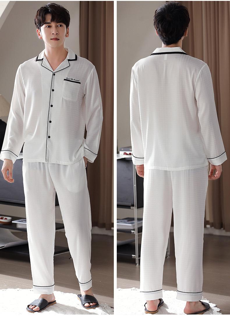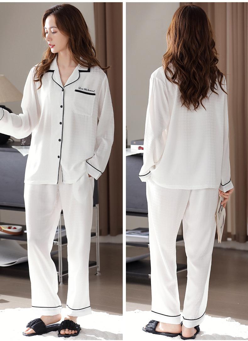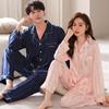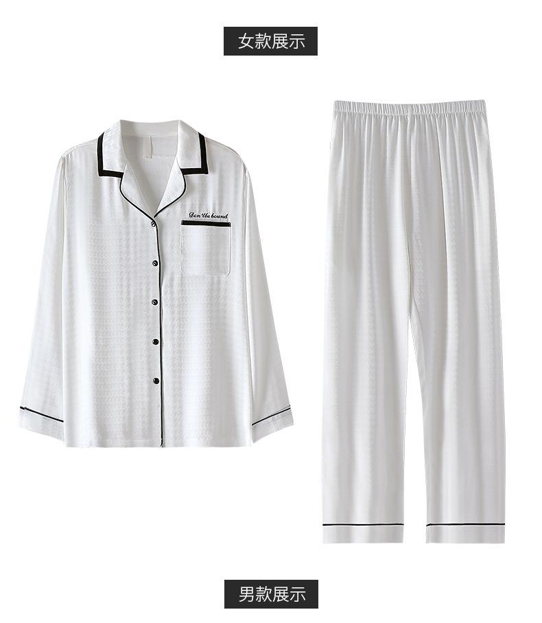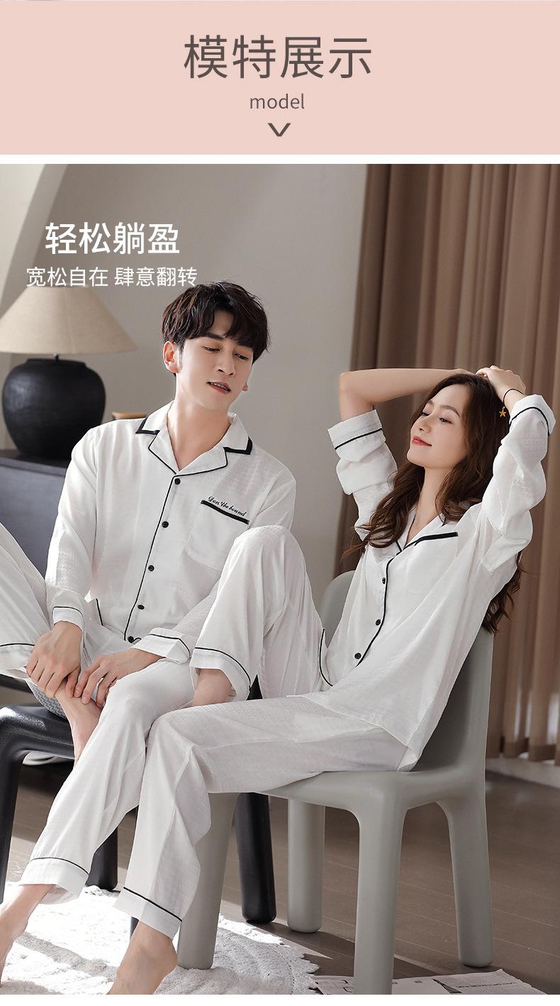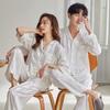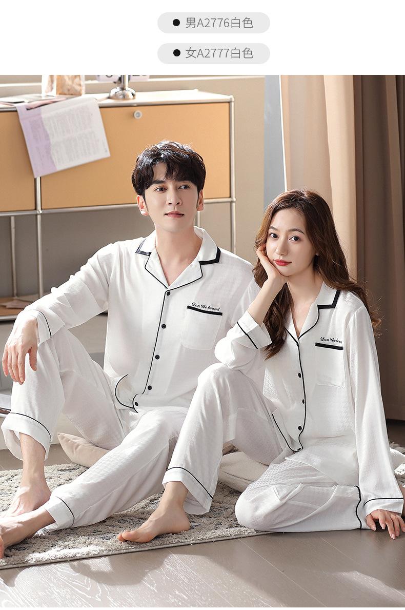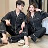 Pijamas de pareja de primavera y otoño, de satén de seda helada, pantalones de manga larga, ropa informal coreana cómoda de talla grande para el hogar, traje de mujer