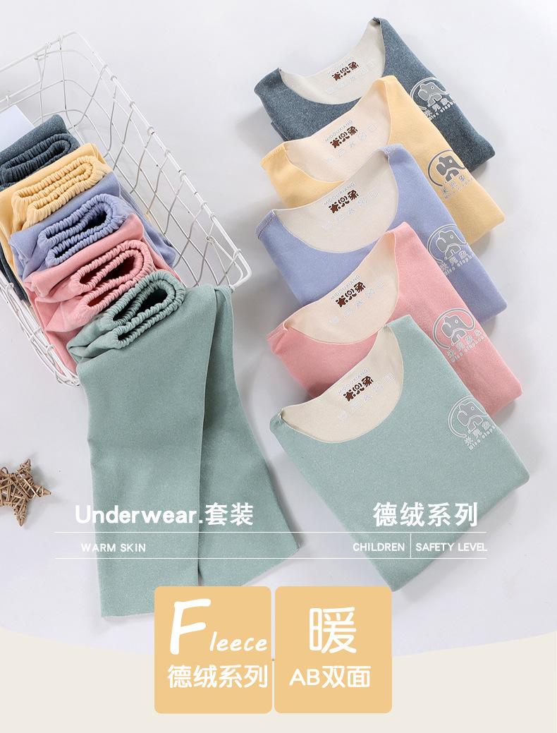 Conjunto de ropa interior de terciopelo sin costuras para niños, copa AB, bebé cálido, ropa de otoño sin costuras, pantalones de otoño, pijamas para niños y niñas, ropa para el hogar