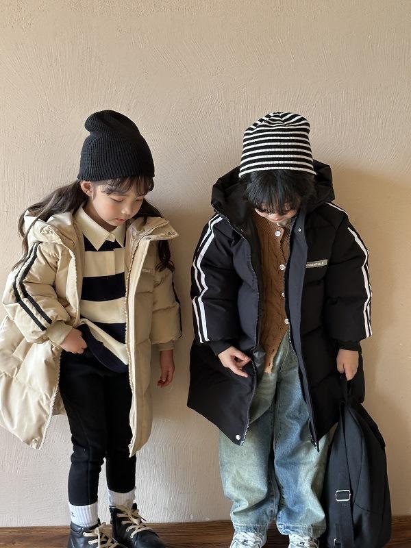 Chaqueta acolchada de algodón cálida y gruesa para niños, estilo coreano de invierno, con capucha, de longitud media, para niños y niñas, venta al por mayor