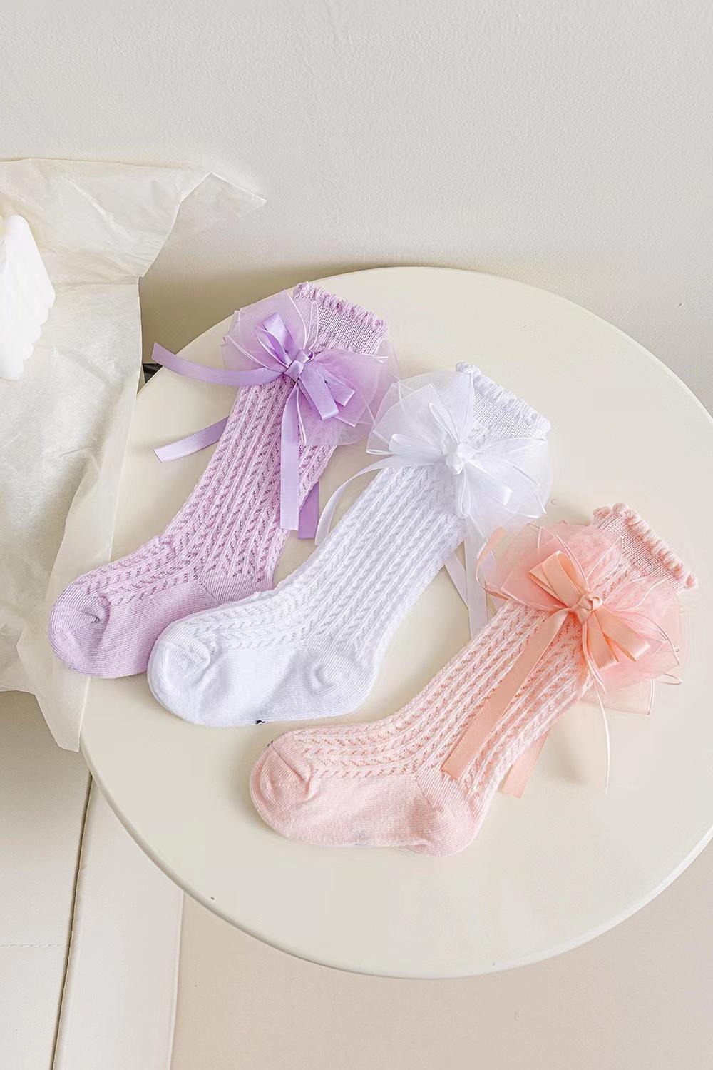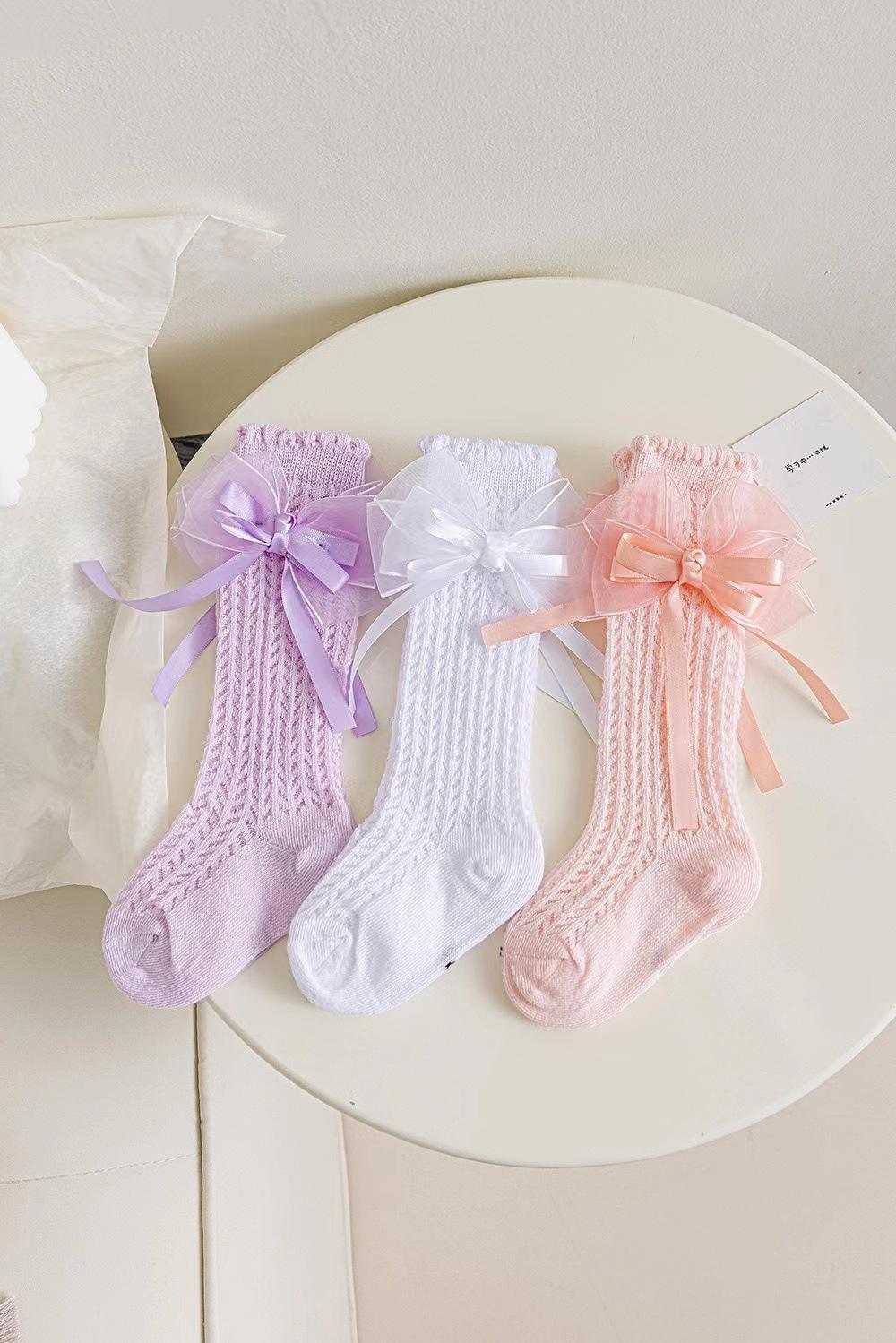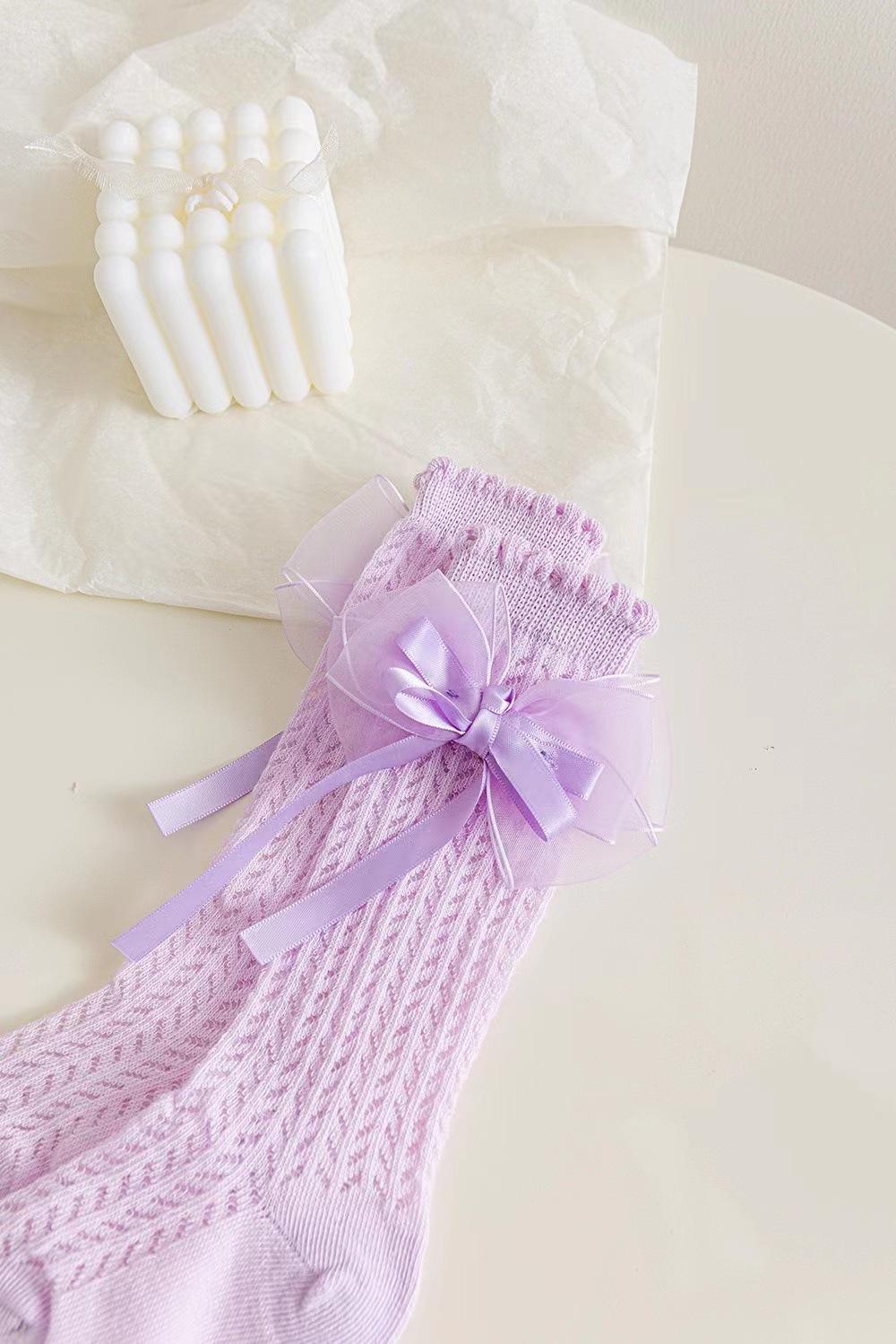 Calcetines de tubo medio con lazo para mujer, de malla de verano, en colores caramelo, para niños