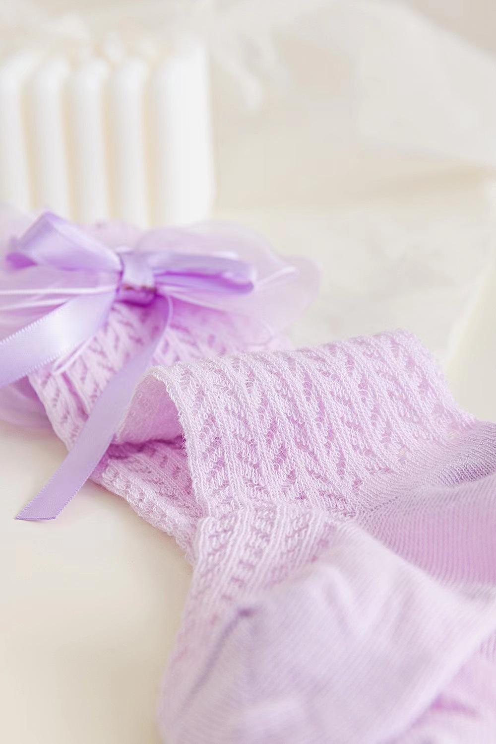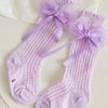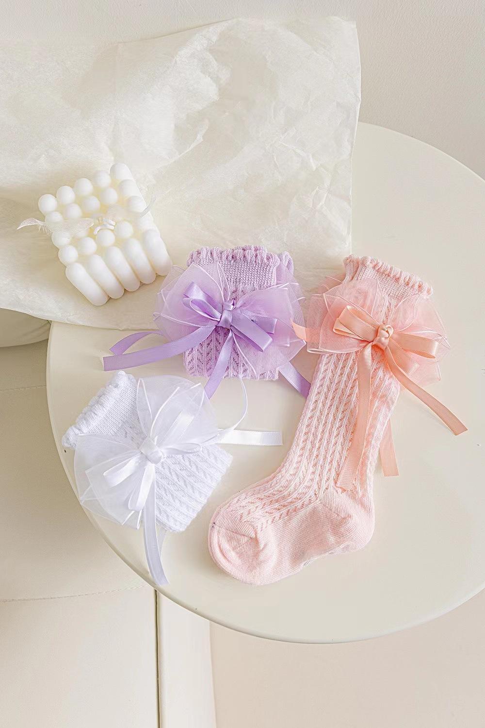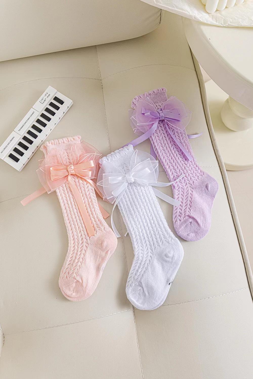 Calcetines de tubo medio con lazo para mujer, de malla de verano, en colores caramelo, para niños