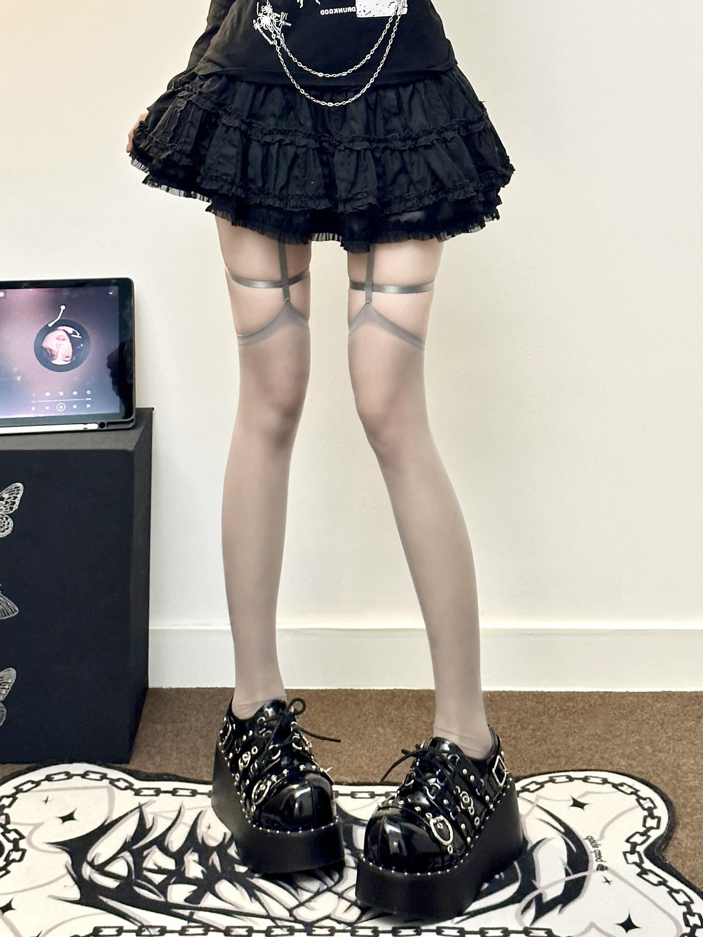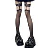 Medias de una pieza con tirantes grises, calcetines sexys de encaje por encima de la rodilla, pantimedias adelgazantes, calcetines hasta el muslo, de seda negra, a la moda.