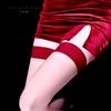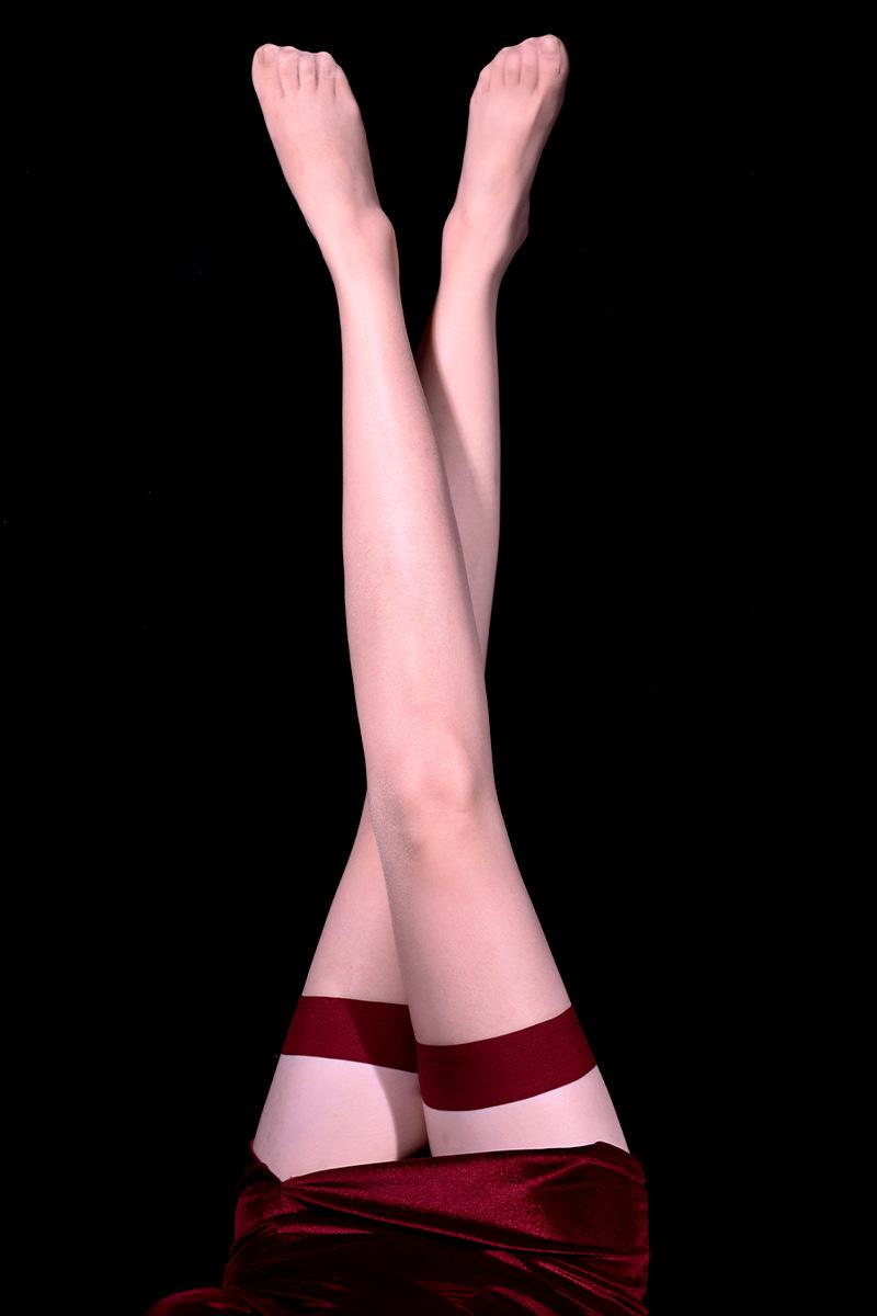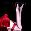 Calcetines de encaje hasta el muslo, ultrafinos, hasta la rodilla, sexys, antideslizantes, transparentes, color carne, con borde rojo.