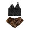 Conjunto de pijama de dos piezas de encaje cómodo y moderno, de seda sintética negra, estilo europeo y americano, venta al por mayor