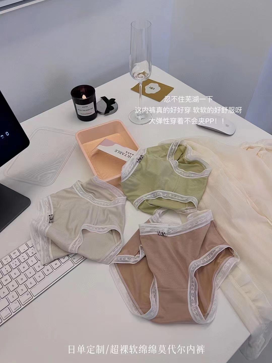 Ropa interior de niña de encaje estilo puro súper suave modal sexy nude antibacterial funda cintura media-alta calzones sin costuras