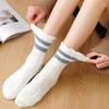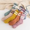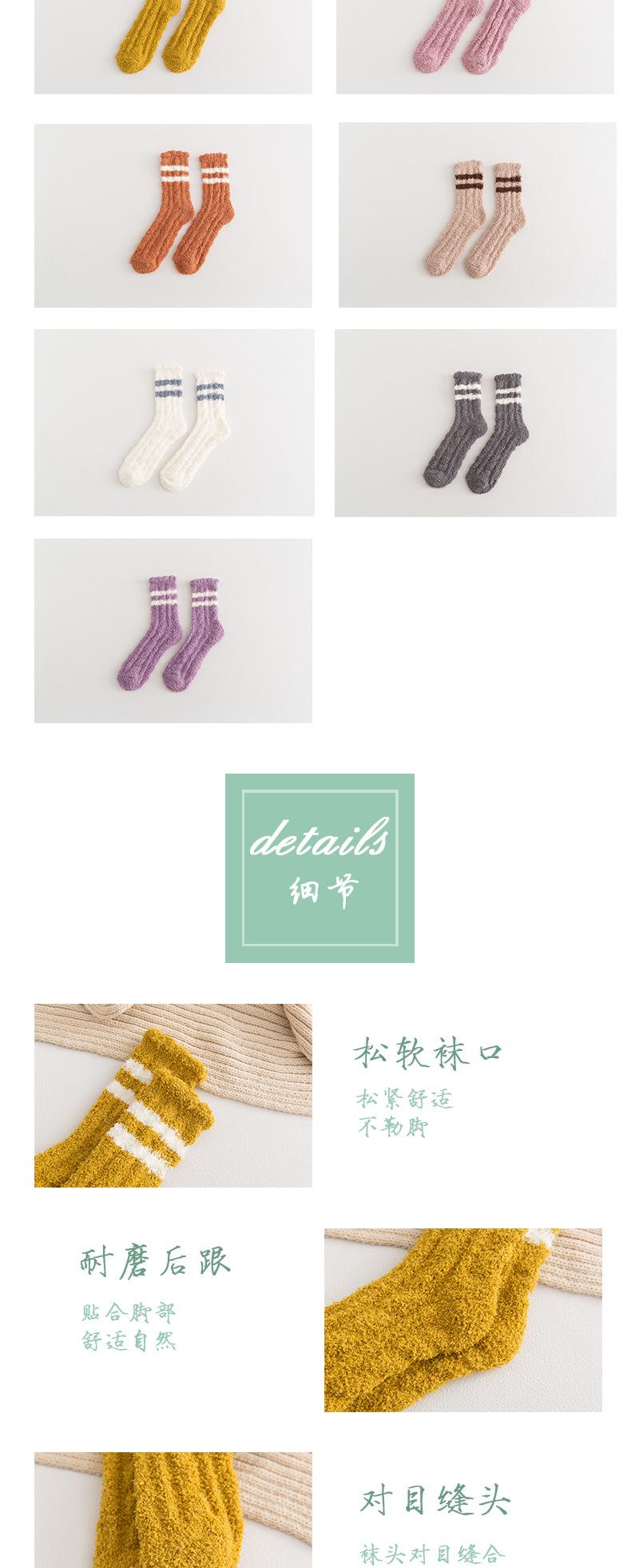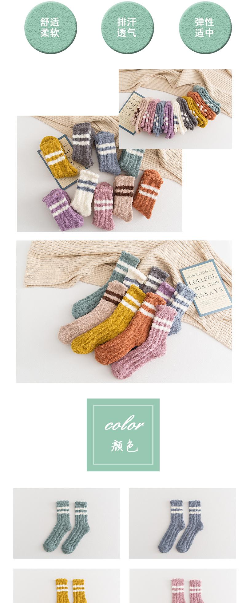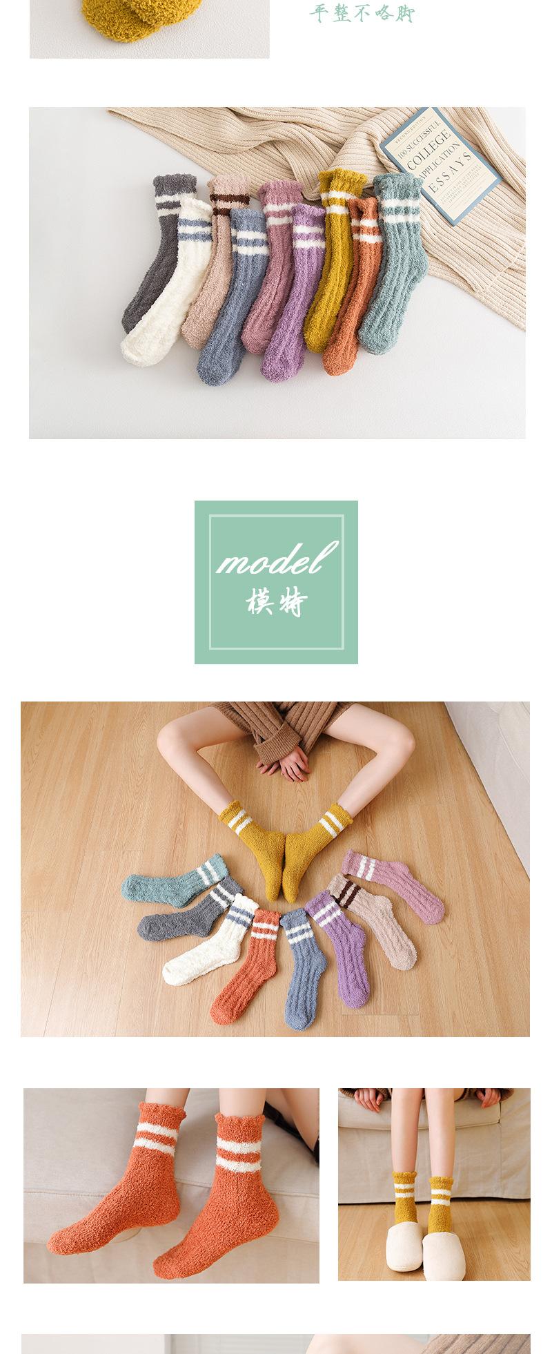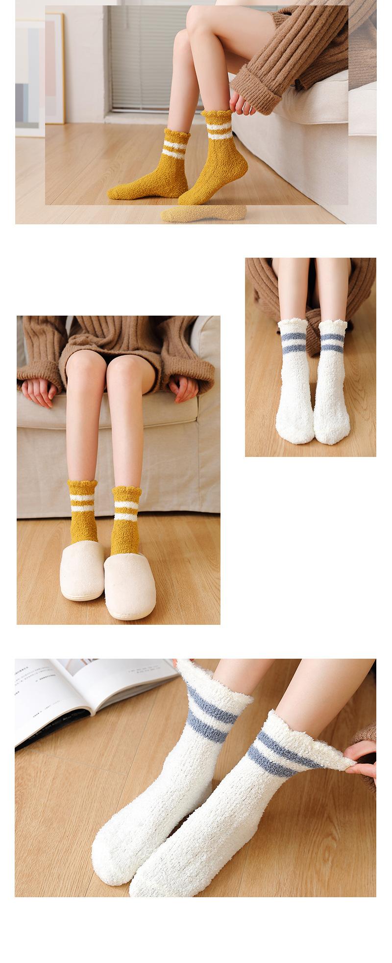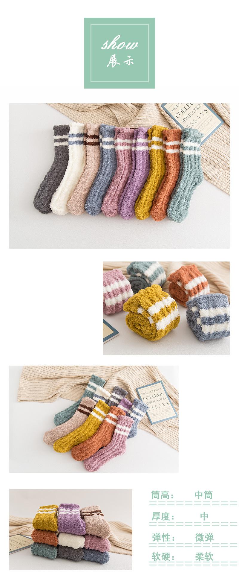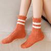 Calcetines de felpa de terciopelo coral para mujer, calcetines de media caña, otoño e invierno, a rayas, color Morandi, calcetines para el suelo, calcetines para dormir para mujer