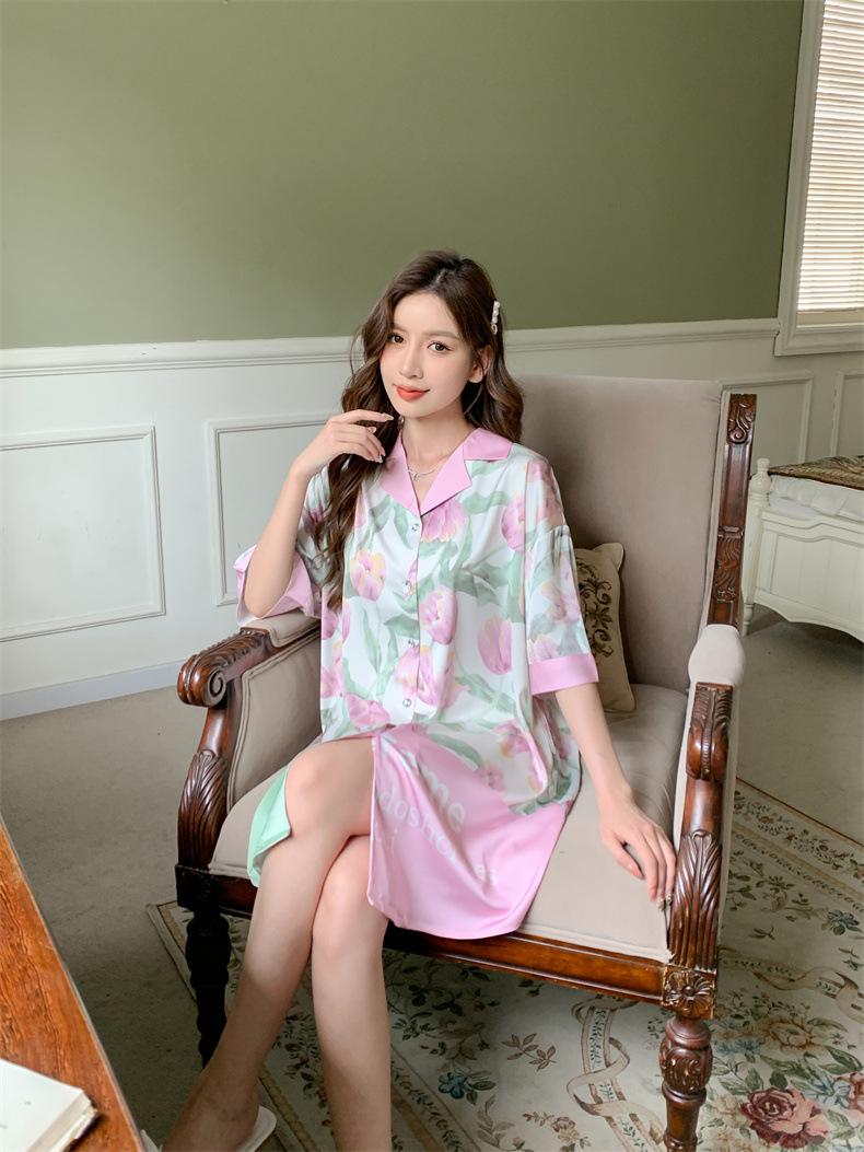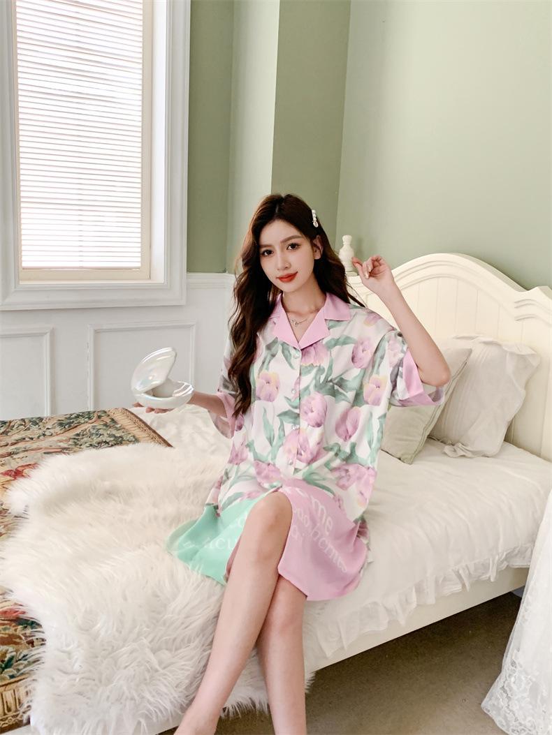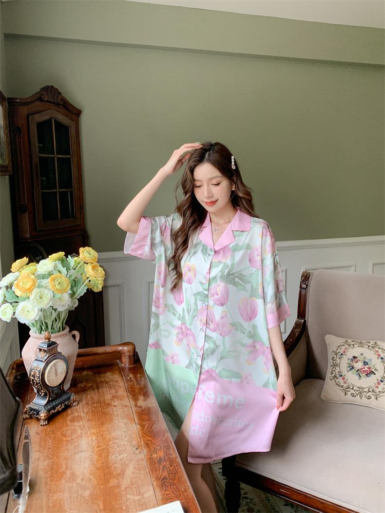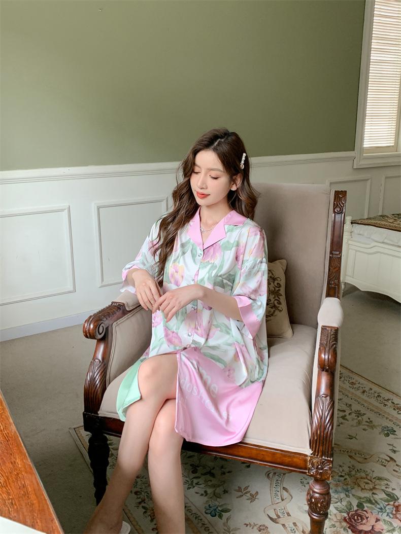 Camisón de seda de hielo para mujer, nuevo cárdigan de verano, estilo boyfriend, talla grande, tulipán, camisón tipo camisa de seda de alta calidad.
