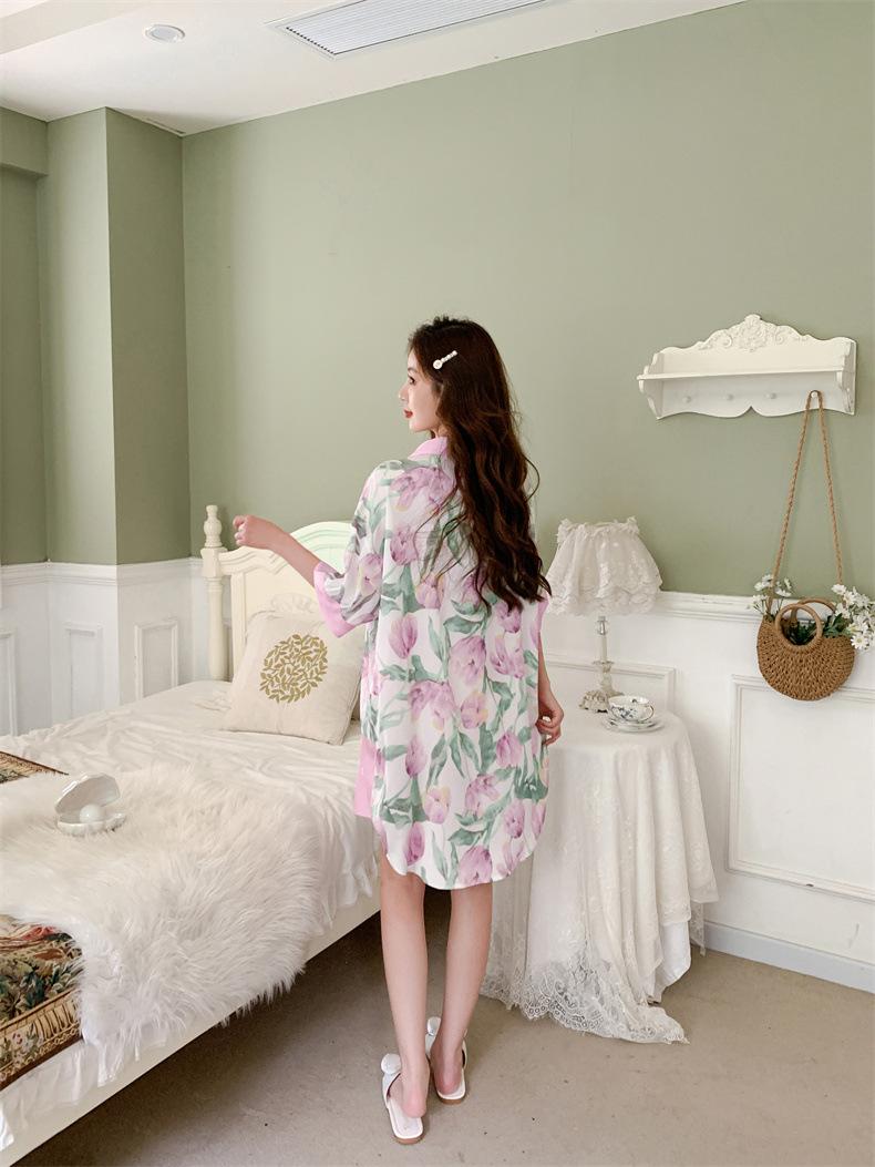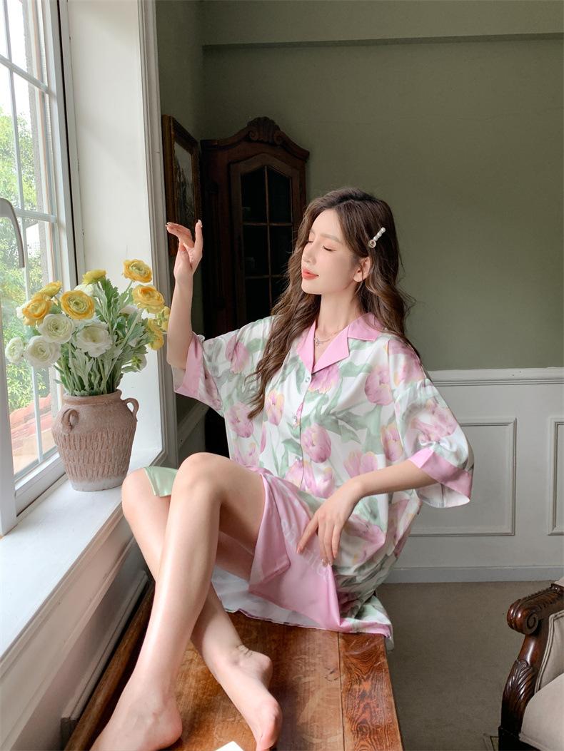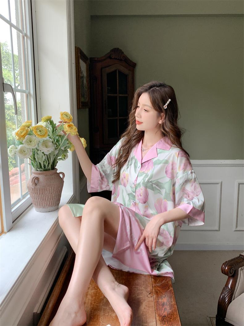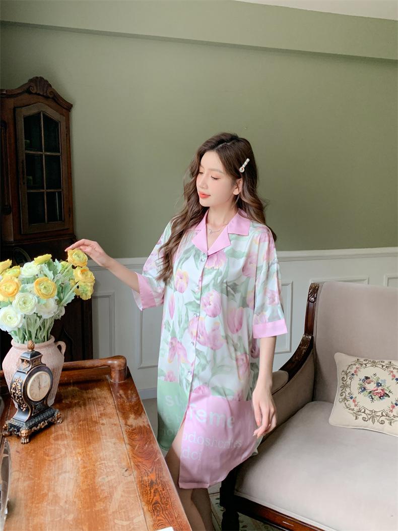 Camisón de seda de hielo para mujer, nuevo cárdigan de verano, estilo boyfriend, talla grande, tulipán, camisón tipo camisa de seda de alta calidad.