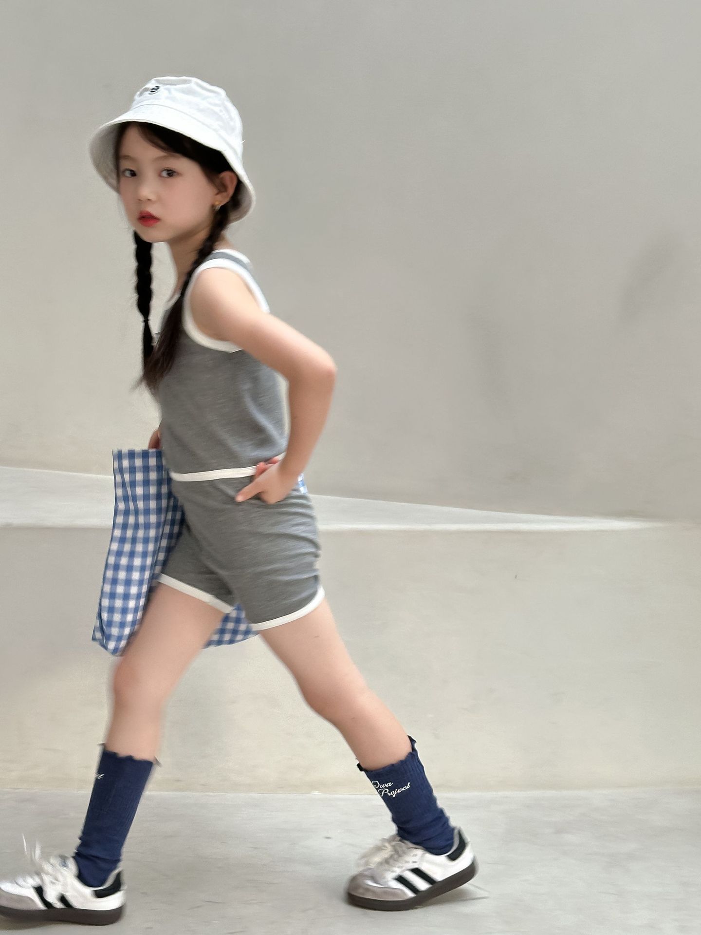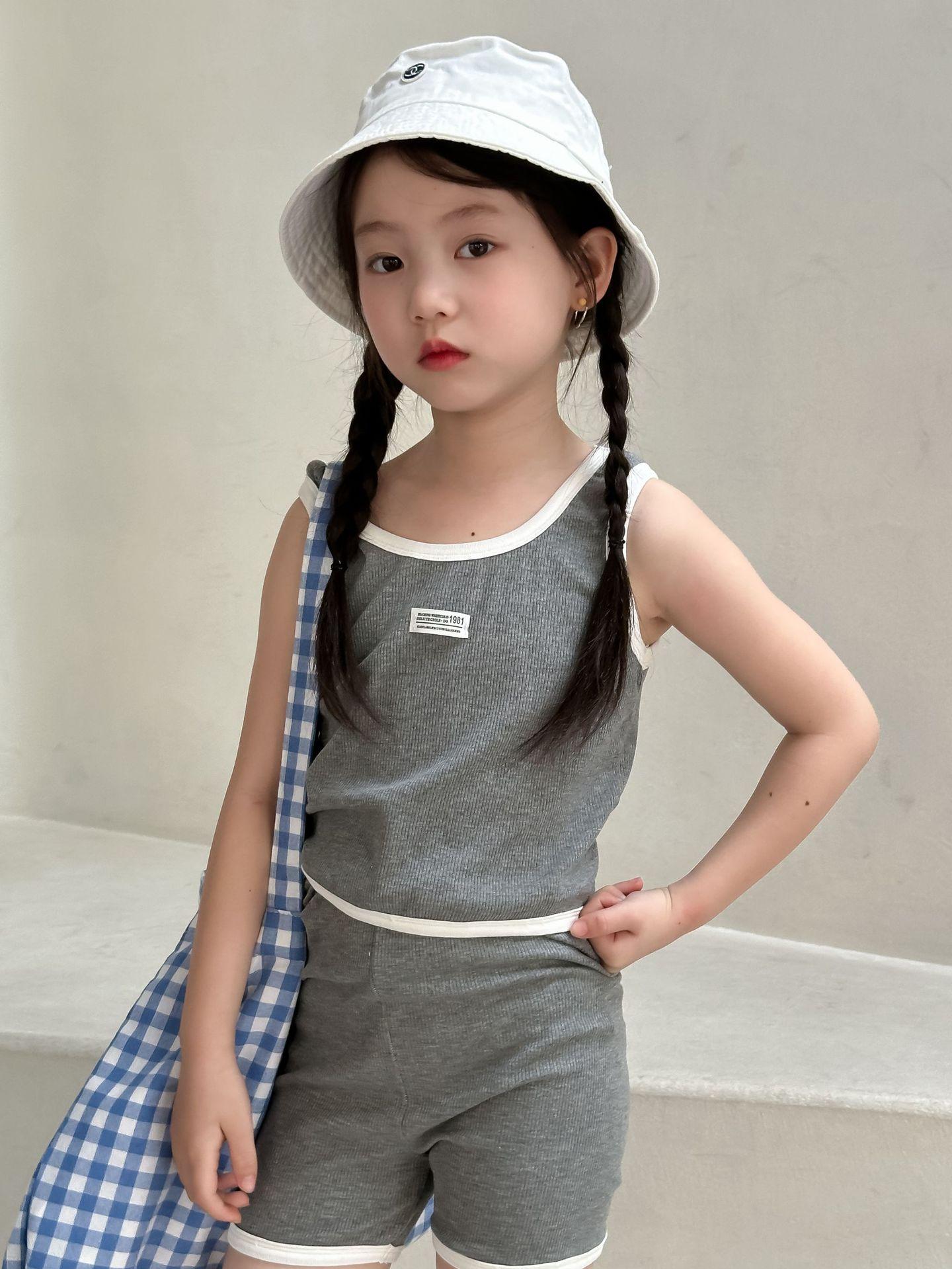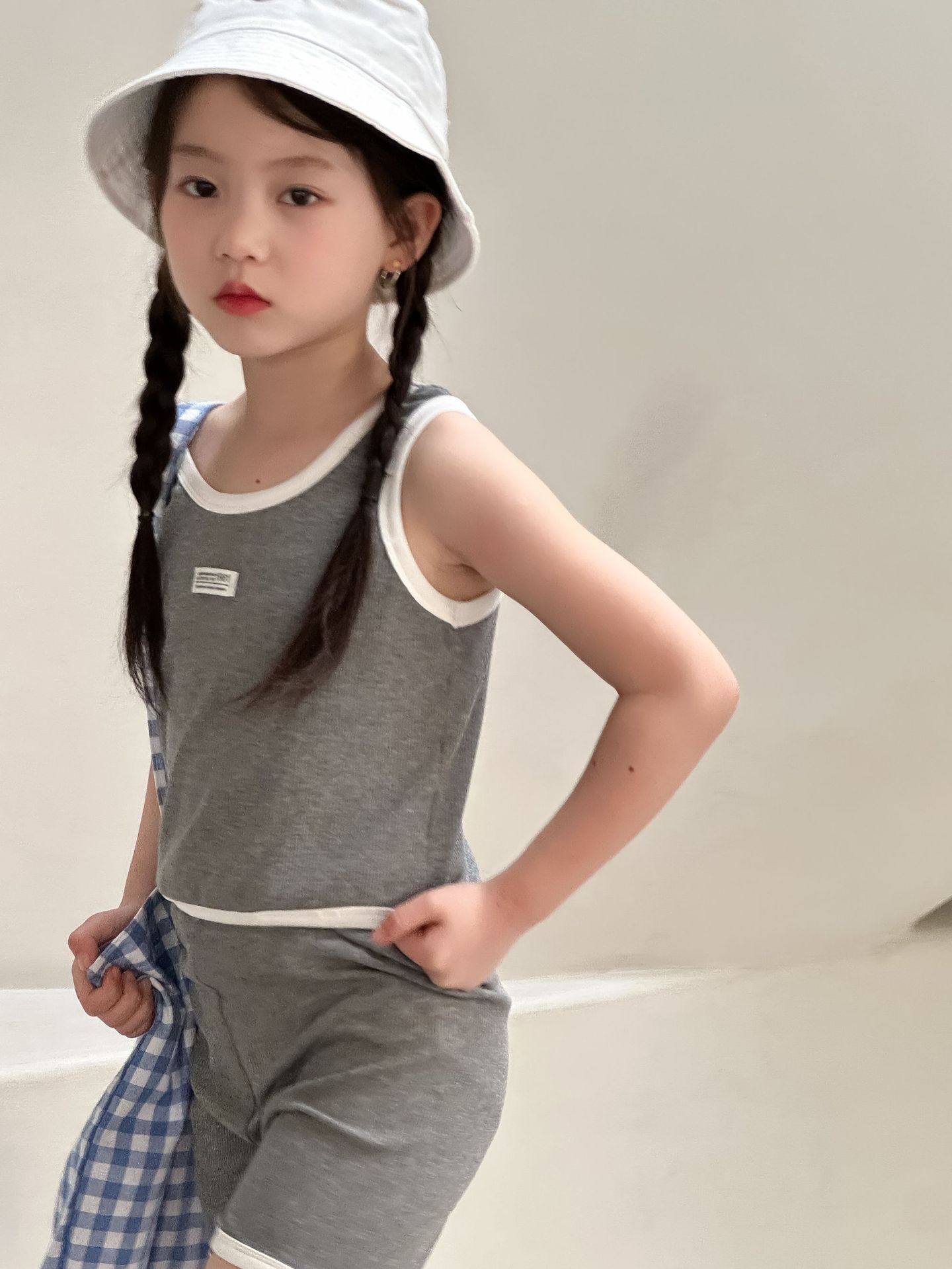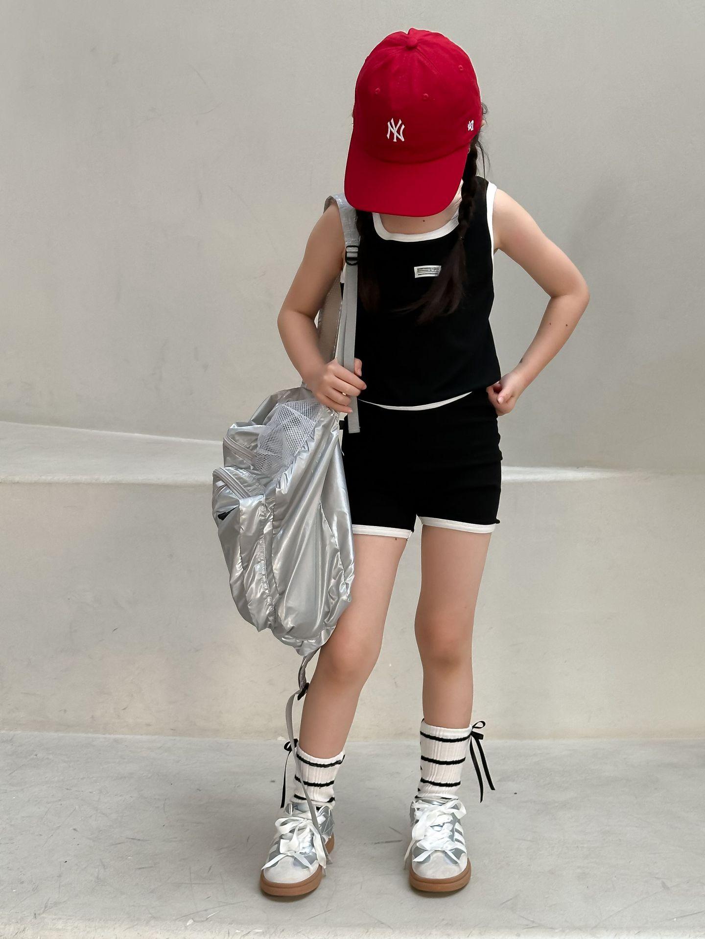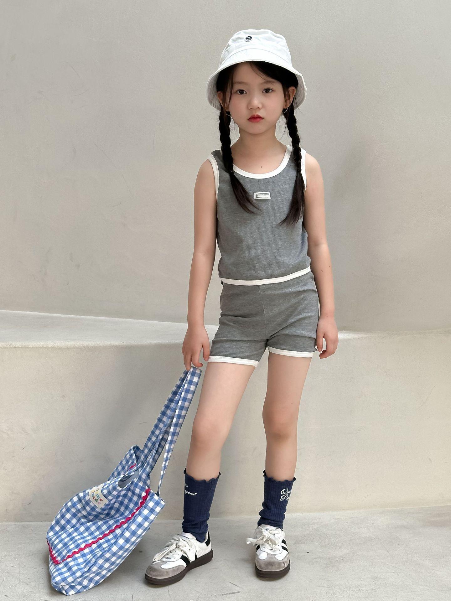 Verano 2025 Chaleco de Punto Americano Elástico para Niña, Traje de Shorts Ajustados con Bloque de Color, Conjunto Deportivo Casual de Dos Piezas para Mujer