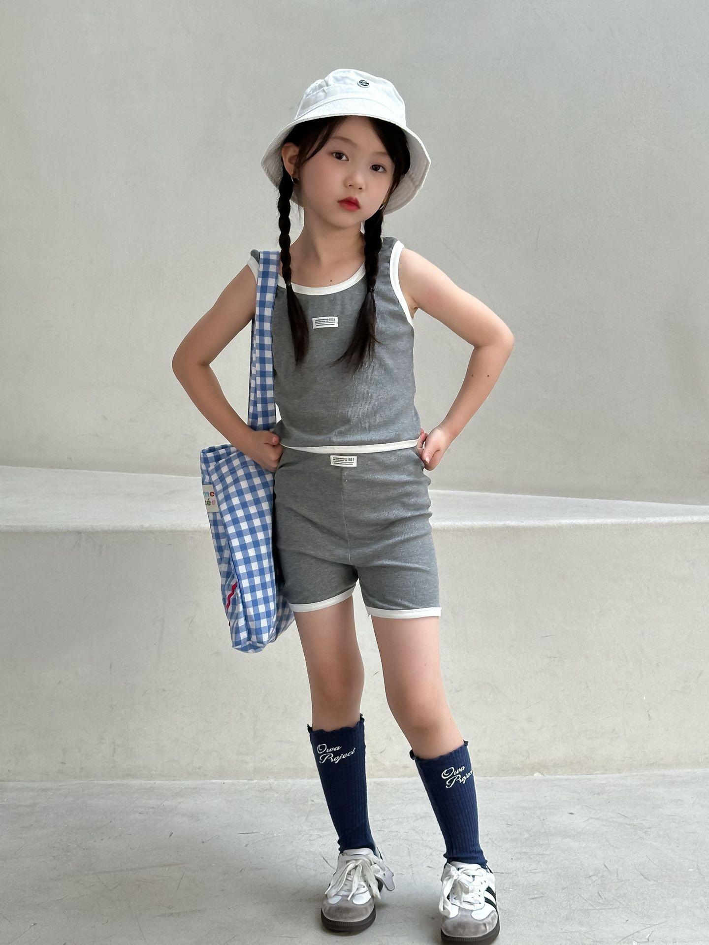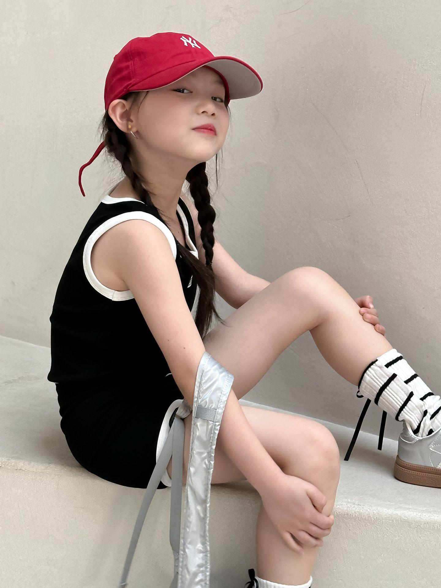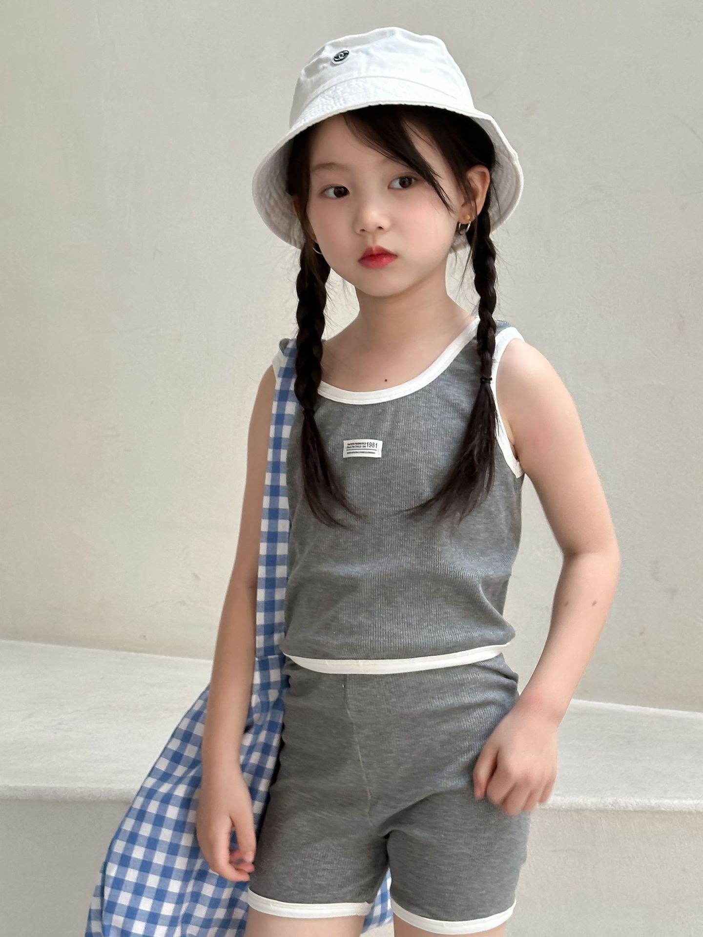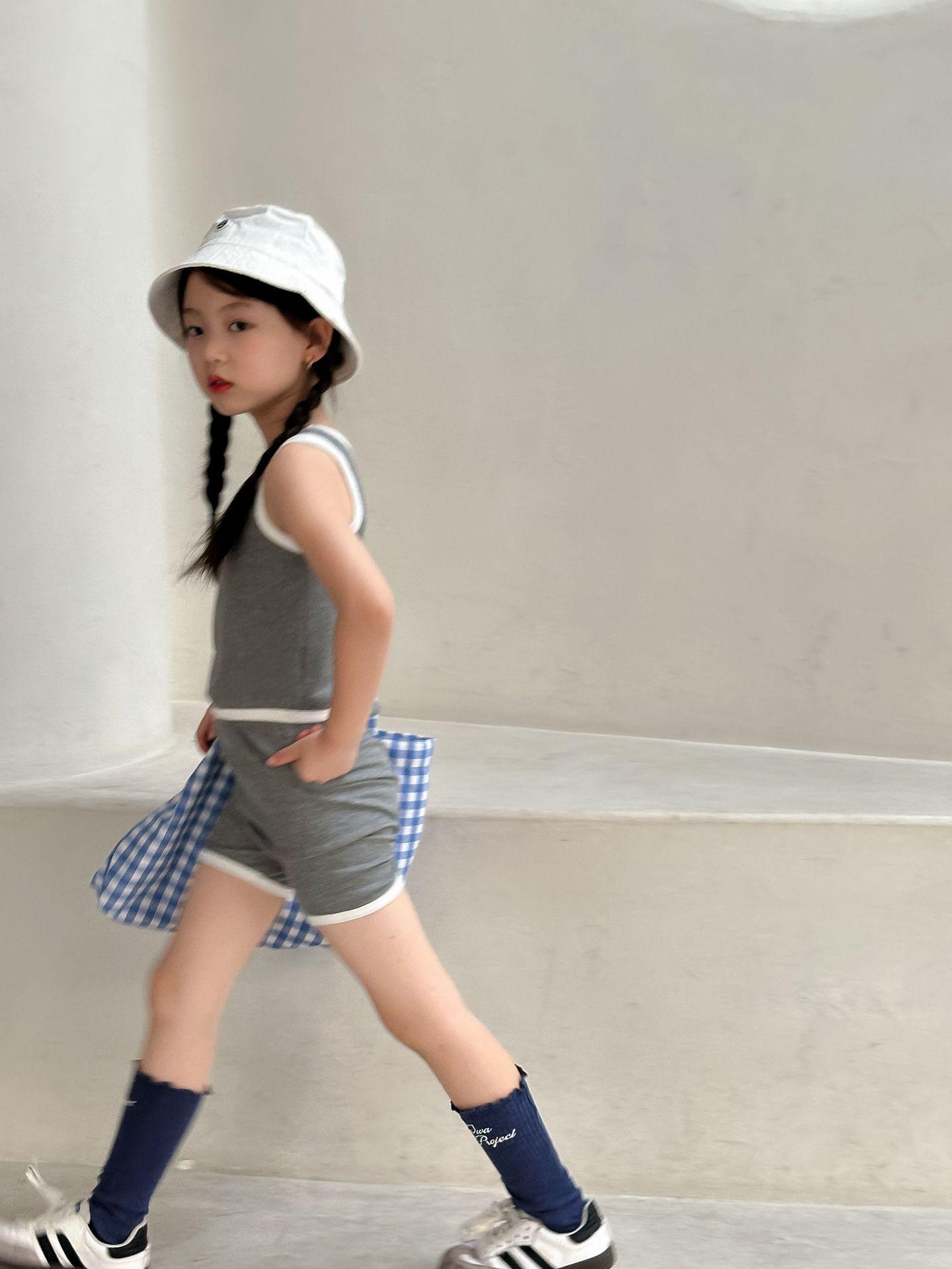 Verano 2025 Chaleco de Punto Americano Elástico para Niña, Traje de Shorts Ajustados con Bloque de Color, Conjunto Deportivo Casual de Dos Piezas para Mujer