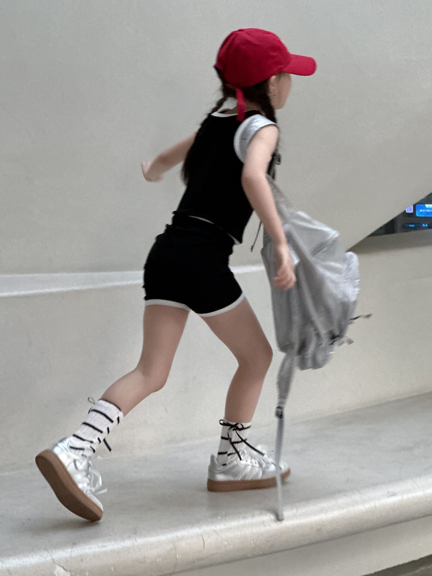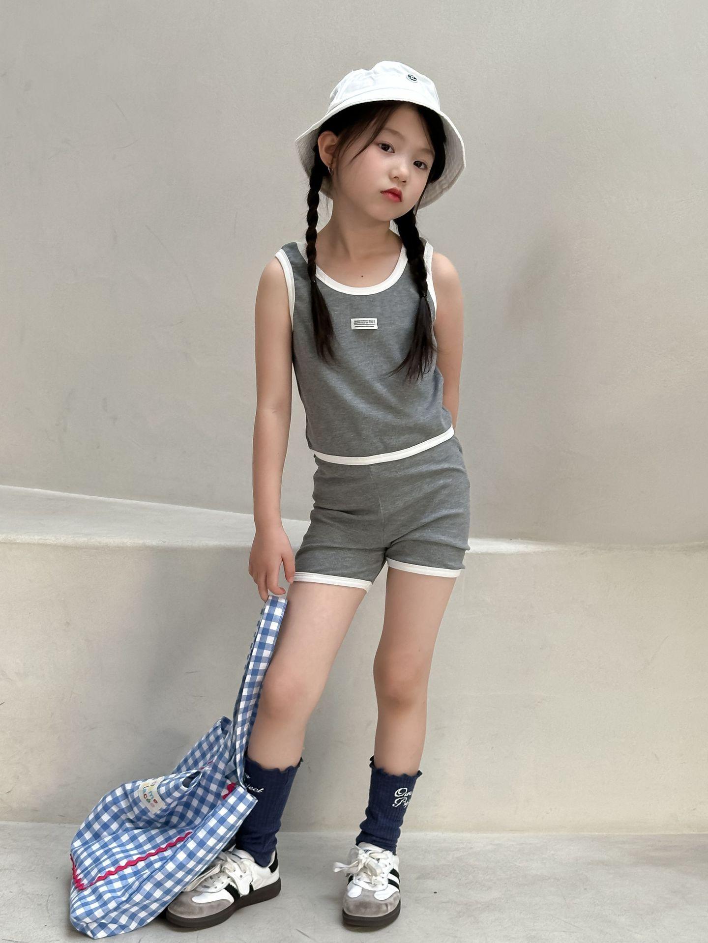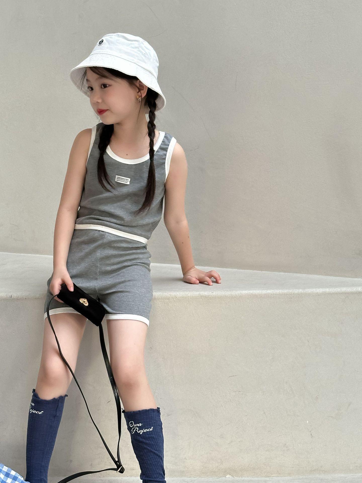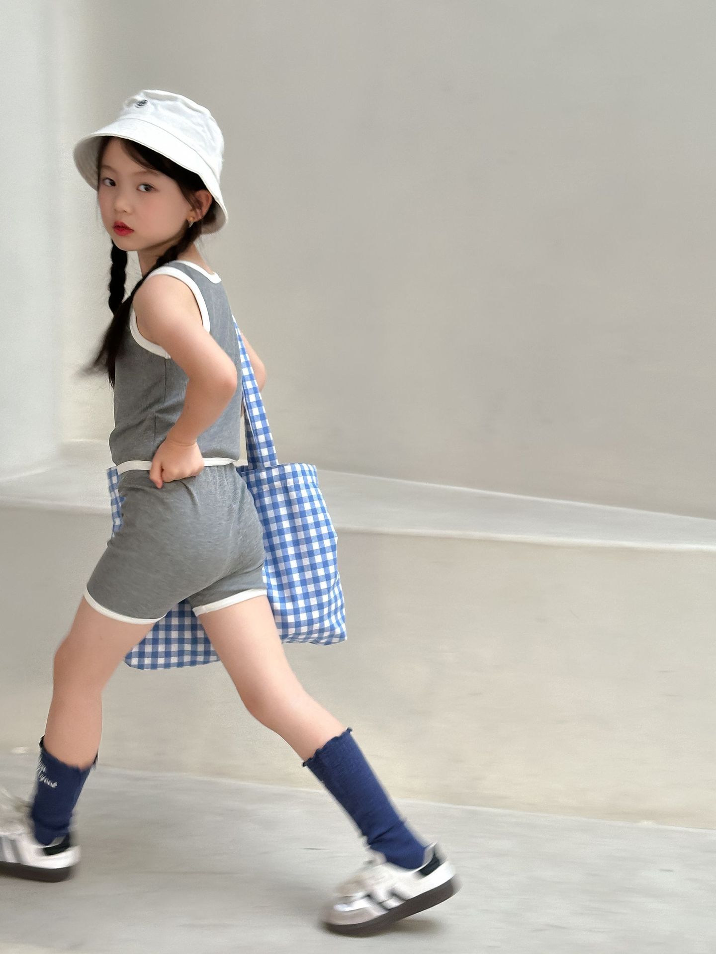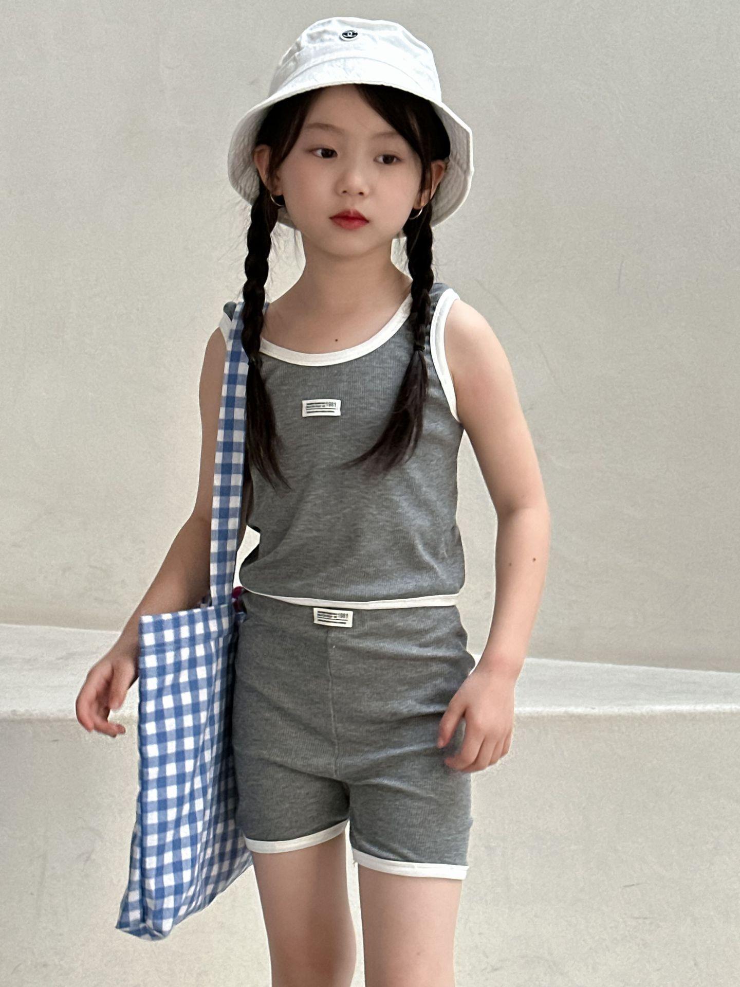 Verano 2025 Chaleco de Punto Americano Elástico para Niña, Traje de Shorts Ajustados con Bloque de Color, Conjunto Deportivo Casual de Dos Piezas para Mujer