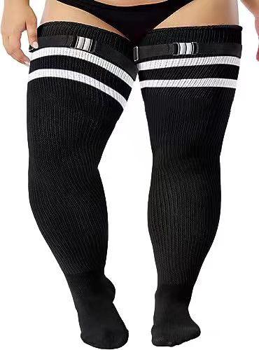 Calcetines hasta la rodilla supertalla nuevos europeos y americanos calcetines de lana calcetines con tira lana plus talla grande antideslizantes comercio exterior calcetines de mujer acrílico transfronterizo