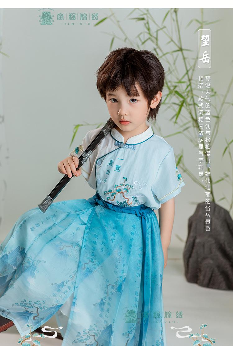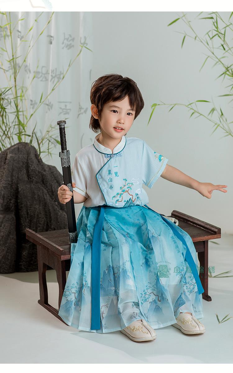 Verano Nuevo Elementos Chinos para Niños Falda Clásica de Mil Caracteres Estilo Caballo para Niños Medianos y Pequeños Hanfu Procesamiento Personalización