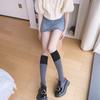 Calcetines de moda con estilo Pure Desire, calcetines de colores a juego, calcetines de tubo medio con costuras negras y grises, calcetines negros de media pierna hasta la pantorrilla JK.
