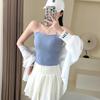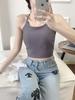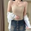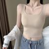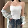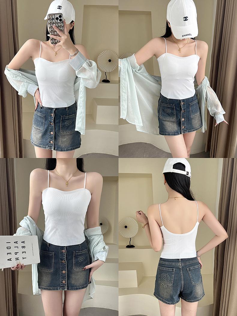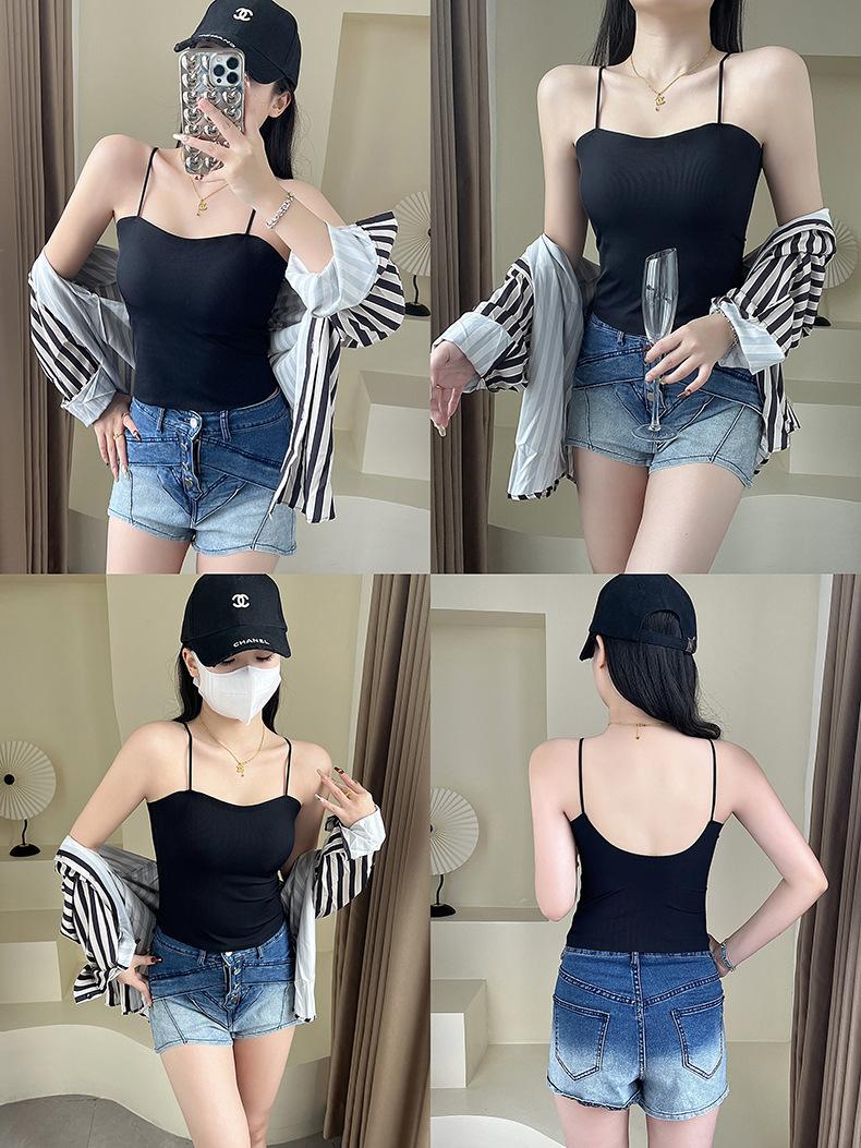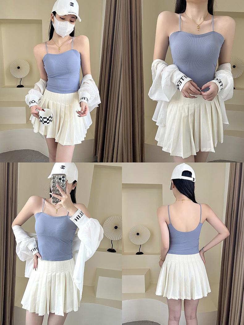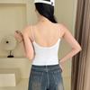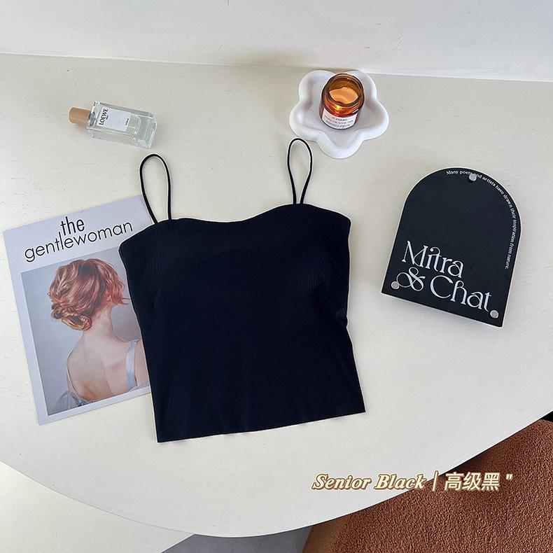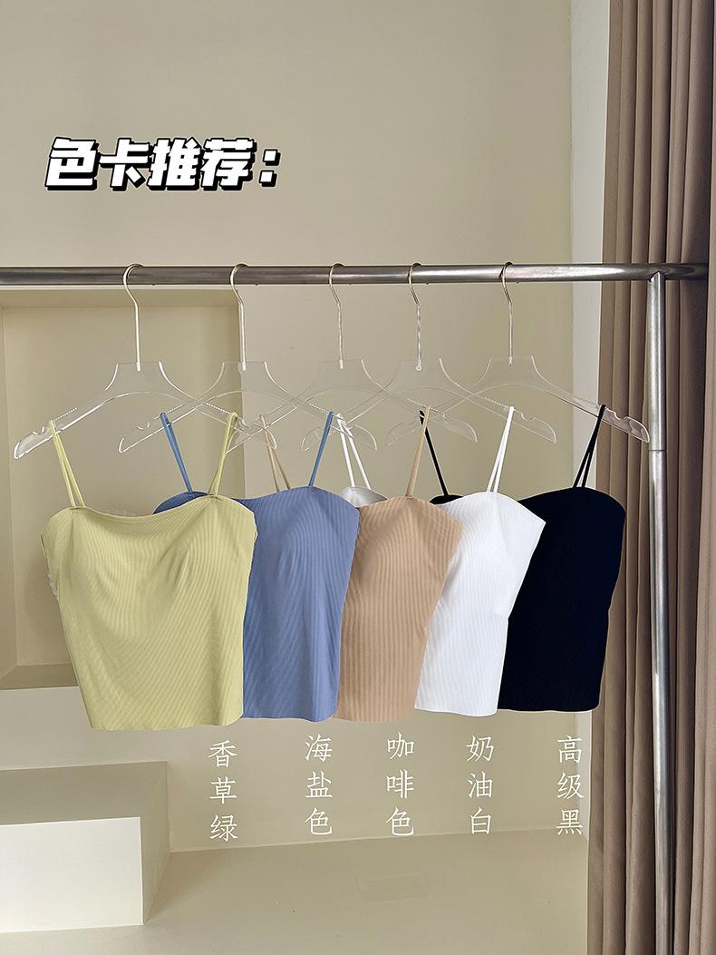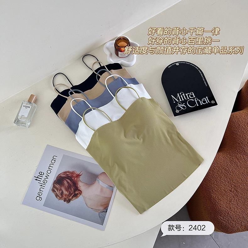 Camisola de seda de hielo con tirantes finos, sin costuras, con espalda en U y sujetador sin costuras, color liso y sencillo para mujer
