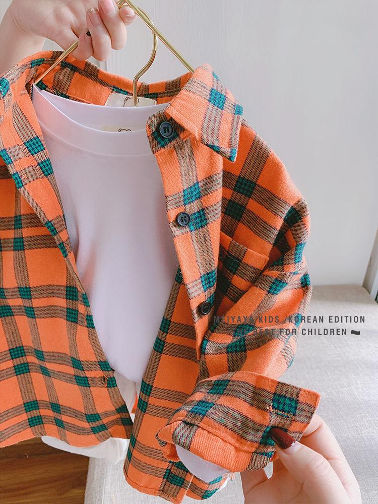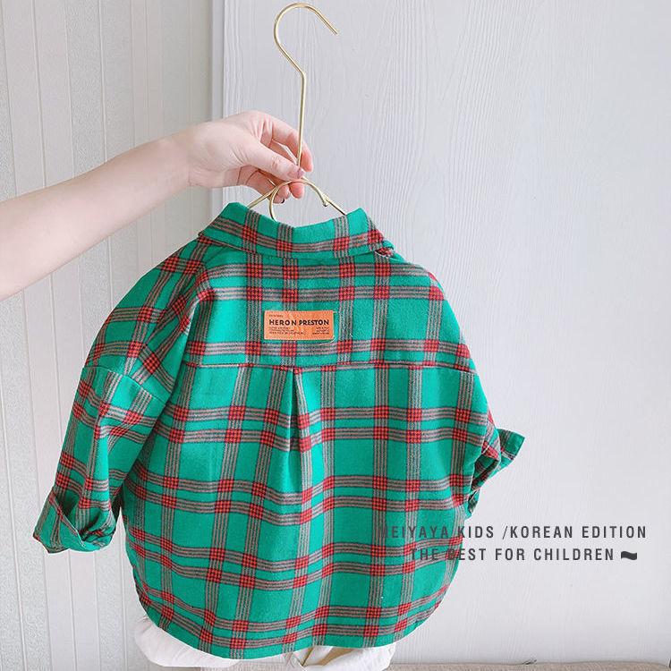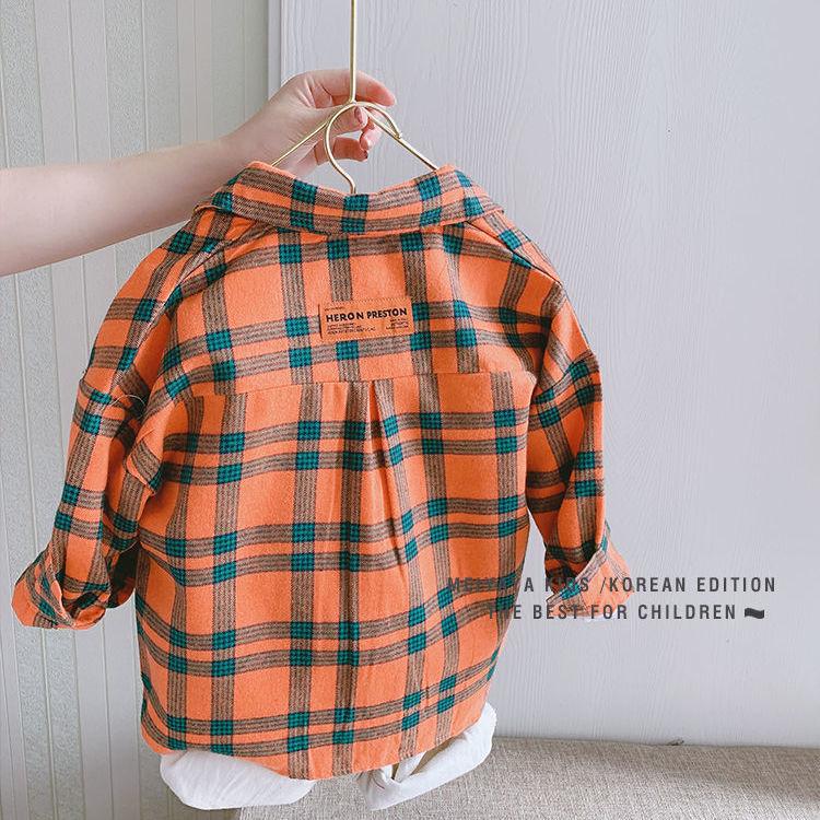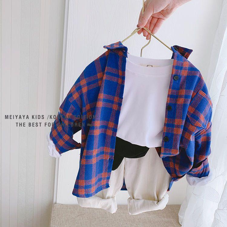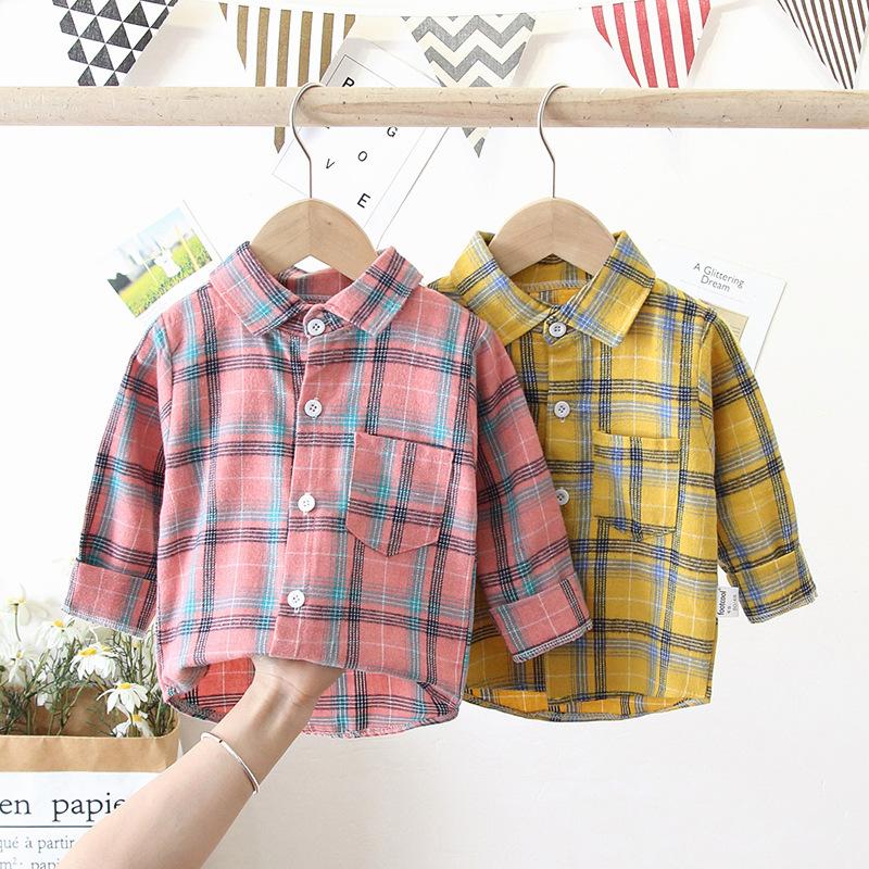 Camisa de Manga Larga para Niño Camisa Infantil Primavera y Otoño Nuevo Estilo Occidental Bebé Niños Camisa a Cuadros Estilo Coreano Ropa Infantil Base