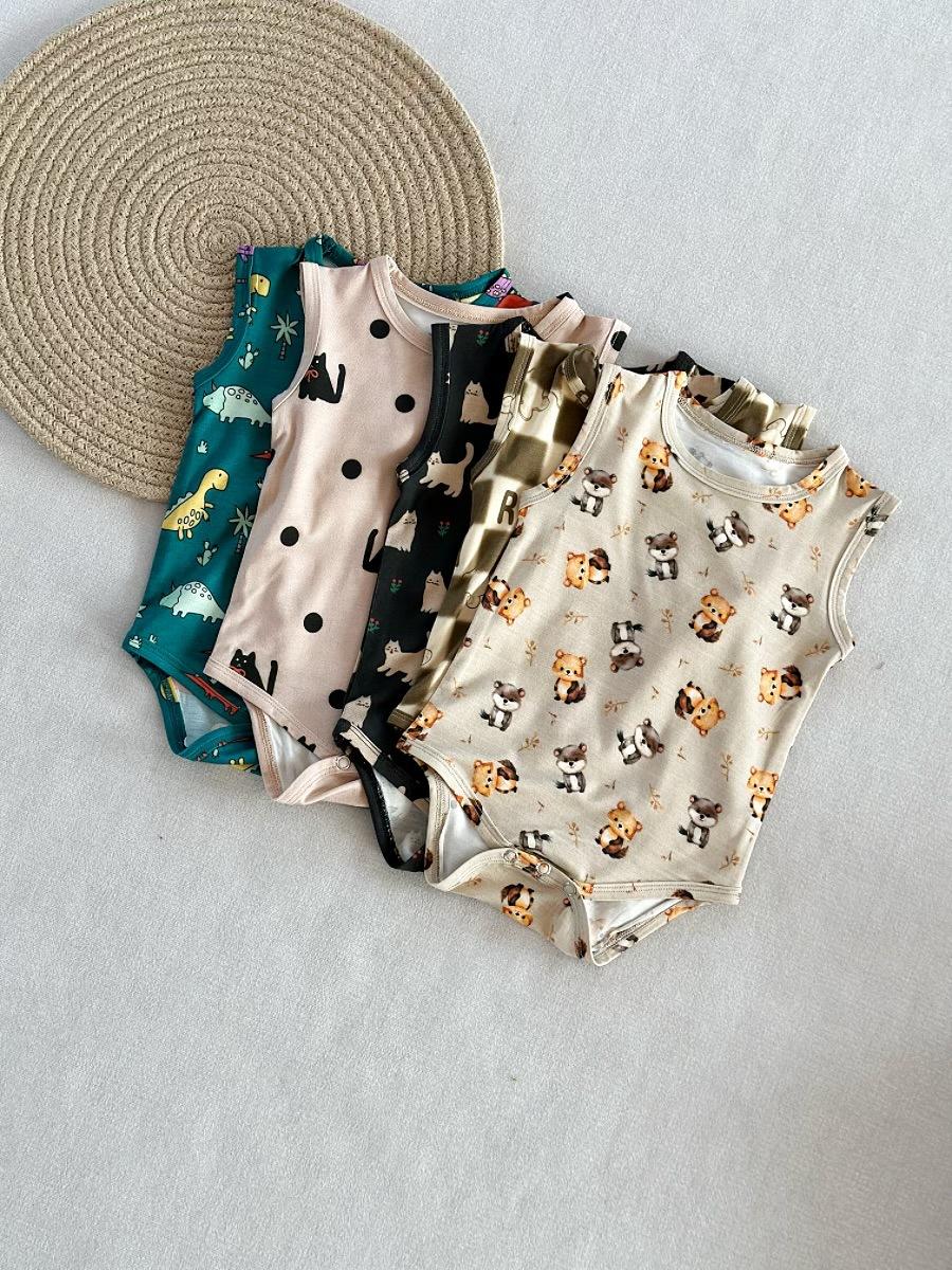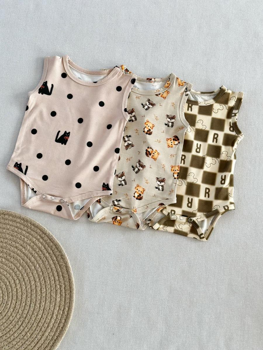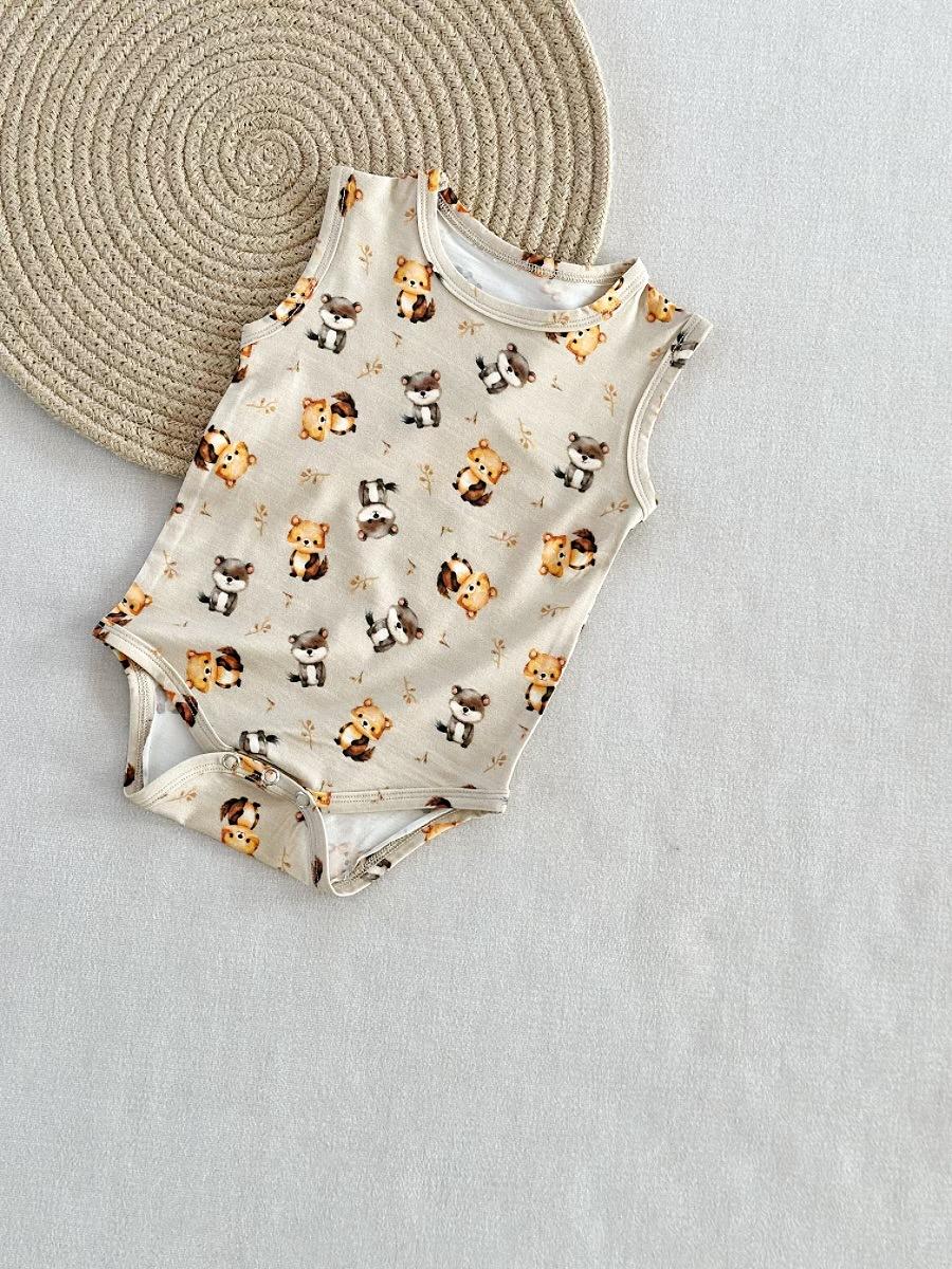 Traje de escalada sin mangas con estampado de dibujos animados de fibra de bambú para bebé, estilo coreano, bonito chaleco fino de verano para recién nacido, bolsa, ropa gruesa