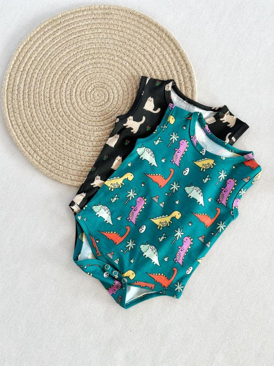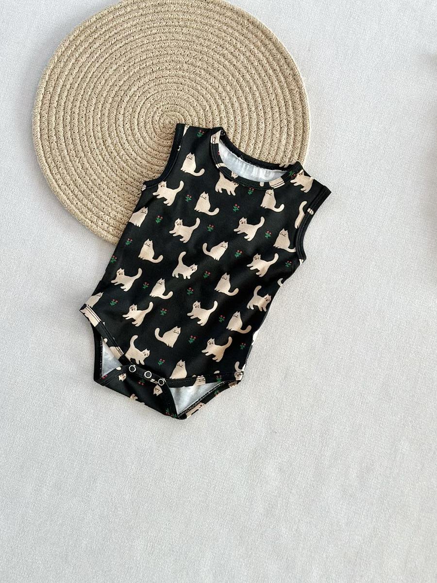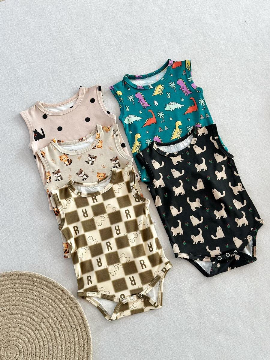 Traje de escalada sin mangas con estampado de dibujos animados de fibra de bambú para bebé, estilo coreano, bonito chaleco fino de verano para recién nacido, bolsa, ropa gruesa