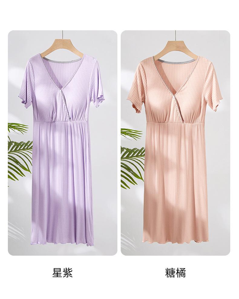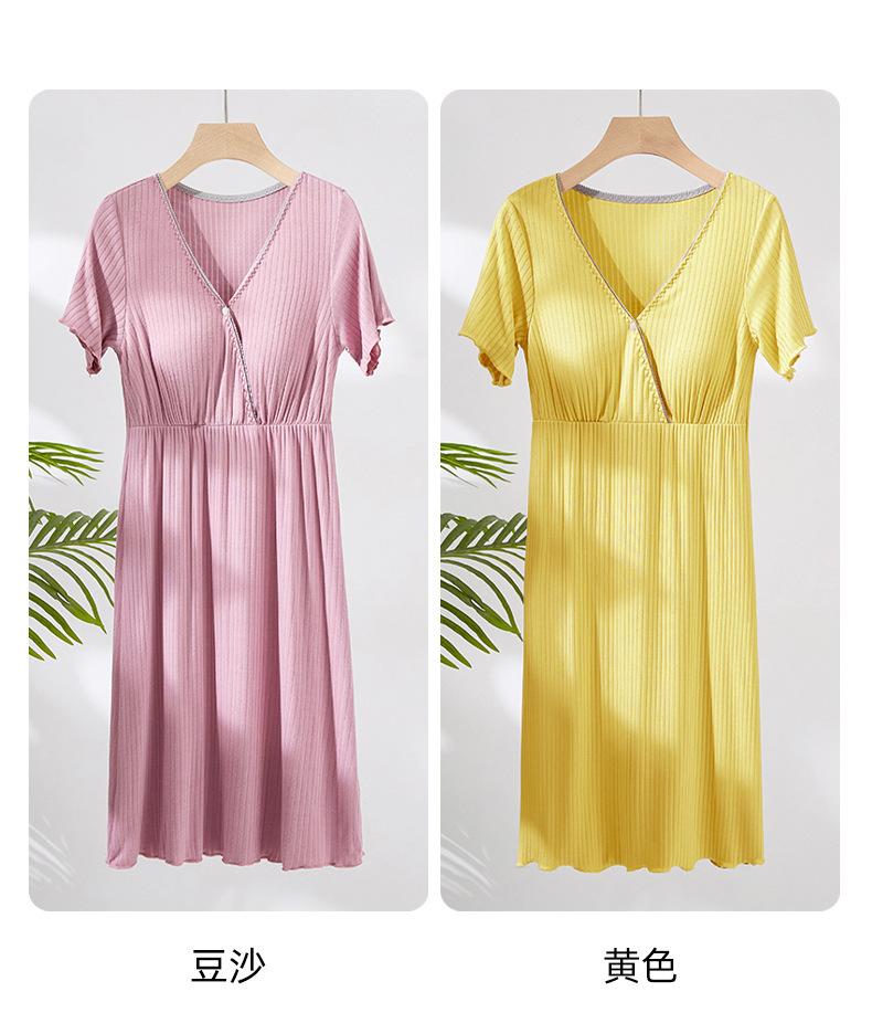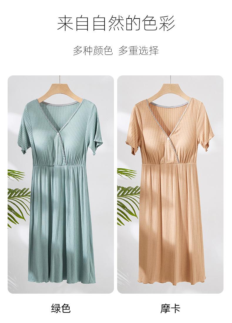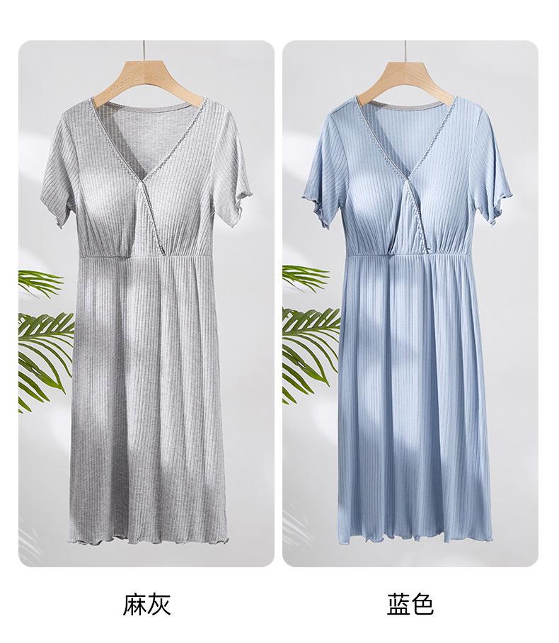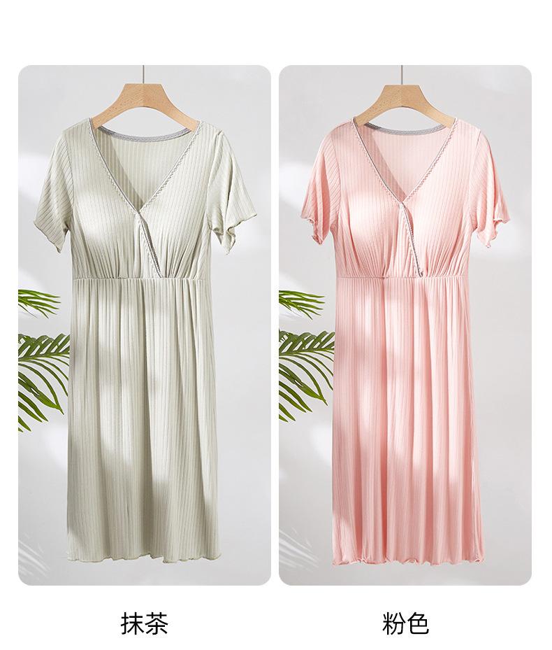 Vestido de mujer embarazada, pijama para el hogar, moda posparto, camisón de lactancia, verano, fino, manga corta, talla grande, largo medio