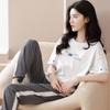Pijamas de algodón puro de primavera y verano para mujer, pantalones de manga corta, moda informal, fresco, cómodo, talla grande, ropa de abrigo, traje para estar en casa