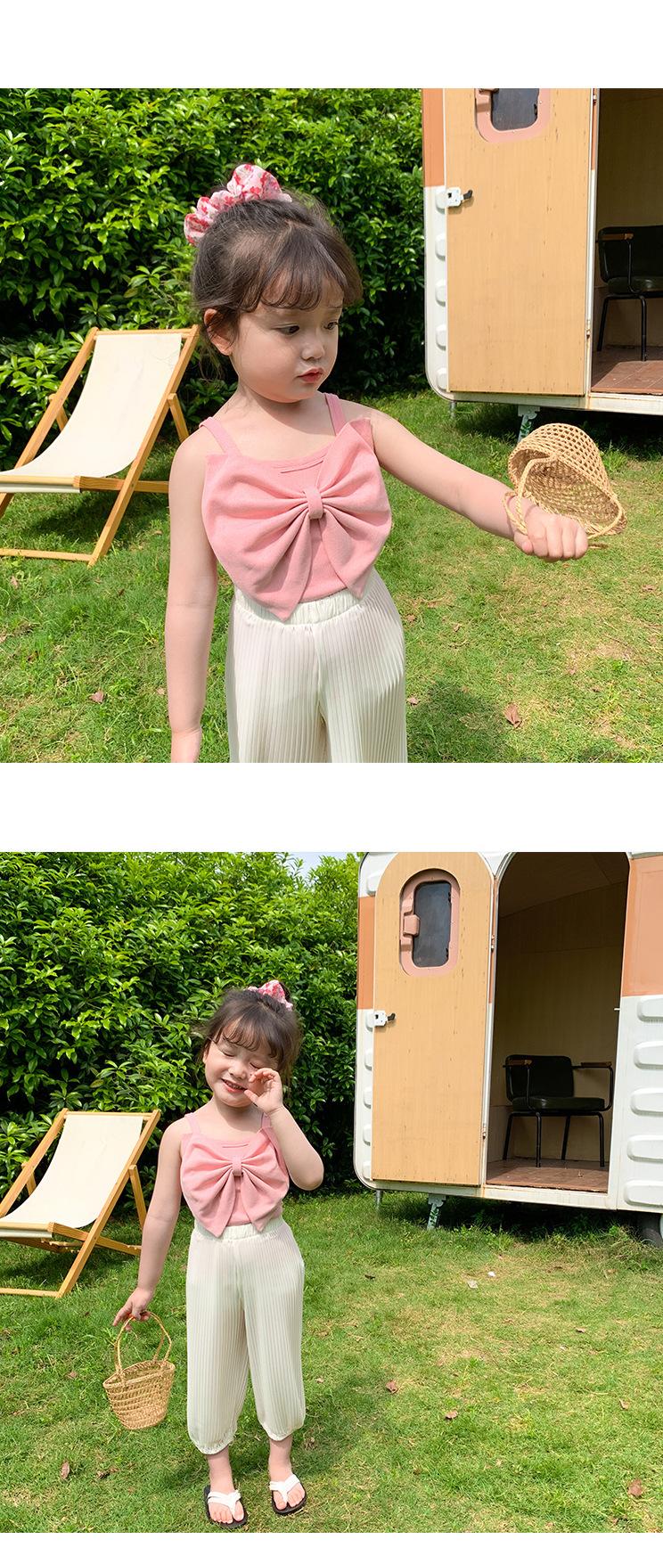 Camisola de Niña con Lazo Grande Top Chaleco Versátil 25 Verano Nuevo Comercio Exterior Ropa Infantil Dropshipping para Edades 3-8