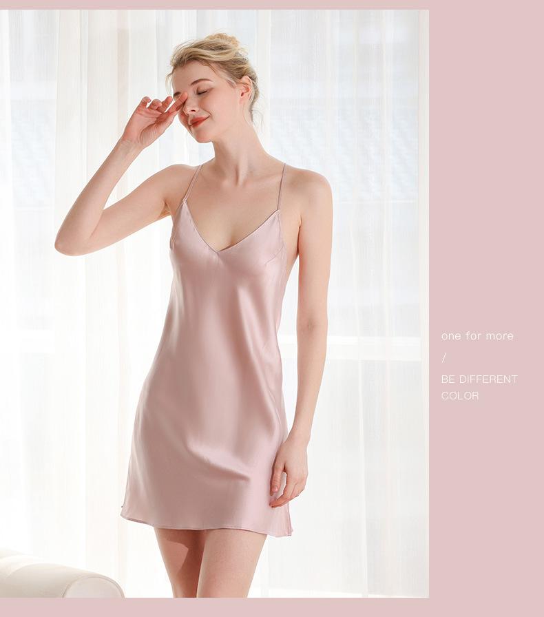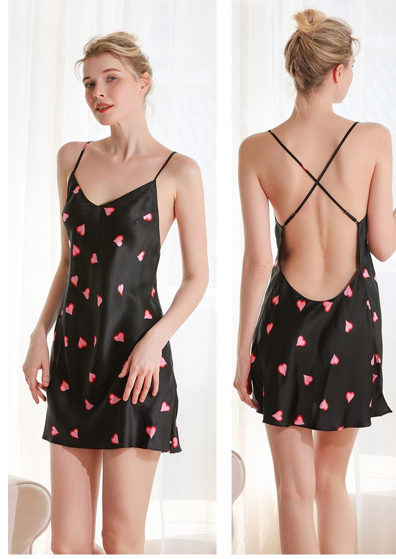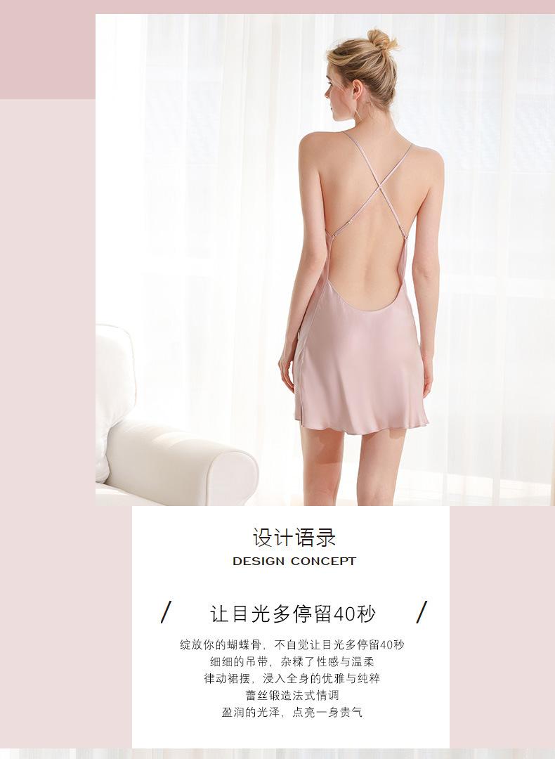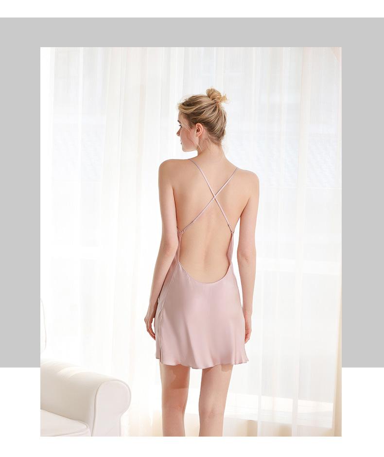 Pijama de seda para mujer, verano, amor, gusano de seda, sexy, sin espalda, falda corta, camisón con tirantes, puro deseo Dipwei