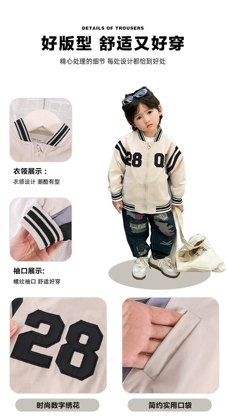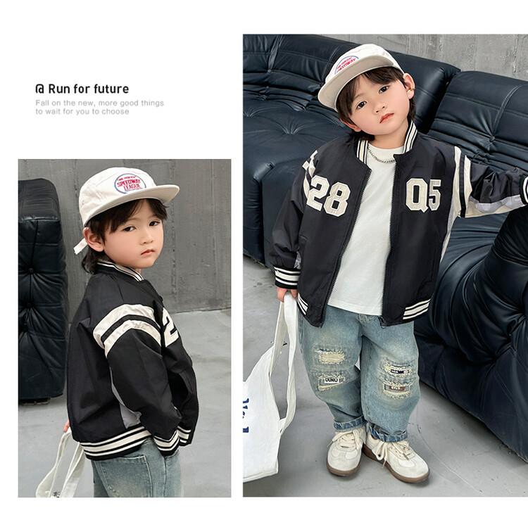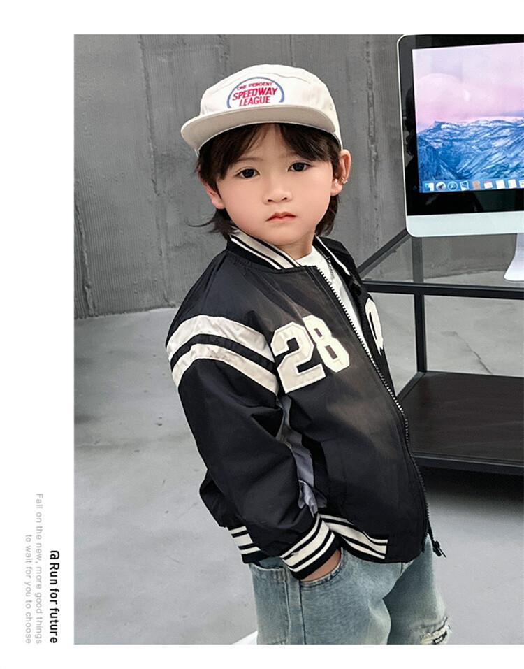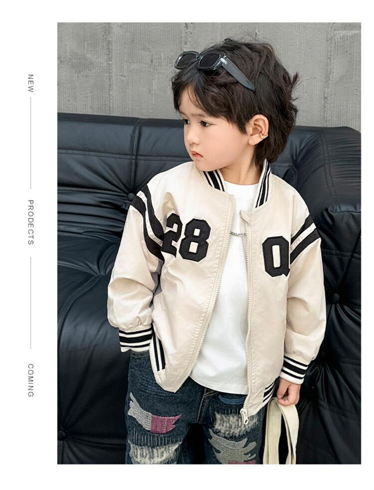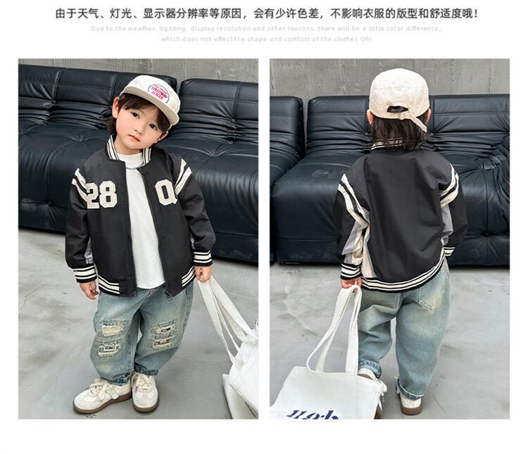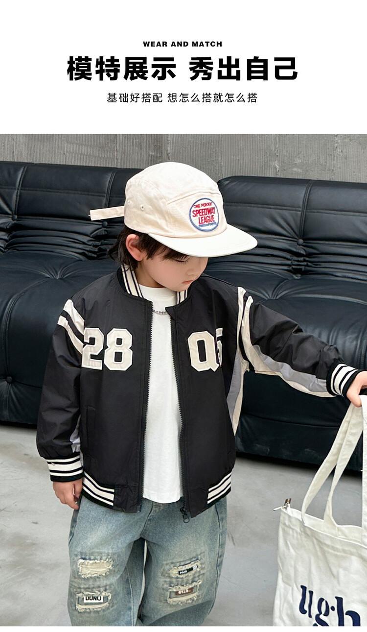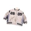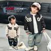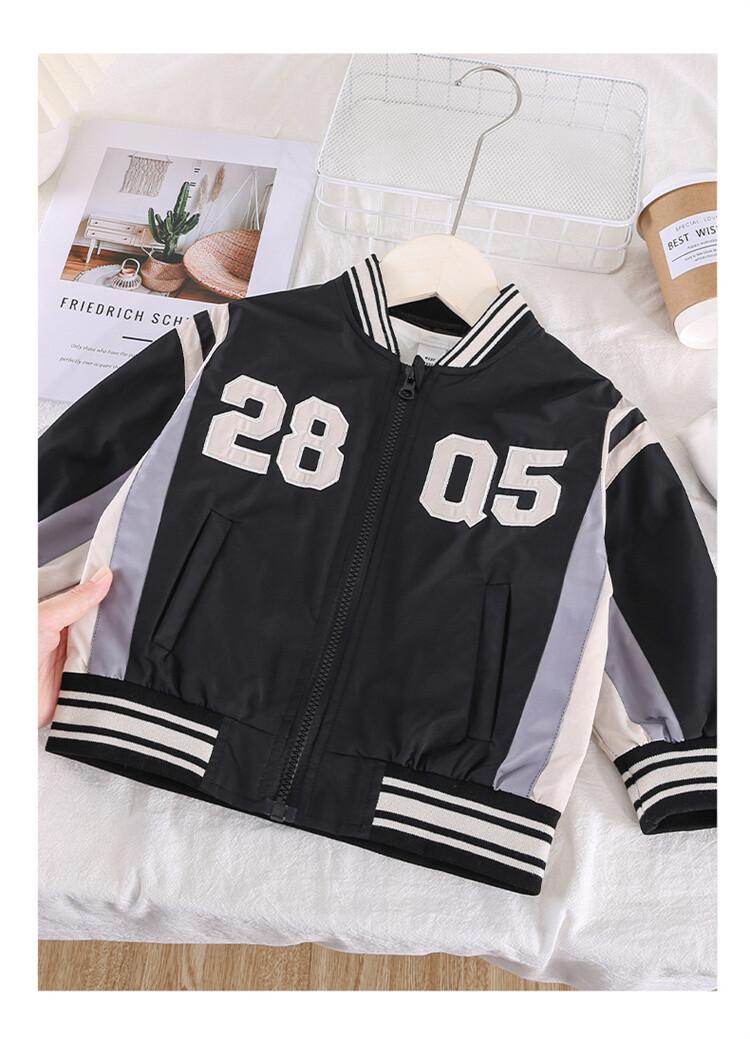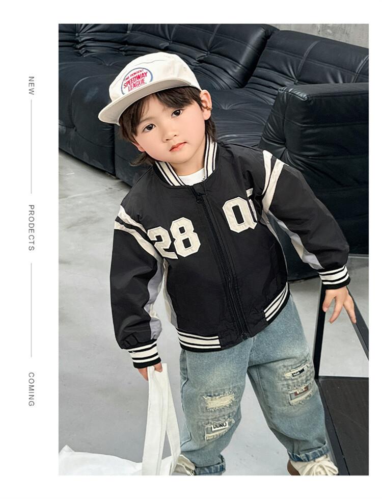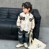 Chaqueta de béisbol con bloques de color digitales para niño, primavera y otoño 2024, nueva chaqueta de estilo occidental para niños, ropa para niños