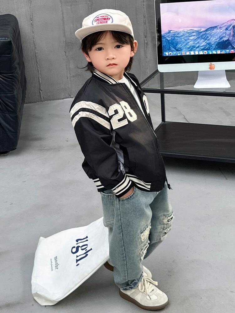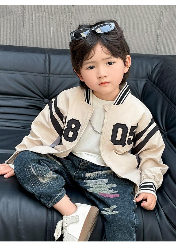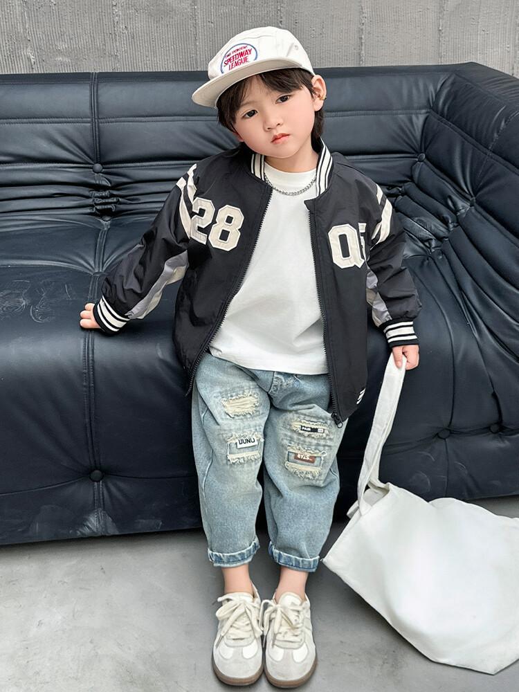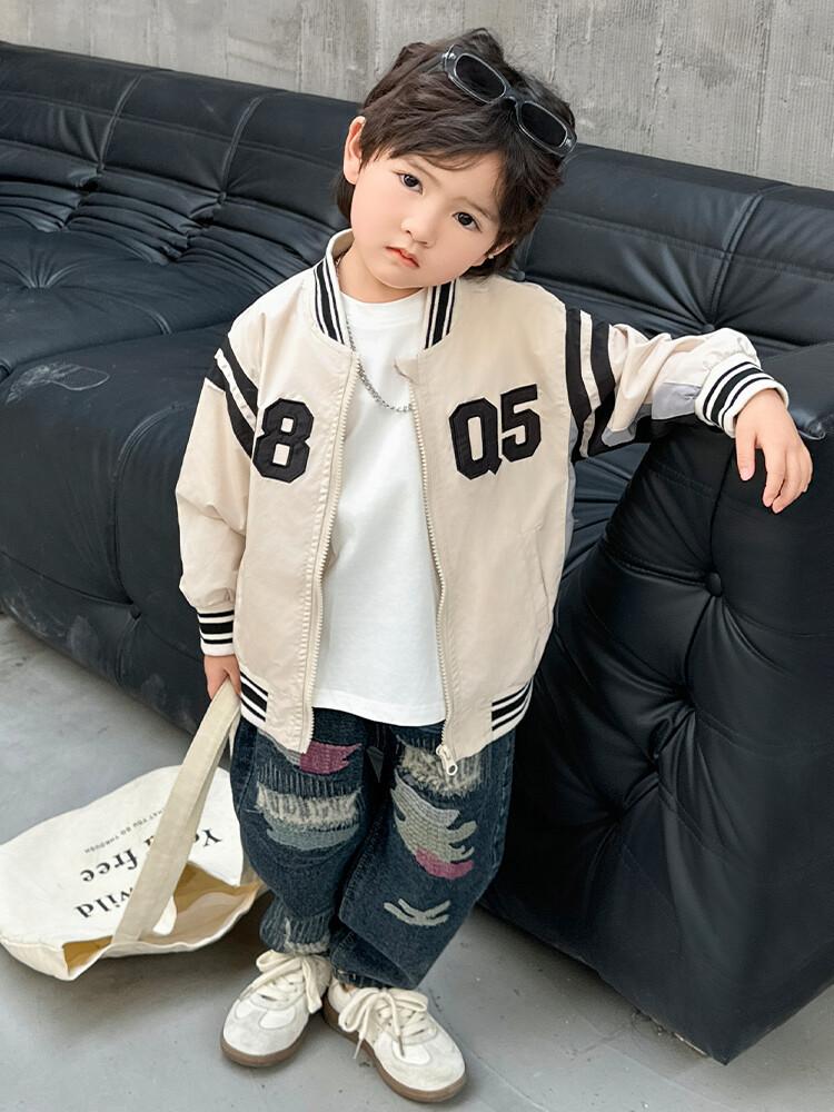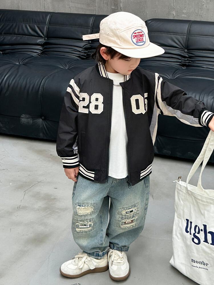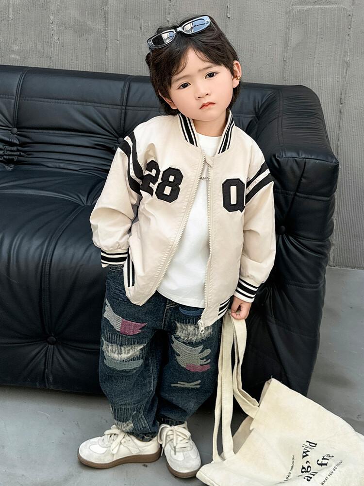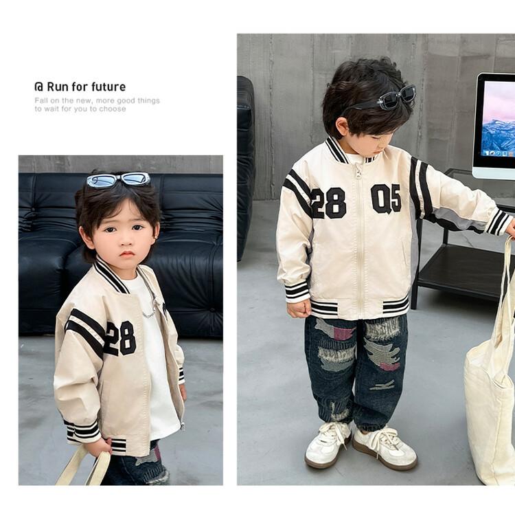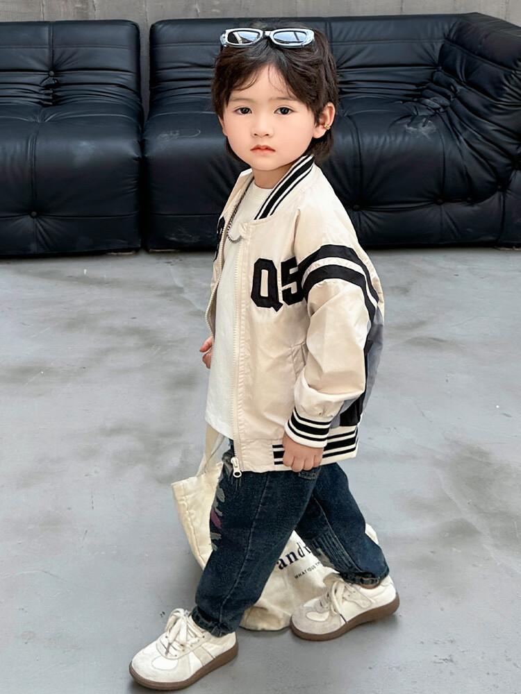 Chaqueta de béisbol con bloques de color digitales para niño, primavera y otoño 2024, nueva chaqueta de estilo occidental para niños, ropa para niños